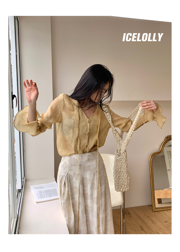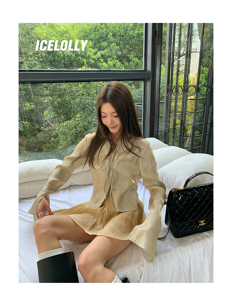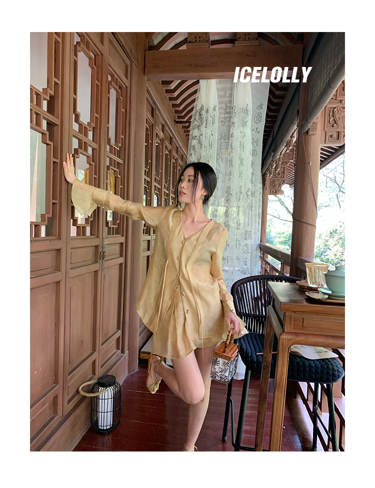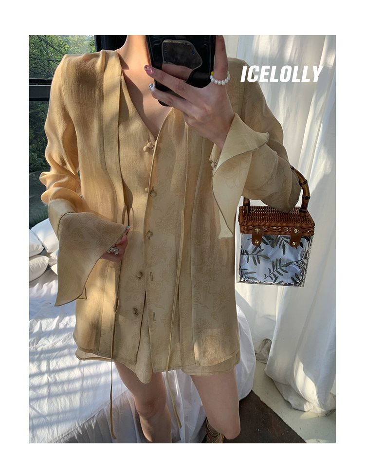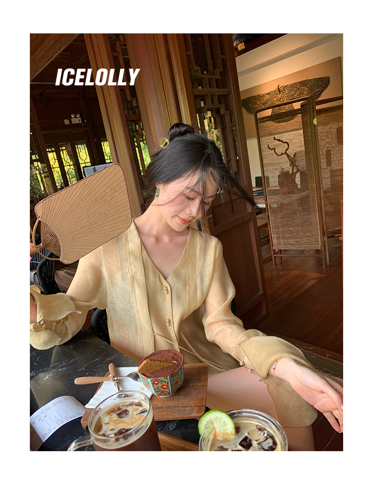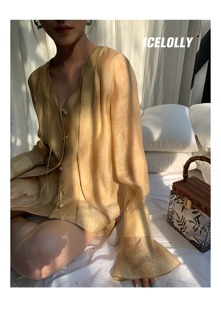 ICELOLLY新中式套裝上衣襯衫女國風女裝新款秋今年流行的漂亮小衫
