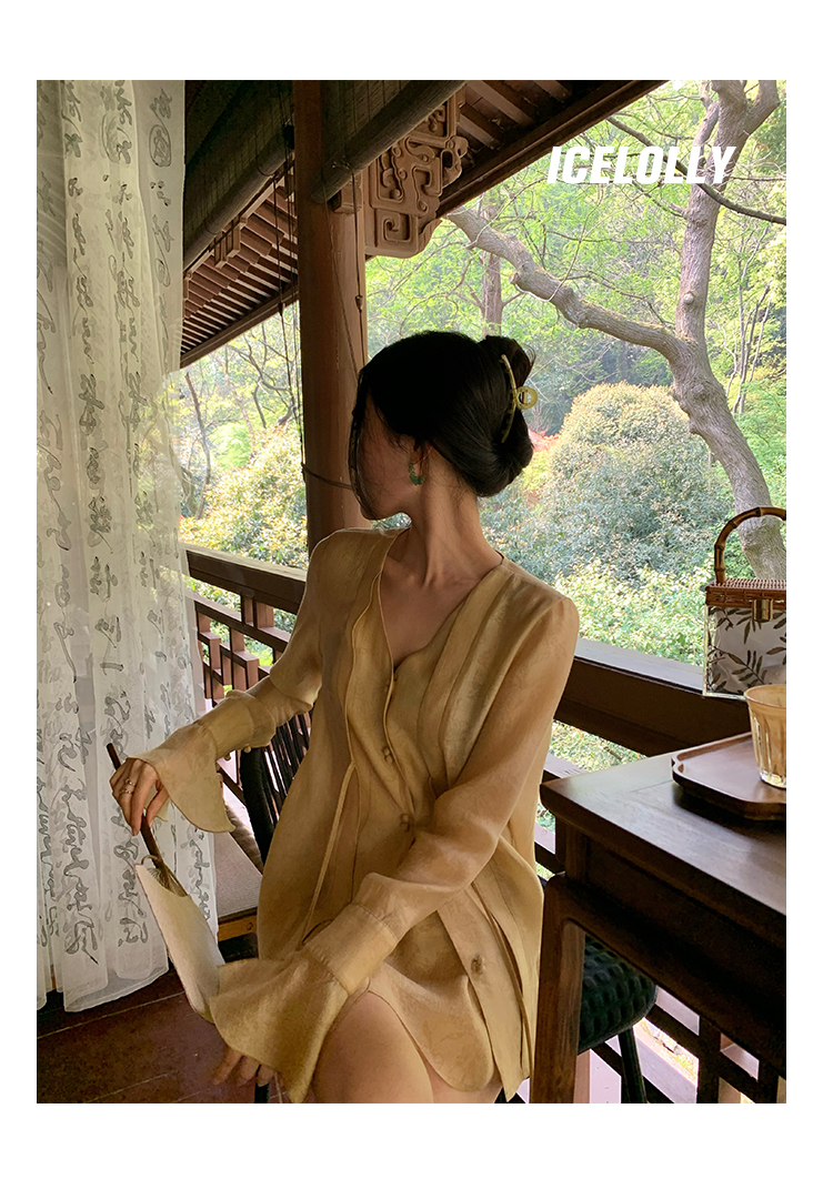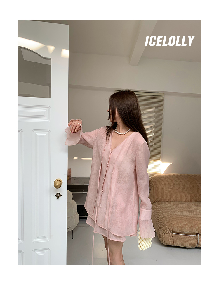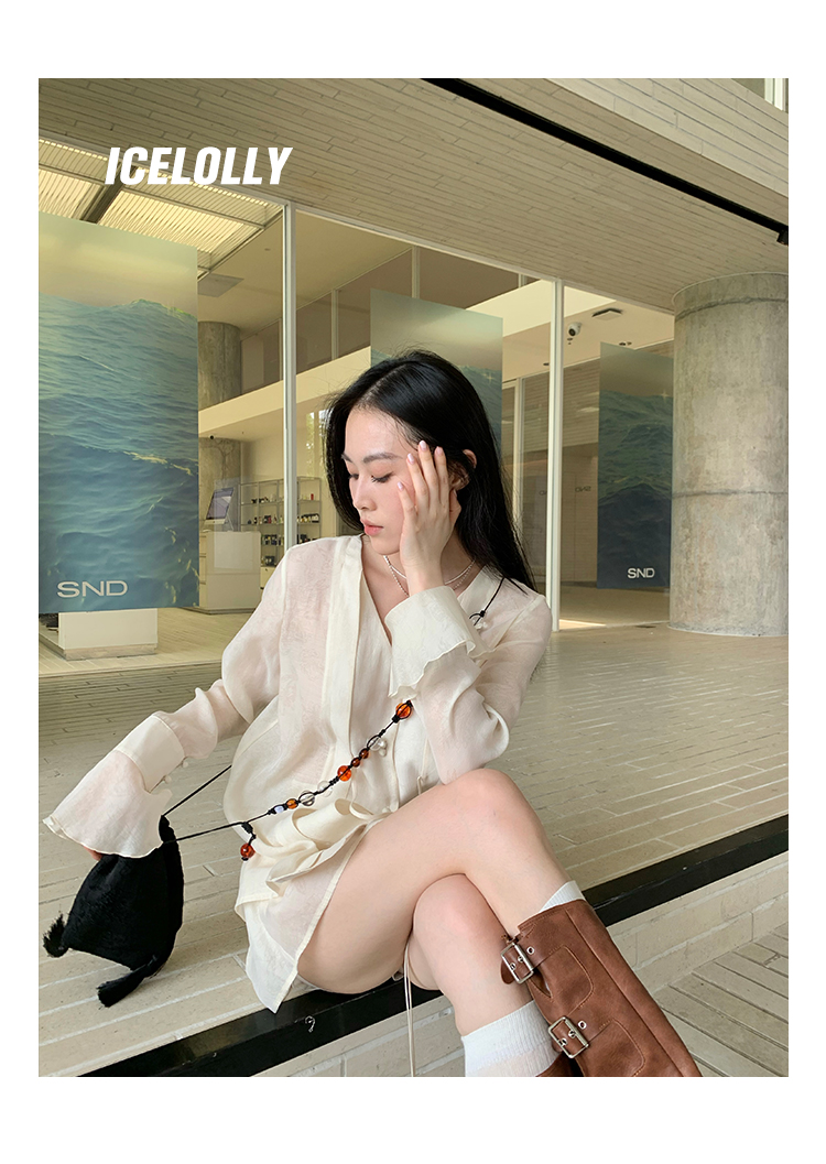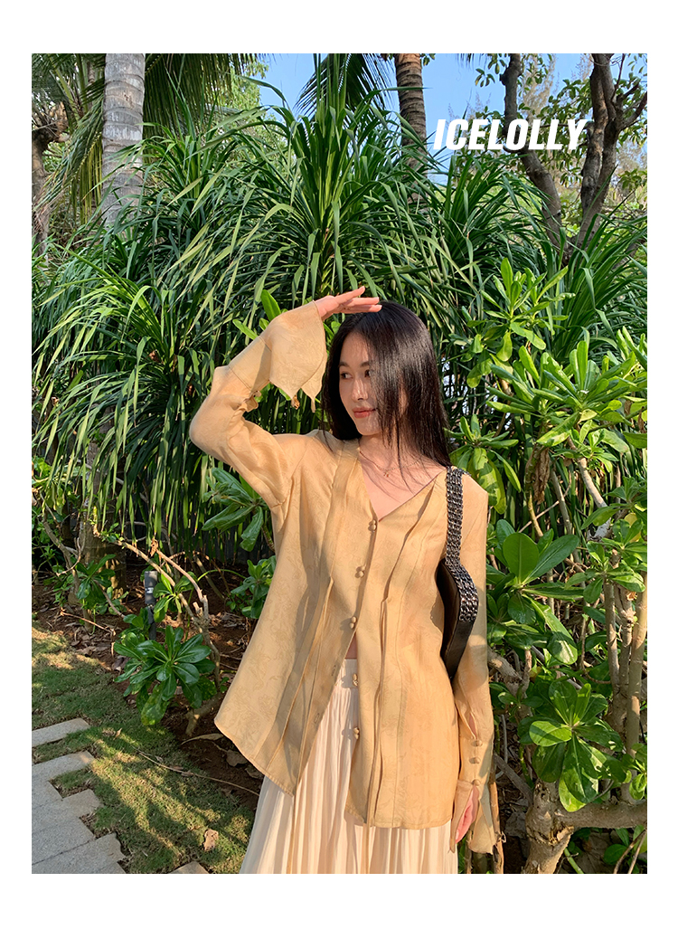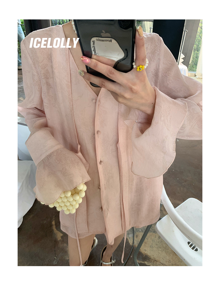 ICELOLLY新中式套裝上衣襯衫女國風女裝新款秋今年流行的漂亮小衫