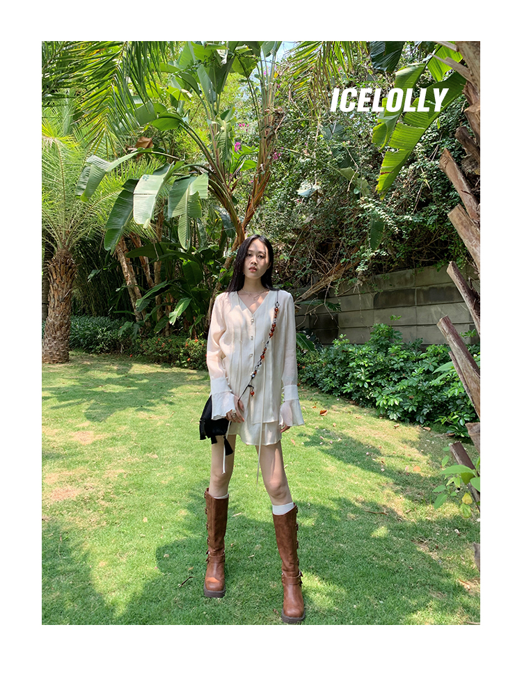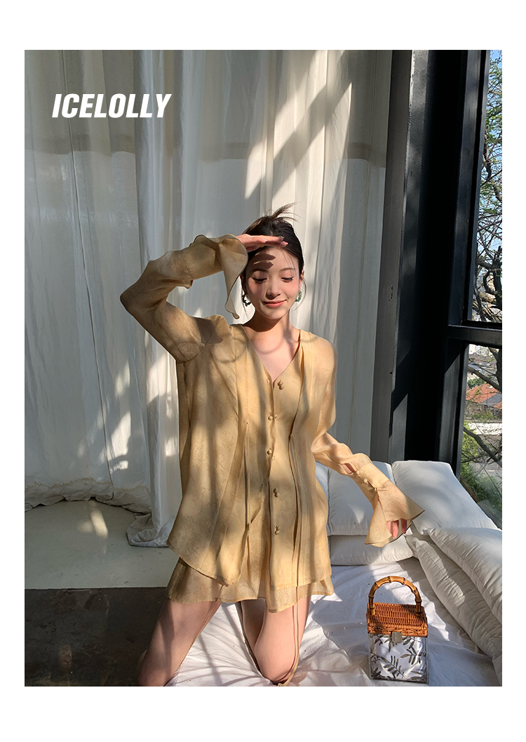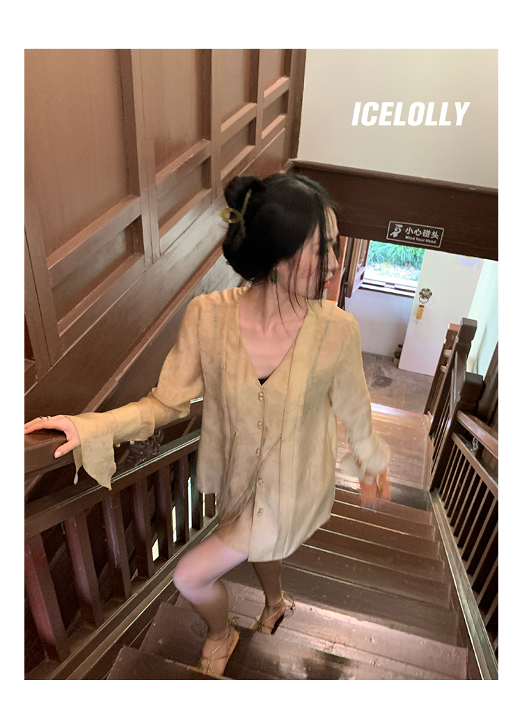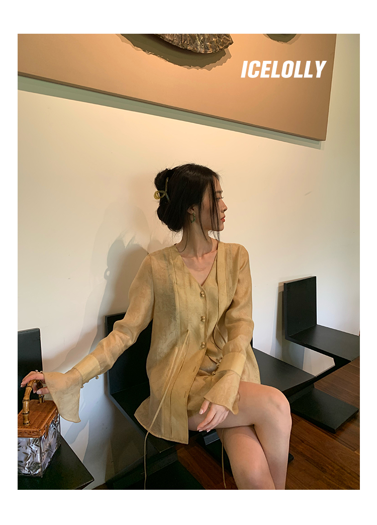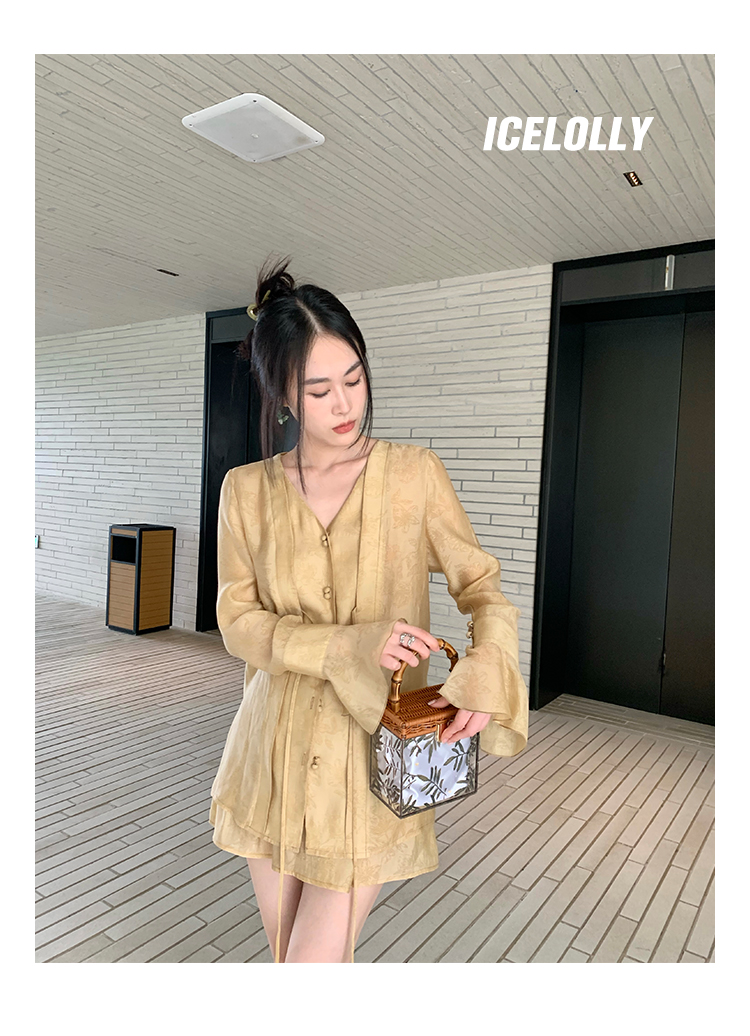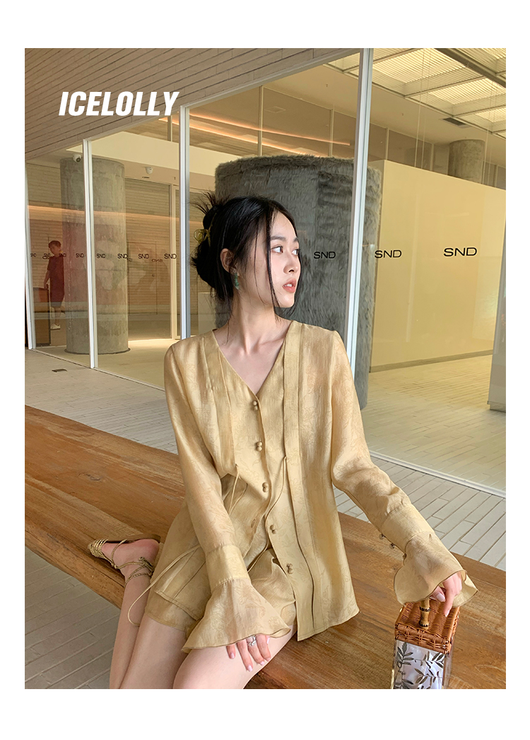 ICELOLLY新中式套裝上衣襯衫女國風女裝新款秋今年流行的漂亮小衫