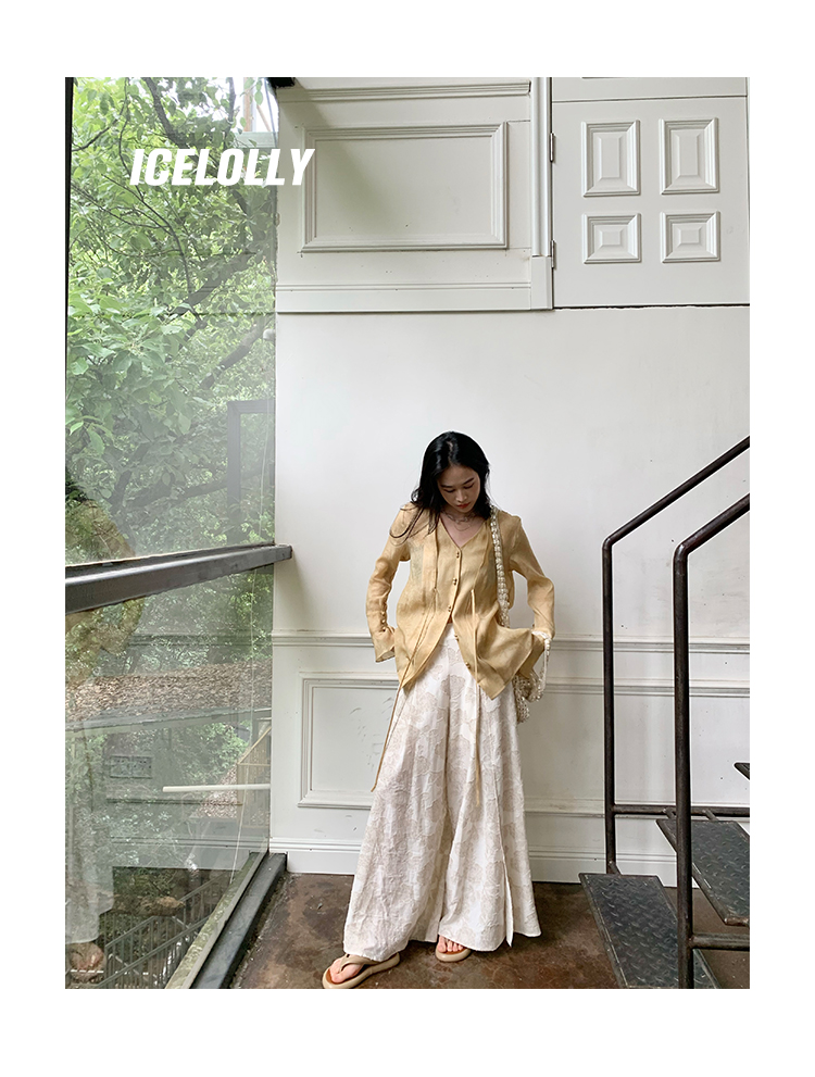 顏色分類 凝脂白 襯衫.【含70%天絲】,桃夭粉 襯衫.【含70%天絲】,日落黃 襯衫.【含70%天絲】,凝脂白 裙褲.【含70%天絲】,桃夭粉 裙褲.【含70%天絲】,日落黃 裙褲.【含70%天絲】