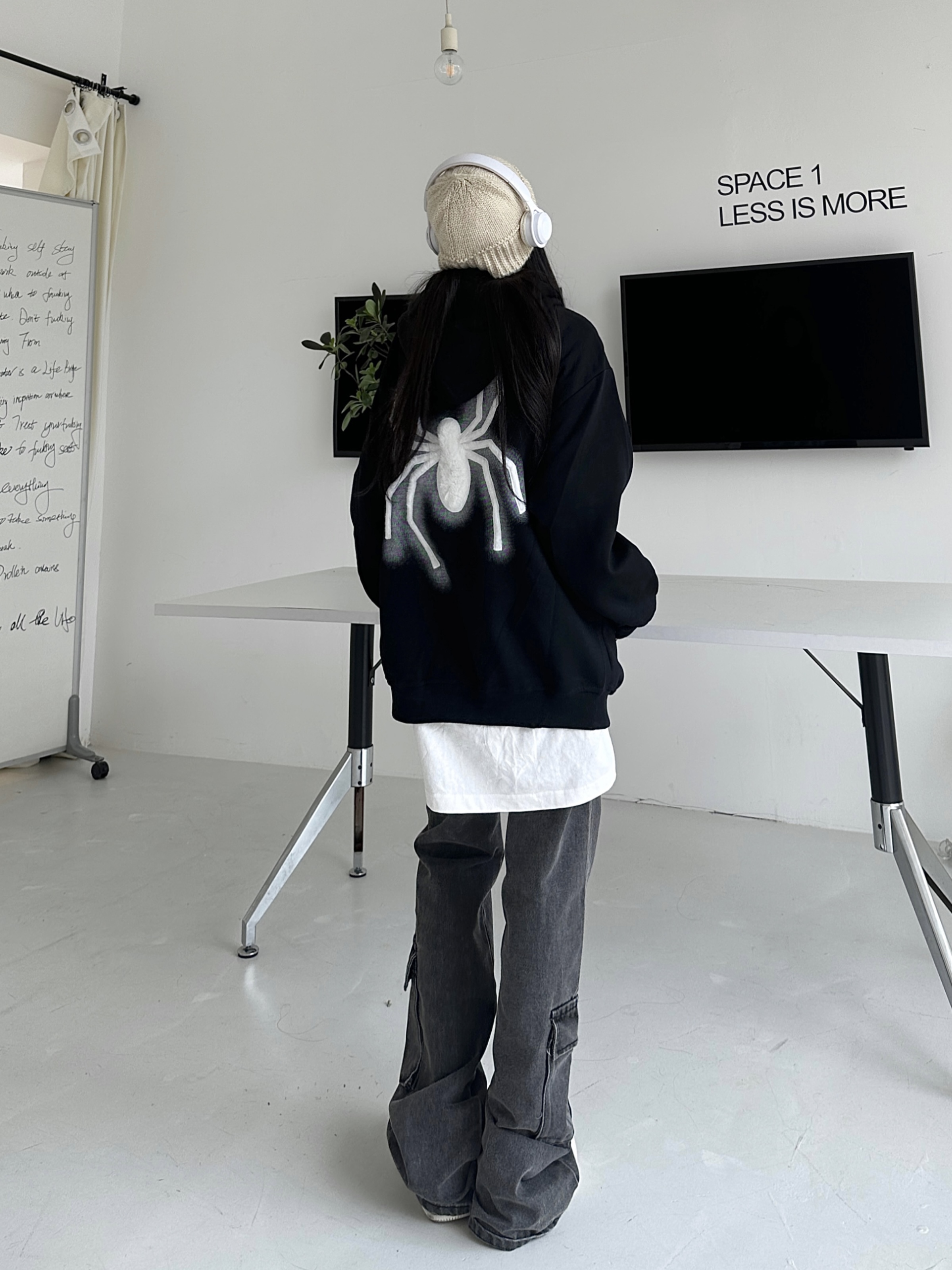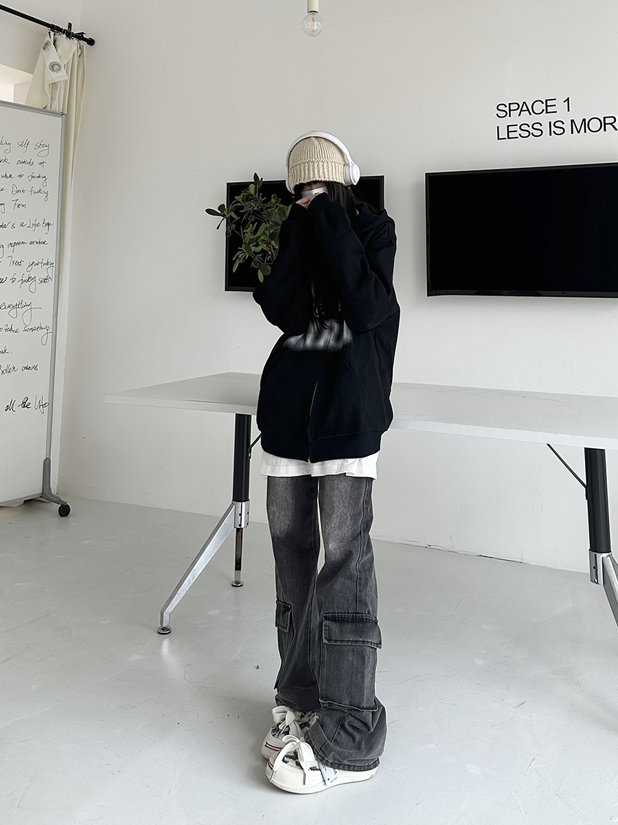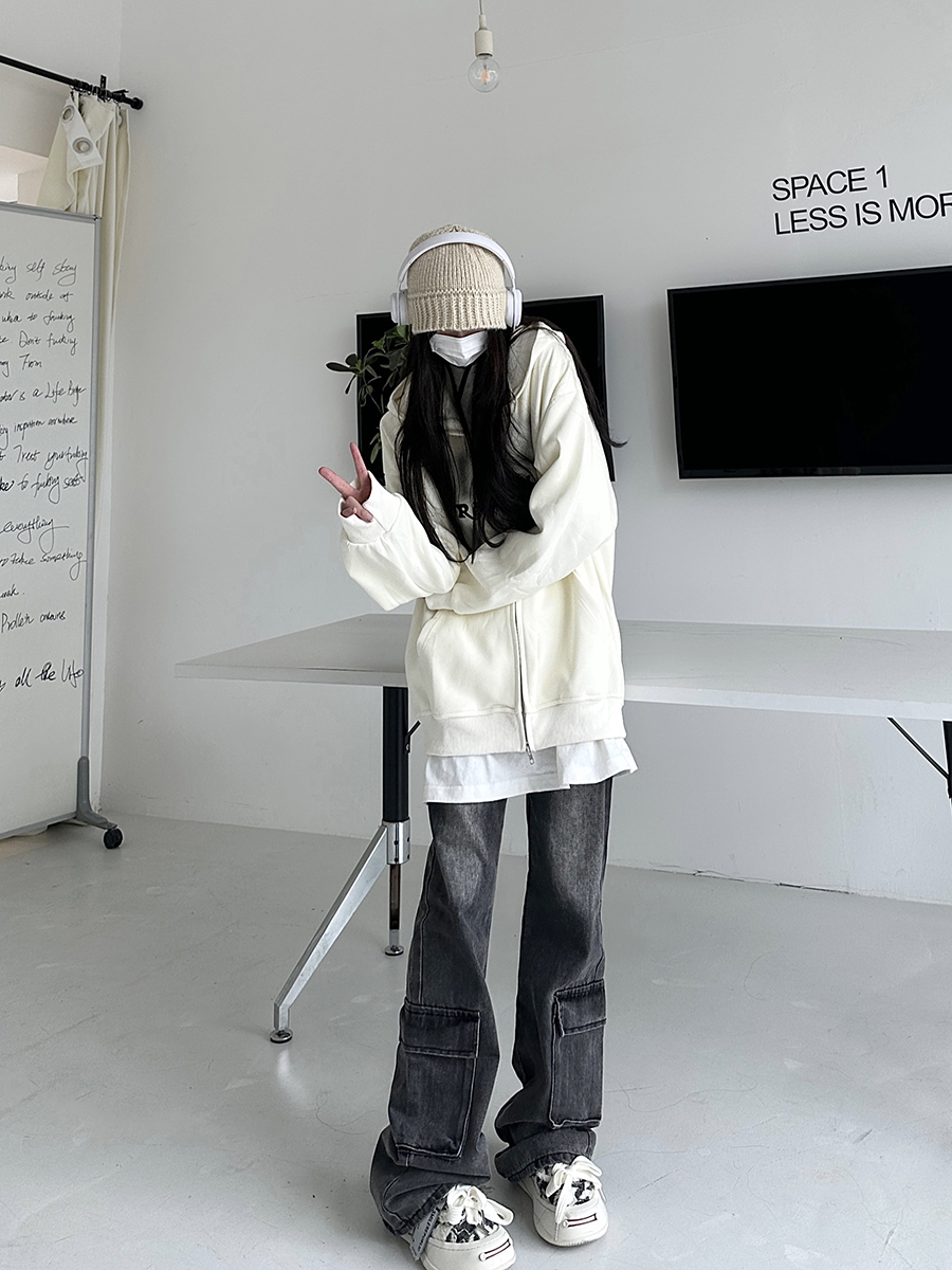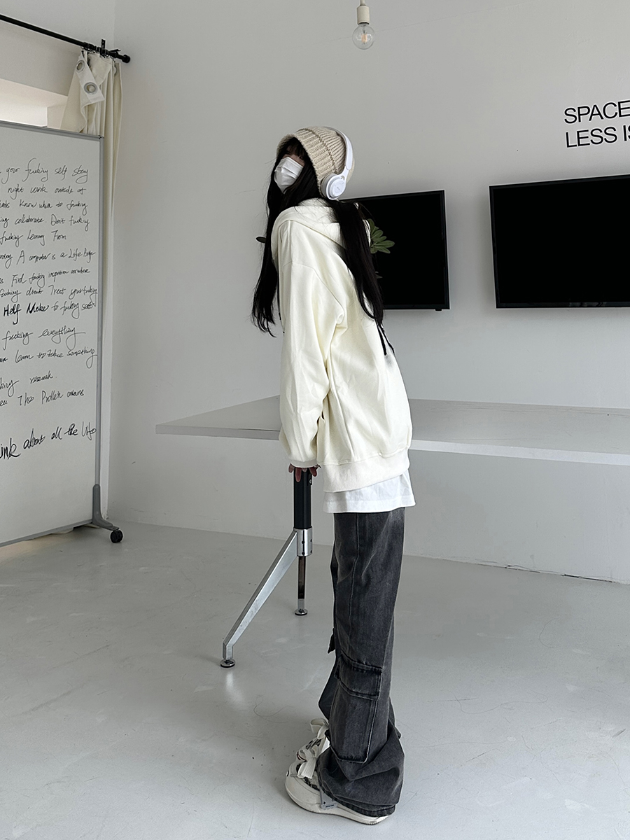 咖哩人秋新款自制蜘蛛印花開衫連帽運動衫外套美式男女情侶寬帽衫