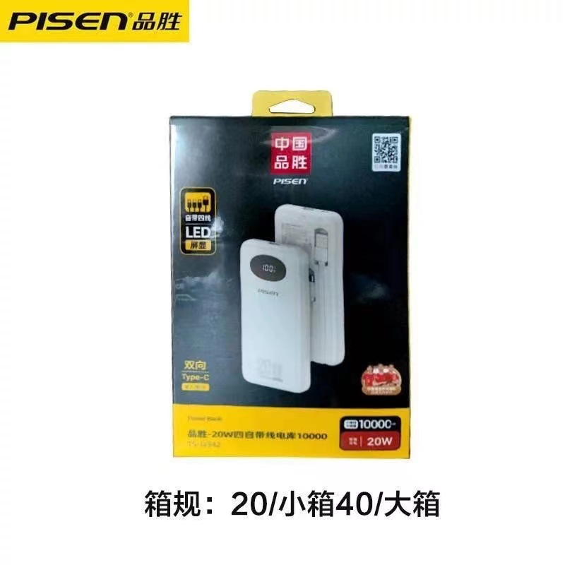 型号 Micro USB数据线0.9m 白色,苹果数据充电线 iphone4 4S数据线,Type-C 快充数据线0.9m 白色,苹果快充数据线0.9m 白色,Micro USB数据充电线二代0.8m 白色,Micro USB数据充电线二代1m 白色,Micro USB 数据充电线二代挂卡装1.5M 白色,苹果快充数据充电线 1m 挂卡装白色,苹果数据充电线Apple Lightning1.5m,苹果抗折断数据充电线1m 白色,苹果多彩编织数据充电线1.2m 白色,苹果数据充电线2m 白色,Type-C转USB2.0数据线1m白色,6A Type-C HW专用超级快充数据线苹果灰,Type-C 6A多协议快充数据线1m白色,Type-C 6A多协议快充数据线2m白色,双Lightning三合一充电线1.2m 白色,二合一充电线1m 白色,三合一铝合金编织数据线黑色1.2m,三合一充电线 1m白色 挂卡装,三合一充电线升级版1.2m白色 挂卡装,星速三合一铝合金编织数据线黑色0.6m,星速三合一铝合金编织数据线黑色1.2m,星速三合一铝合金编织数据线黑色1.5m,3A大电流PD快充Type-C toLightning数据线0.9m,3A大电流PD快充Type-C to Lightning(1m)(苹果白),Type-C to Lightning3A数据线(1.8m)(苹果白),Type-C to Lightning3A数据线(2.2m)(苹果白),C TO C 60W 镀金数据充电线1.2m(苹果白),C TO C 60W 镀金数据充电线2m(苹果白),C转C抗折断快充编织数据线(60W)1m(浅灰色),Apple Lightning(L头)数据充电线PET盒装 L头双弯头 1米白色,USB Type-C抗折断数据充电线 1米 白色,纯臻系列Type-C HW100W超级快充数据线(LH-TC11-1M/苹果灰),纯臻系列Type-C HW100W超级快充数据线(LH-TC11-1.5M/苹果灰),纯臻系列Type-C HW100W超级快充数据线(LH-TC11-2M/苹果灰),纯臻系列CTOC PD60W编织数据快充线(LH-CC-PD01-1m_苹果灰,3A大电流PD快充Type-C to Lightning(0.25m)(苹果白),30W单C口PD快充单头(FYD-DQ-01/苹果白),PD 20W快充套装(苹果白),PD 20W快充单头(苹果白),PD20W折叠快充套装(苹果白),PD20W折叠快充单头(苹果白),小白PD20W充电器(单头)(CD07/苹果白),小白PD20W充电器(套装)(CD07/苹果白),(CYE-C04)PD20W A+C充电器(单头),小白PD20W+USB充电器(套装)(CD06/苹果白),小白双PD20W C+C双口充电器CD06(XY-C28/苹果白),USB 1A 充电器(苹果白),USB 2A 充电器(苹果白),USB充电器(2A) 苹果手机平板标准充电插头,USB手机充电器套装2.1A 苹果版(TS-C134/苹果白),USB手机充电器套装2.1A 安卓版(TS-C134/苹果白),USB手机充电器套装2.1A type-c版(TS-C134/苹果白),22.5W快充充电器单头(苹果白),22.5W快充充电器套装(苹果白),40W超级快充A口(华为原装模组)(TS-C158/苹果白),三合一铝合金编织数据充电线(1.5m)(红色),三合一100W编织数据充电线(LH-AP05-1200 黑色),12W电库10000(TS-D324/苹果白),移动电源 PISEN QUICK小白快充21000(屏显版)(苹果白),四自带线20W电库10000毫安 (TS-D342/苹果白),四自带线22.5W快充电宝A1 10000(TP-D045/苹果白),数显移动电源D105-PD-2 20000(22.5W)(苹果白),数显移动电源D105-PD-2 20000(22.5W)(魔幻黑),双自带线22.5W快充电霸10000(苹果白),LED能量宝10000(LS-DY184/苹果白),电库10500(全屏版)(TS-D322/苹果白),电立方灯显移动电源D220-1 10000(10W)(LS-DY160/苹果白),18W 二合一快充电霸10000苹果白,MiniQP20 20W QC3.0+PD3.0 10000(苹果白),PISENQUICK自带线22.5W快充电宝10500,Type-C转2*USB3.0+USB-C(data)+USB-C(供电)HUB分线器,USB2.0转四孔USB2.0 HUB集线器0.25m(NJ-HB13-250/黑色),全兼容22.5W PD+USB 双口车充(苹果白),12W双USB口车载充电器(苹果白),BL-CCDILS 双USB迷你车载快速车充,迷你车载充电器A+C共享30W(LP-CC65),圆形简薄款桌面无线充15W(FYD-C30/苹果白),手表iWatch二合一Lightning充电线(1.5m)(苹果白),手表iWatch充电座1m苹果白,HW智能手表磁吸充电底座(LH-C01/苹果白),3.5mm接口有线耳机1.2m(ZY-MM01/苹果灰),Type-C接口有线耳机1.2m(TP-TC01/苹果灰),入耳式立体声Type-C有线耳机(PR-TP03/苹果白),半入耳式立体声有线耳机(AP01/苹果白),半入耳式立体声Type-C有线耳机(TP01/苹果白),入耳式立体声有线耳机(AP03/苹果白),挂脖式蓝牙运动耳机(LV13JL/魔幻黑),XS100 半入耳式—(3.5mm有线耳机),XS300 入耳式—(3.5mm有线耳机),品胜 XY-C24 30W双type-c编织套装(苹果15 平板可用),P1 Plus 蓝牙耳机(白色),D129-D-2 2万毫安LED数显充电宝