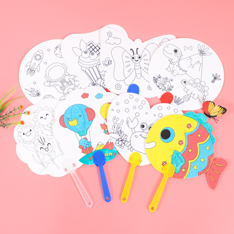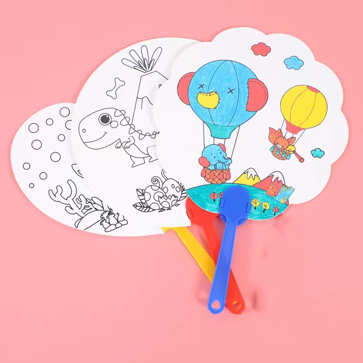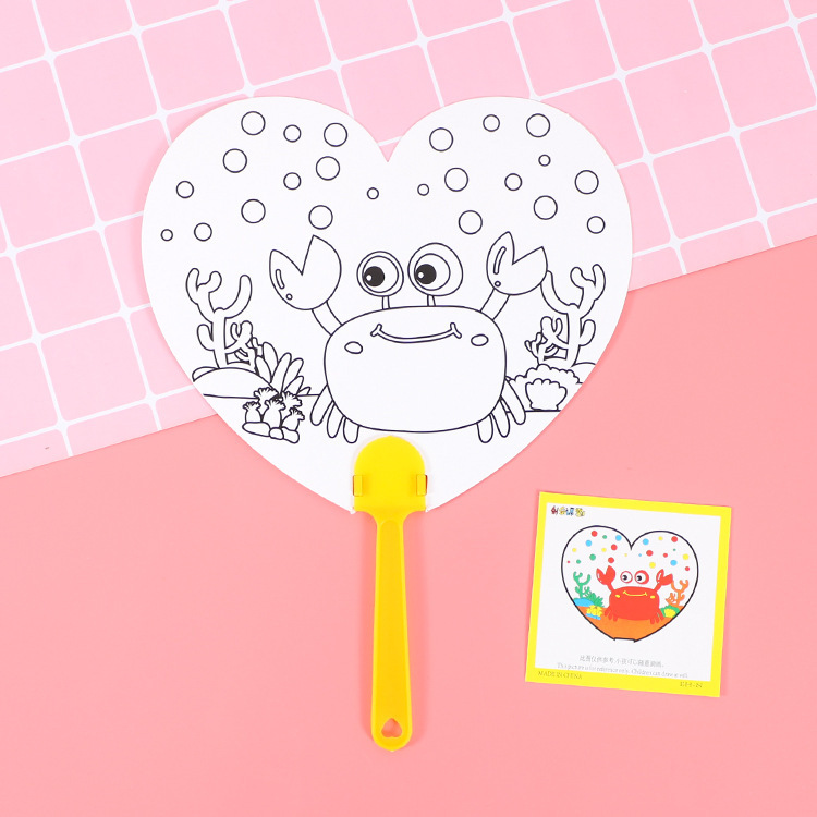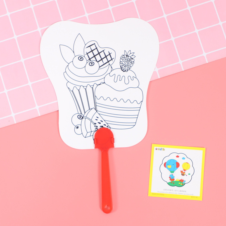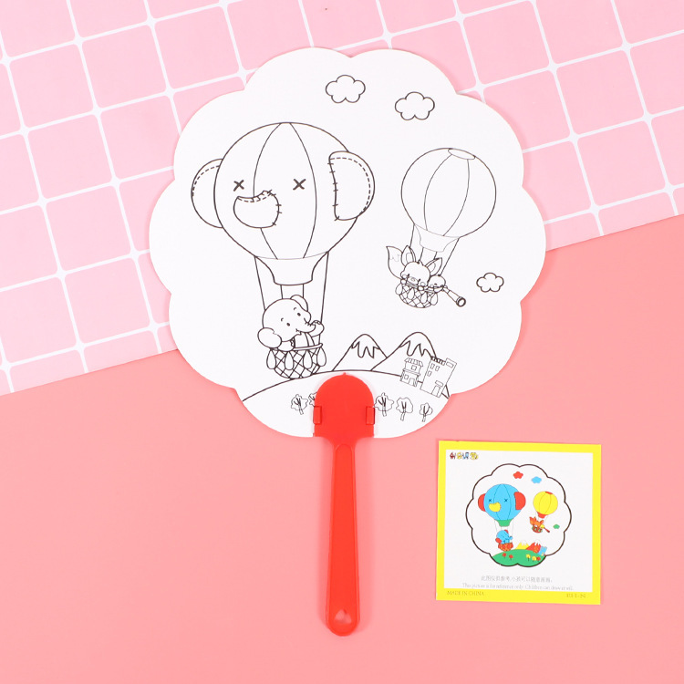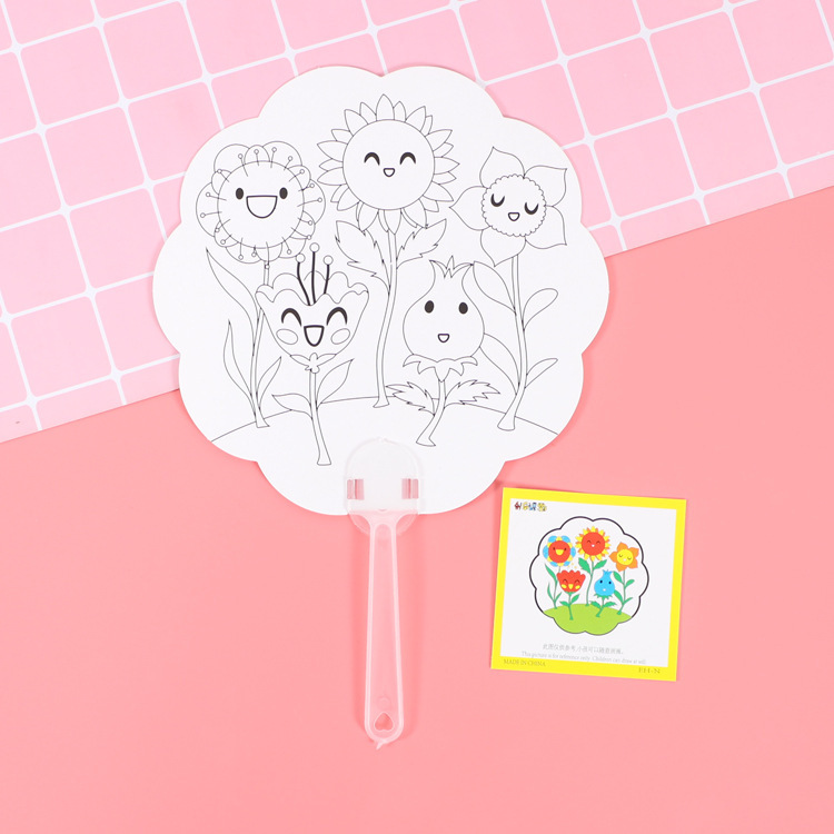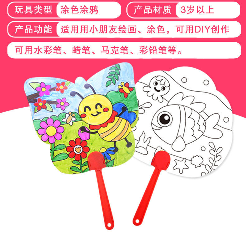 卡通可爱儿童绘画涂鸦纸扇幼儿园diy手工填色夏季地推小礼品批发T