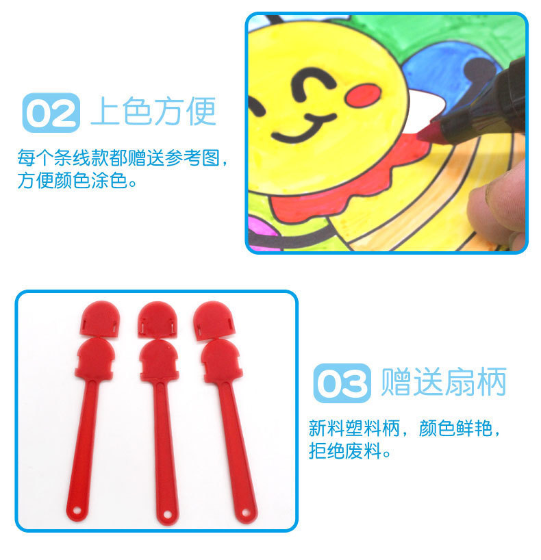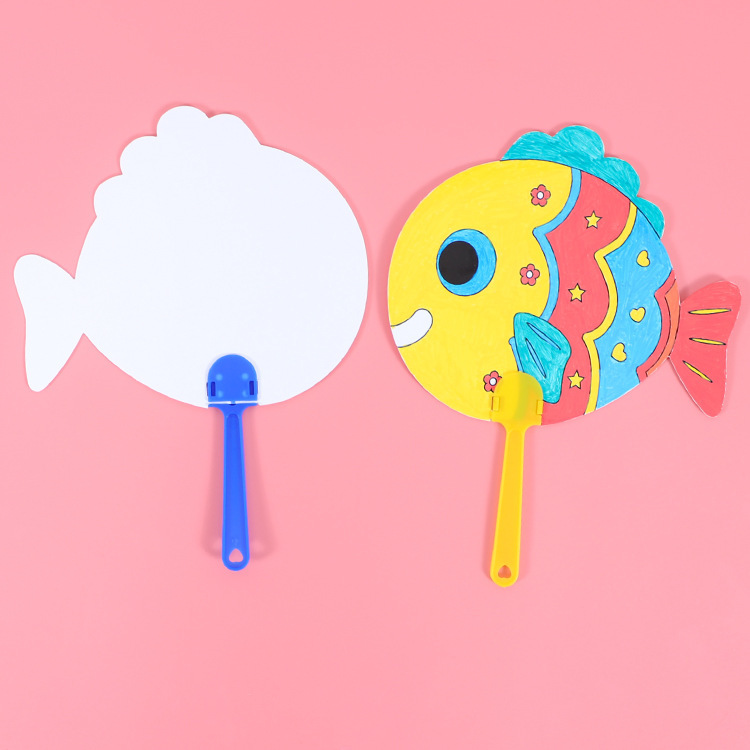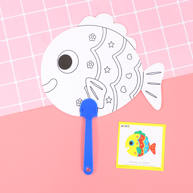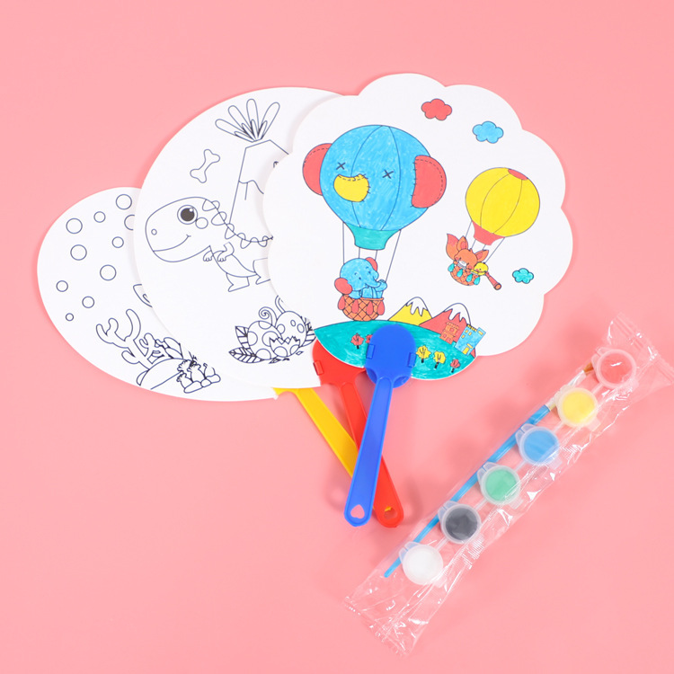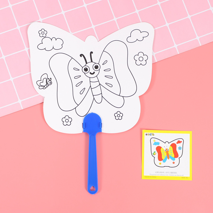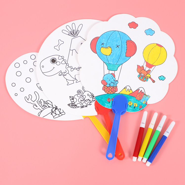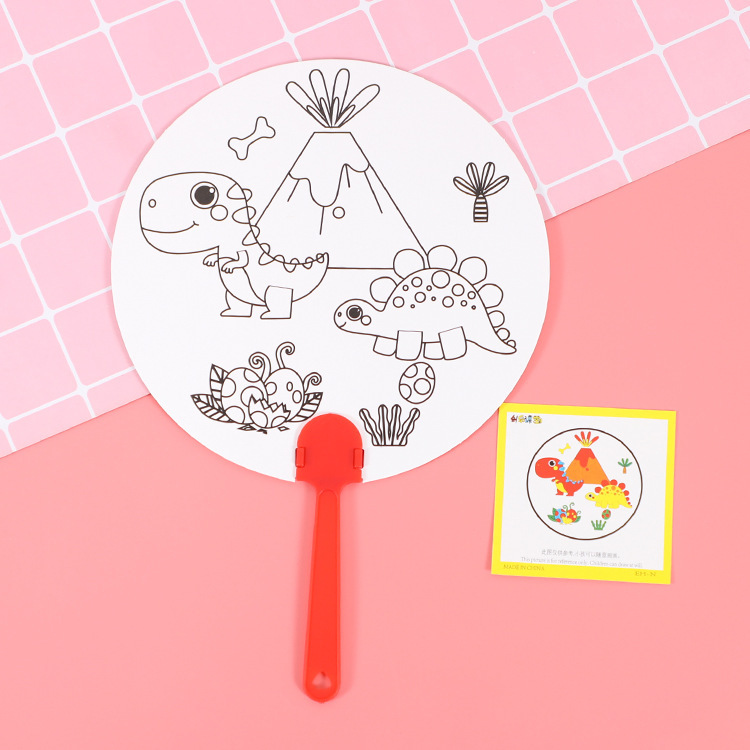 卡通可爱儿童绘画涂鸦纸扇幼儿园diy手工填色夏季地推小礼品批发T