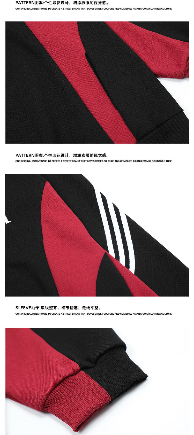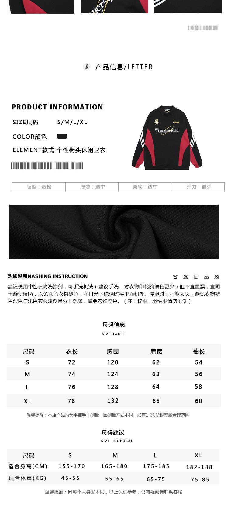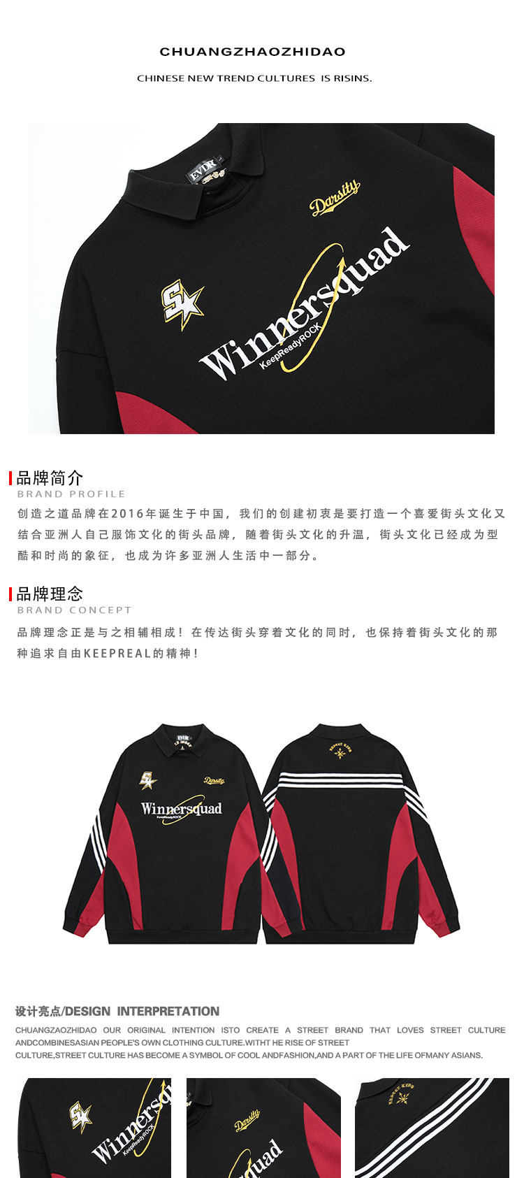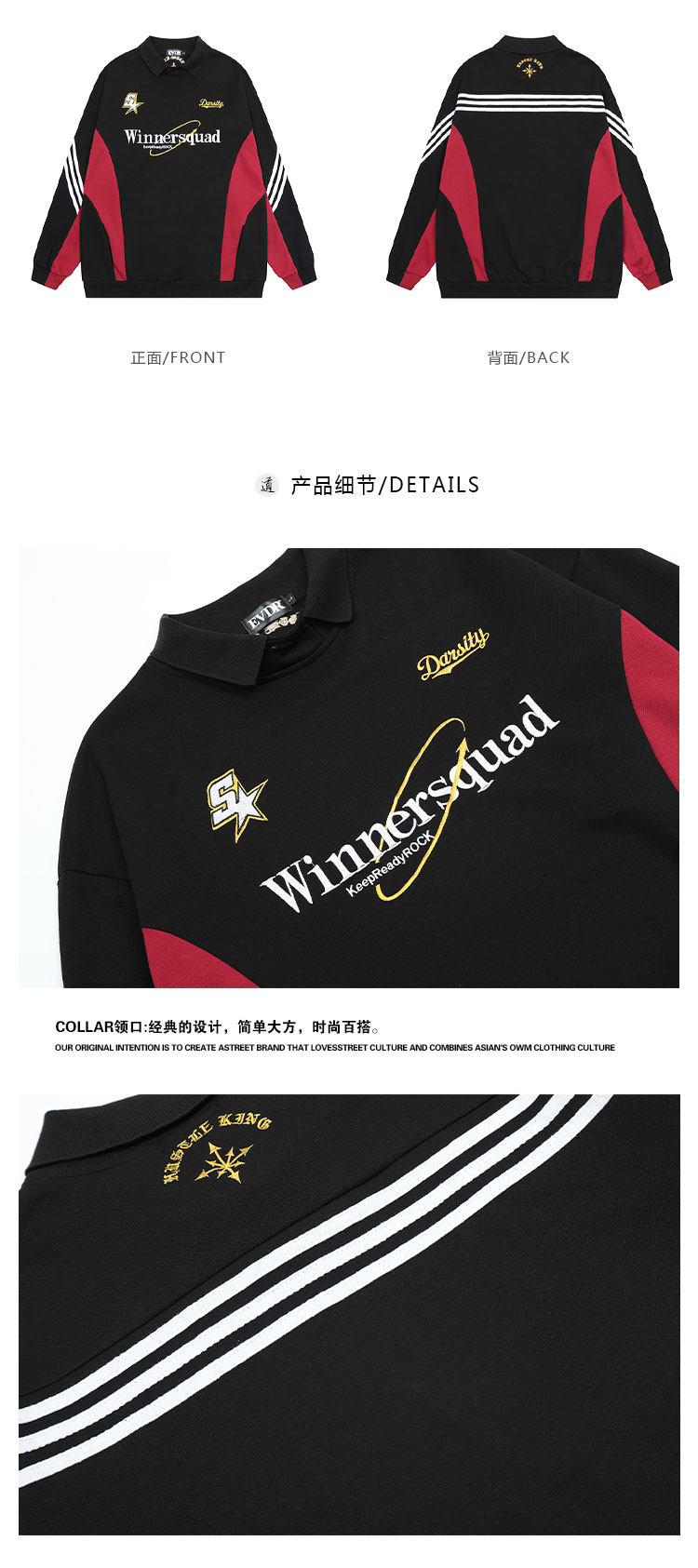 美式高街復古拼接polo衫衛衣男女寬鬆休閒百搭刺繡翻領長袖上衣潮