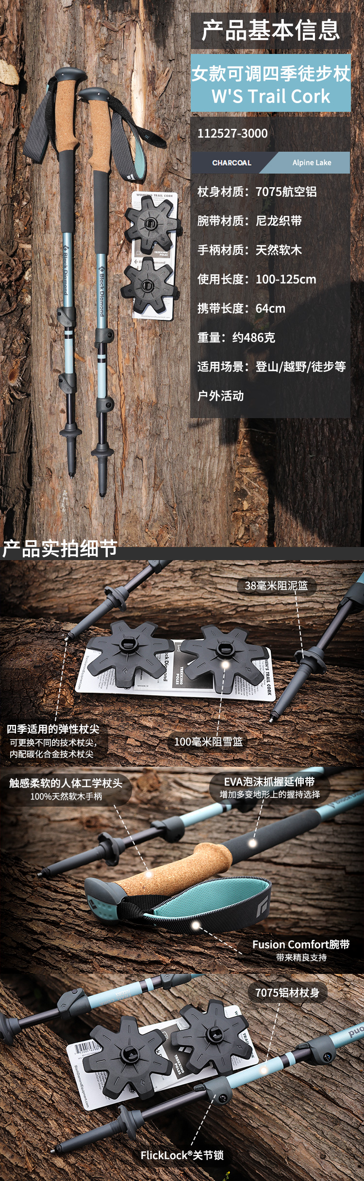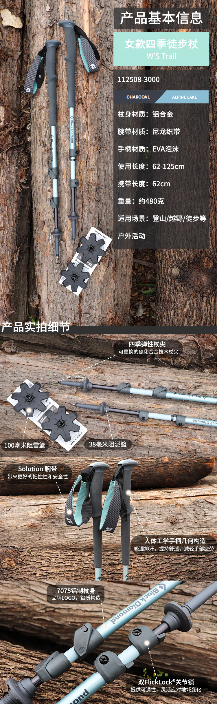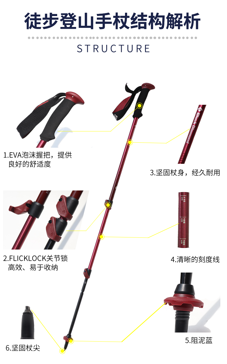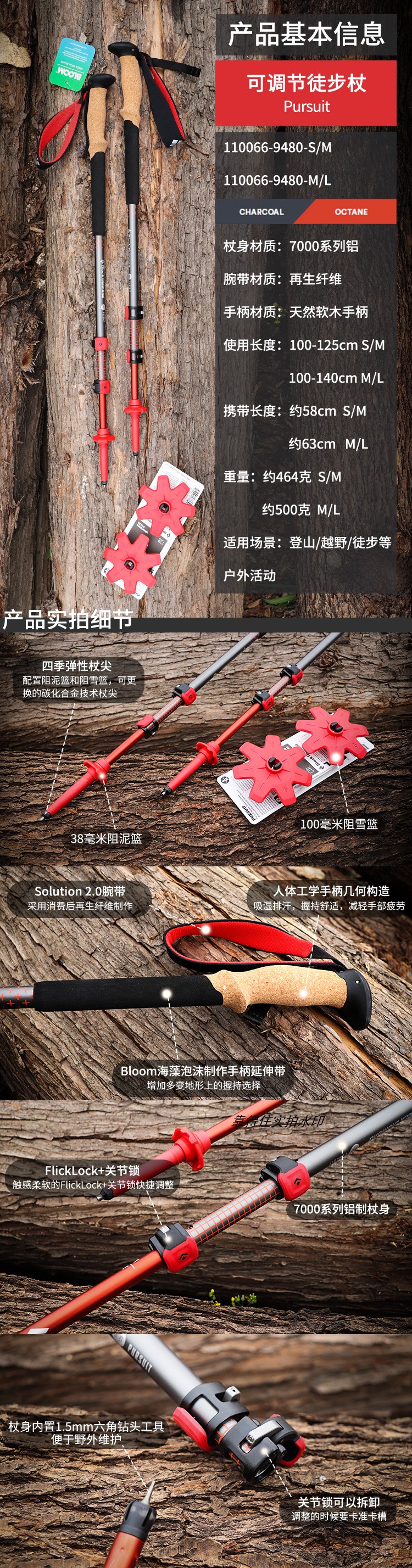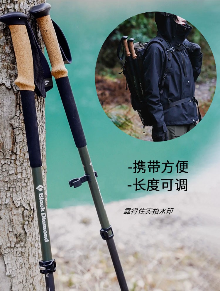 BD黑鑽登山杖碳素超輕伸縮外鎖摺疊戶外徒步老人柺棍鋁合金手杖