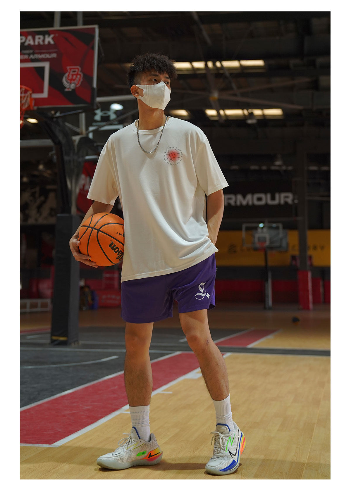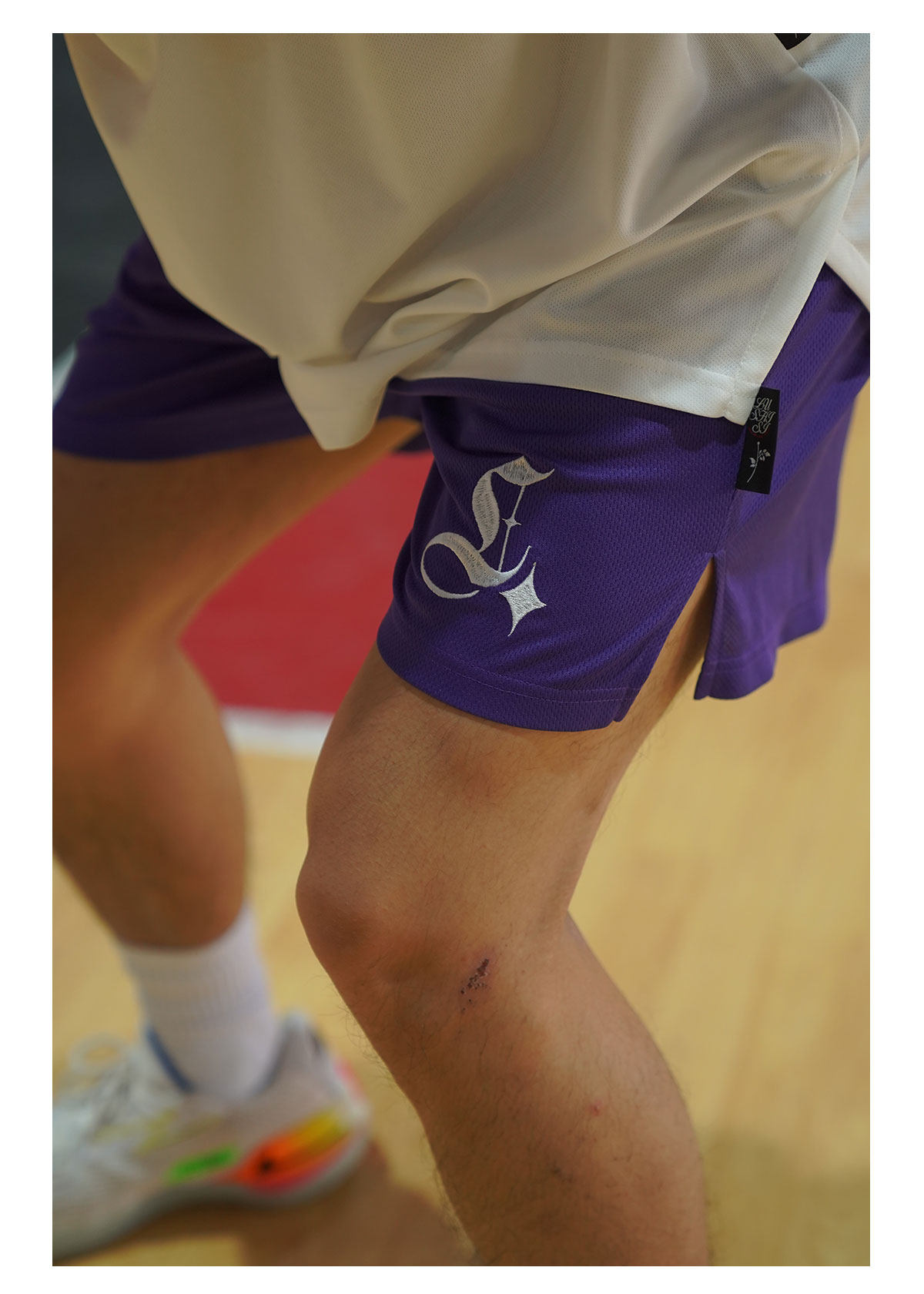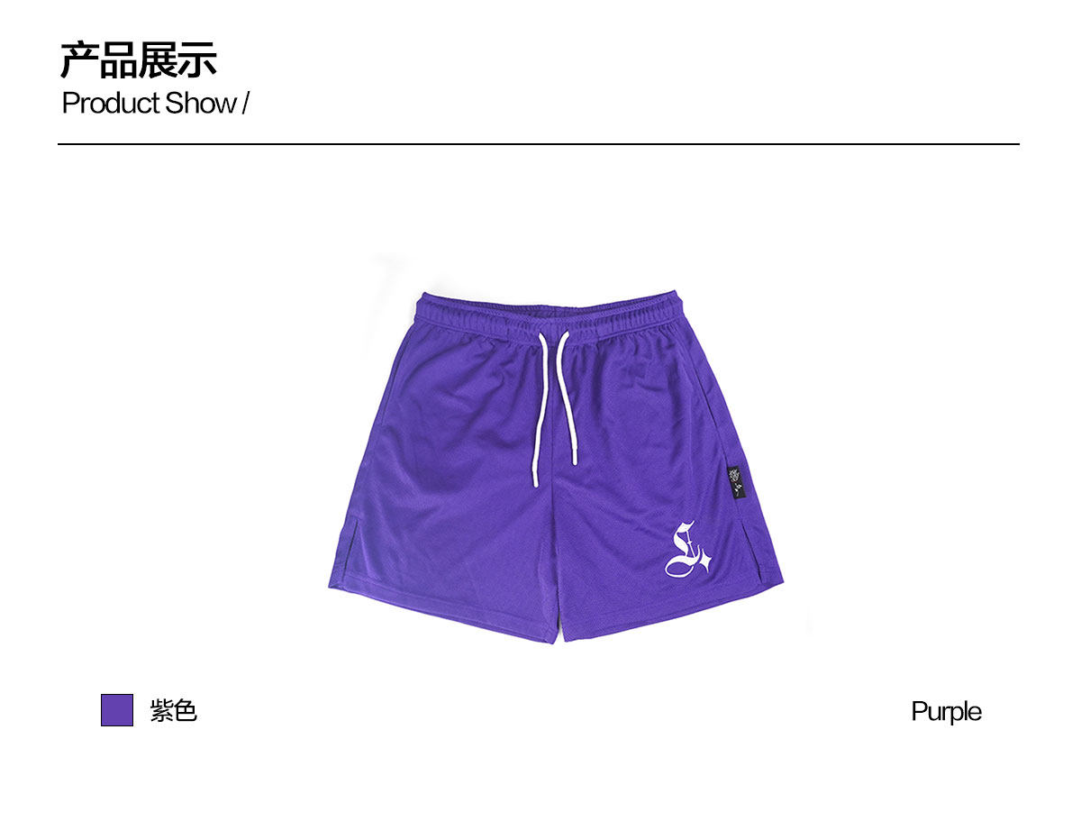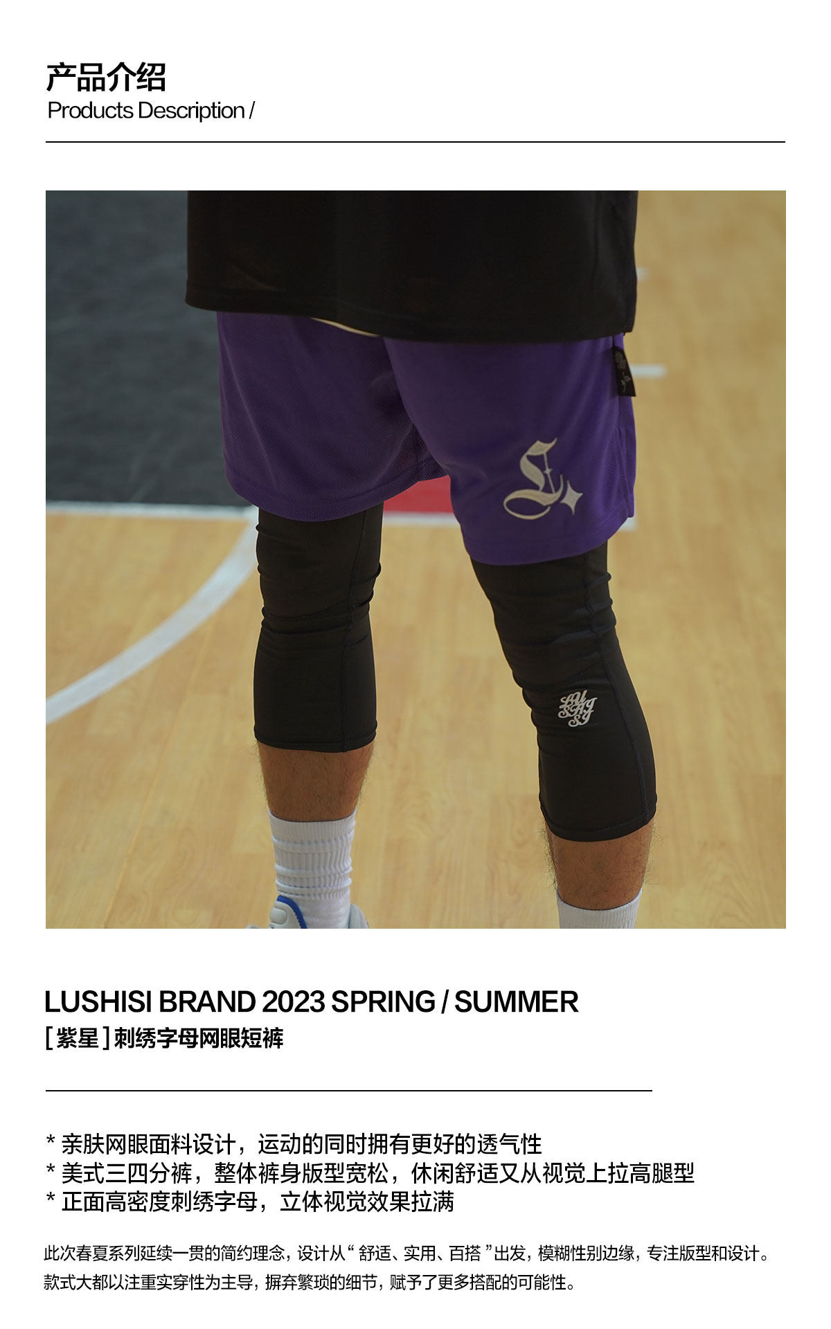 LUSHISI休閒美式街頭短褲[紫星]主題寬鬆運動復古不過膝網眼褲男