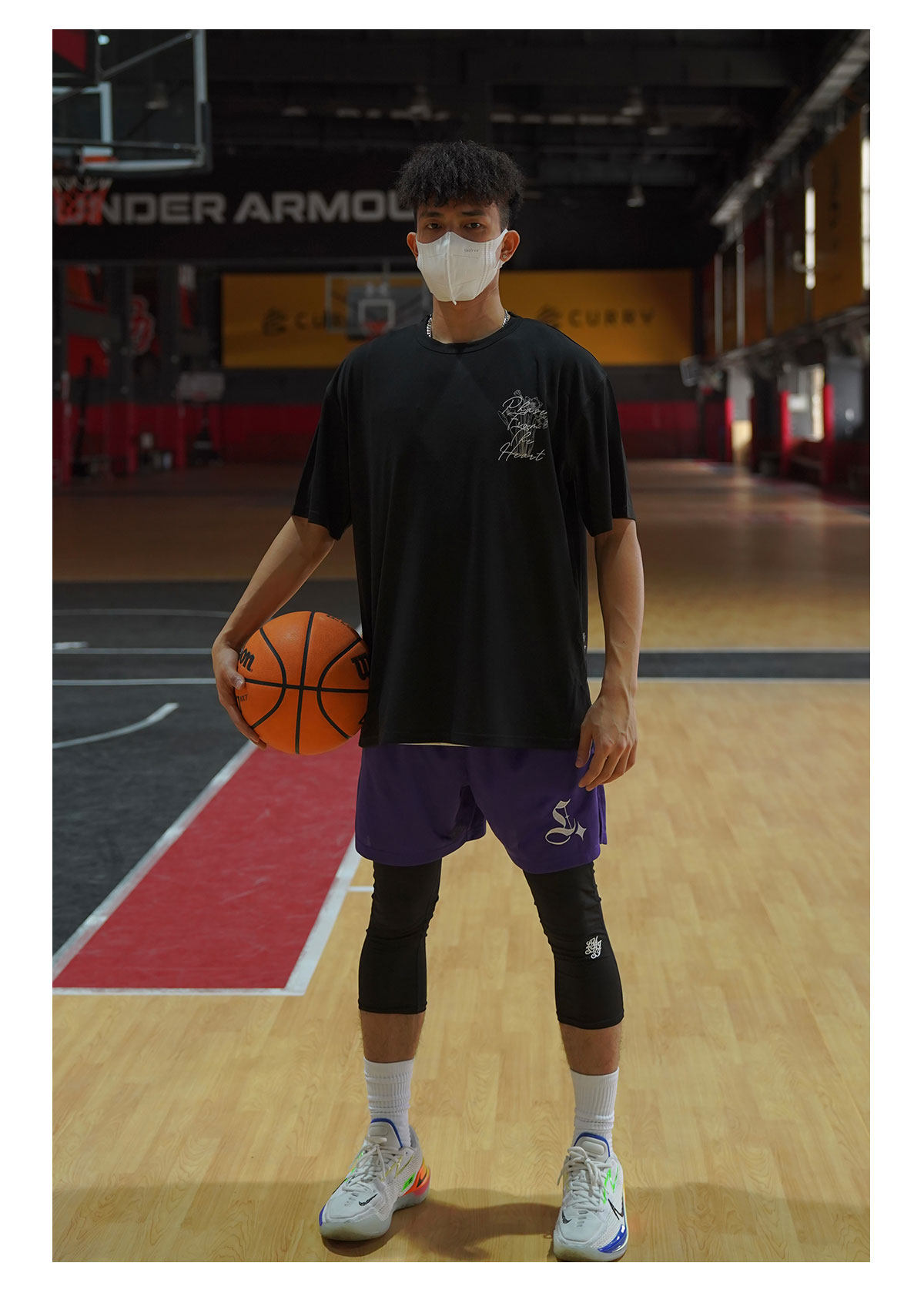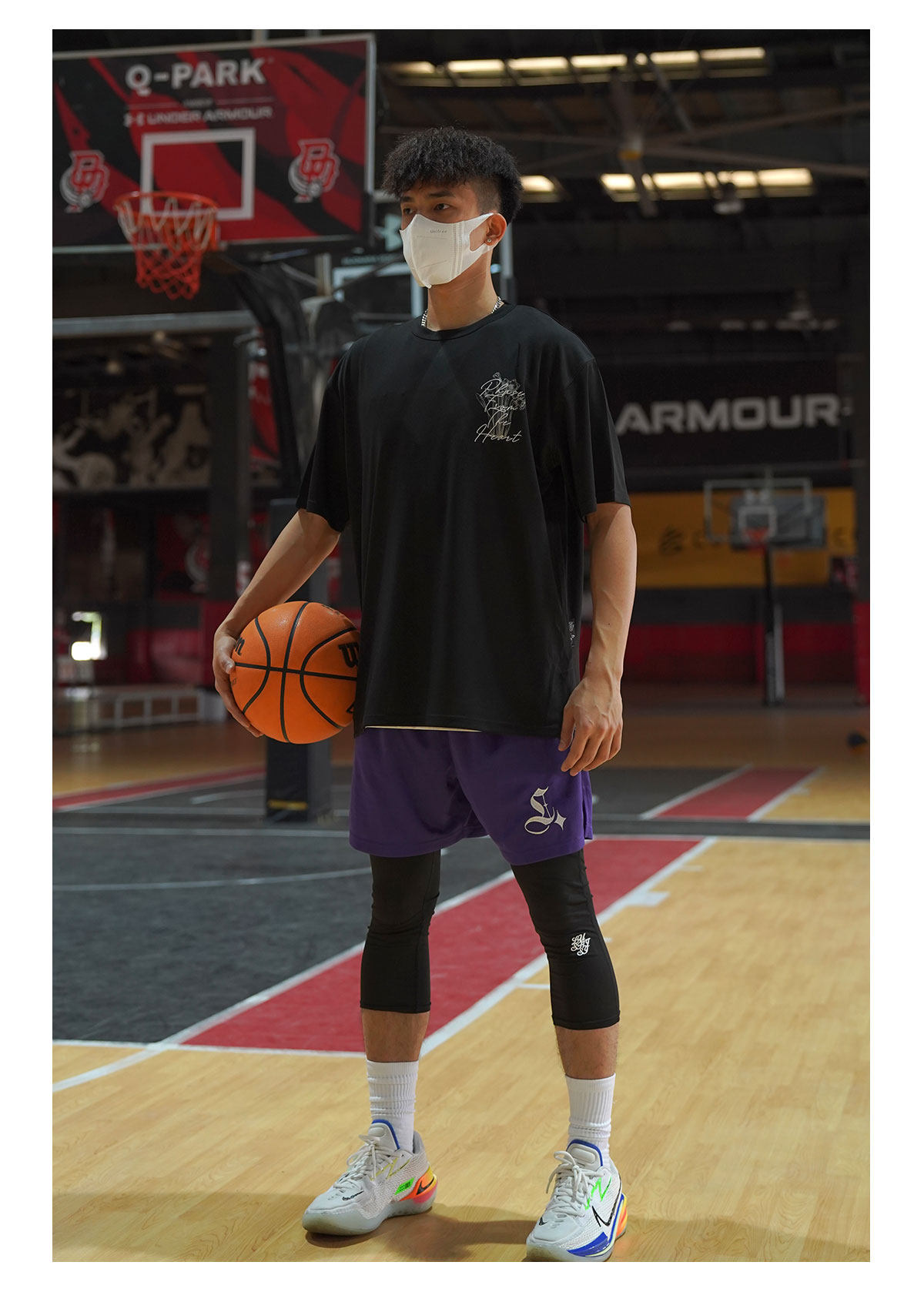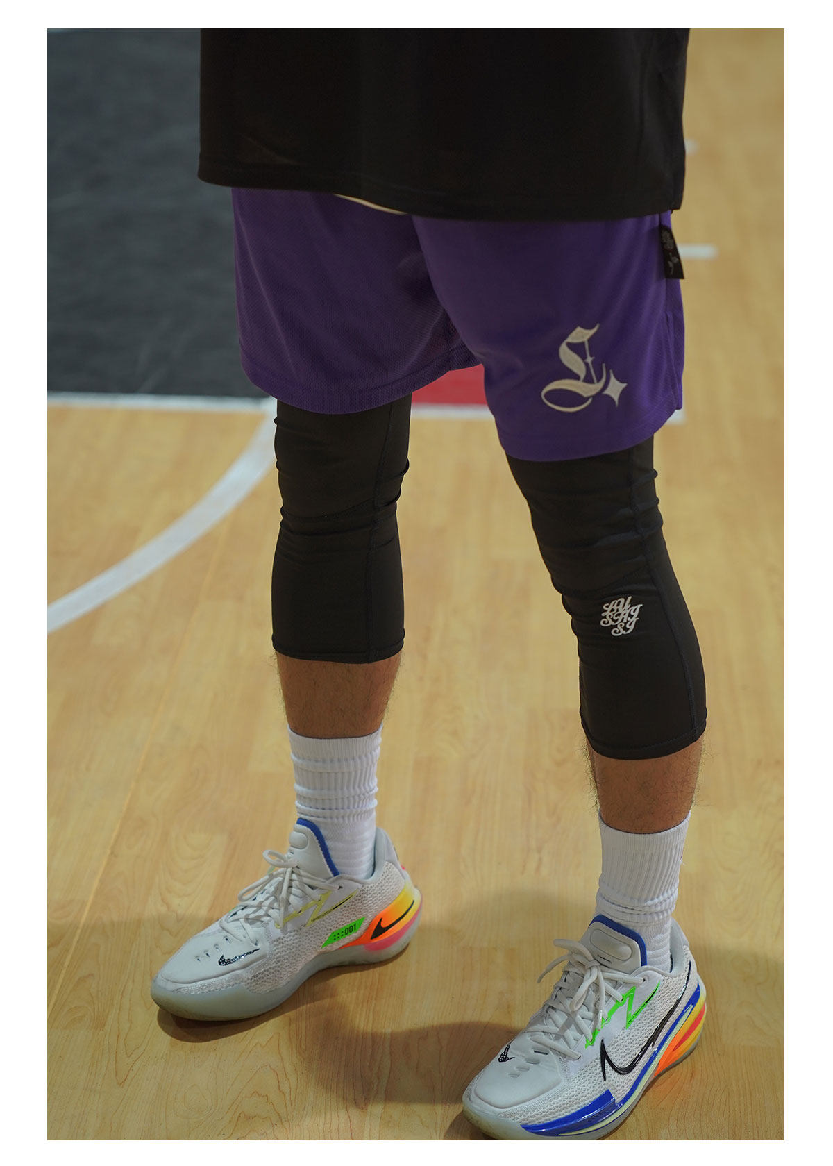 LUSHISI休閒美式街頭短褲[紫星]主題寬鬆運動復古不過膝網眼褲男