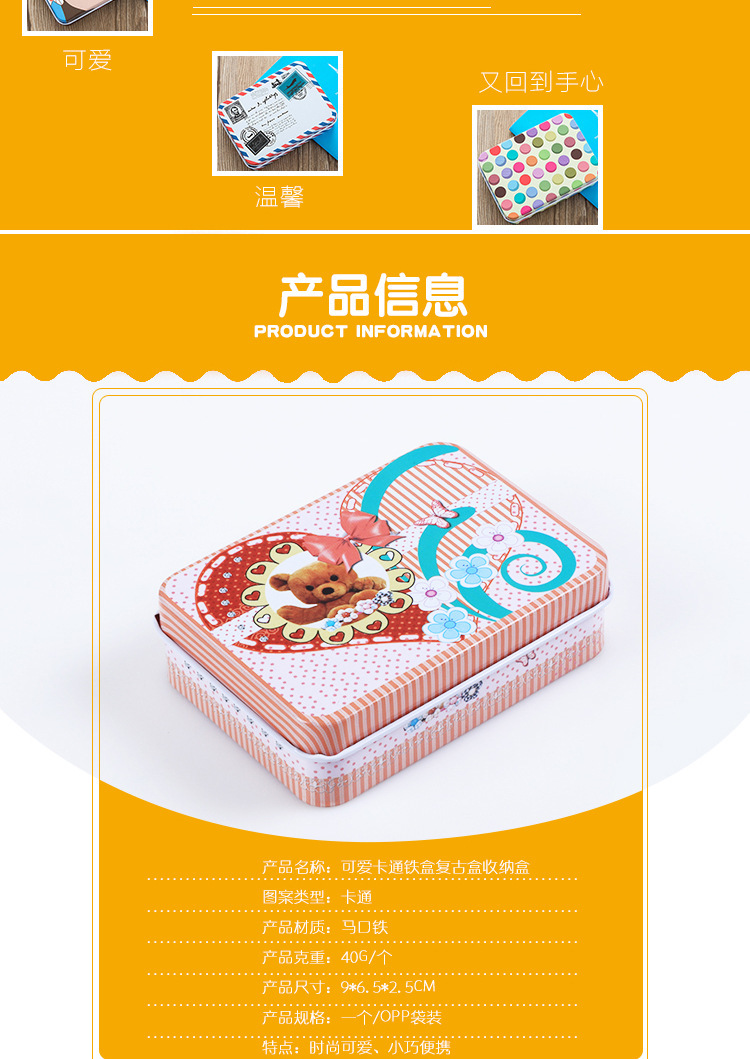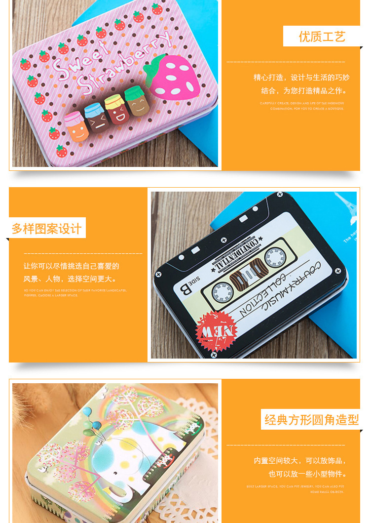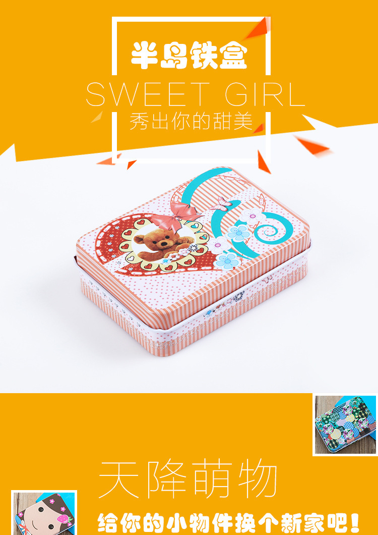 卡通可爱半岛铁盒 明信片马口铁收纳盒 首饰发夹储物盒子批发