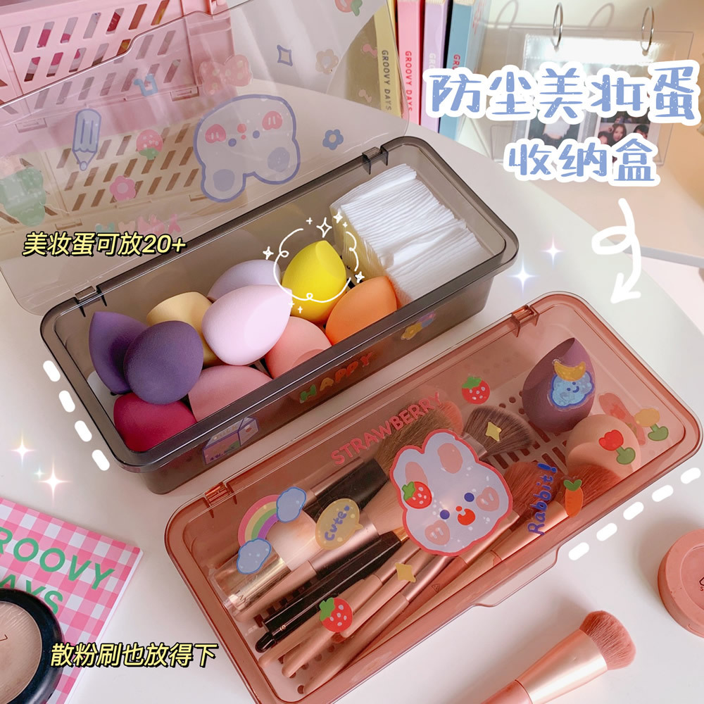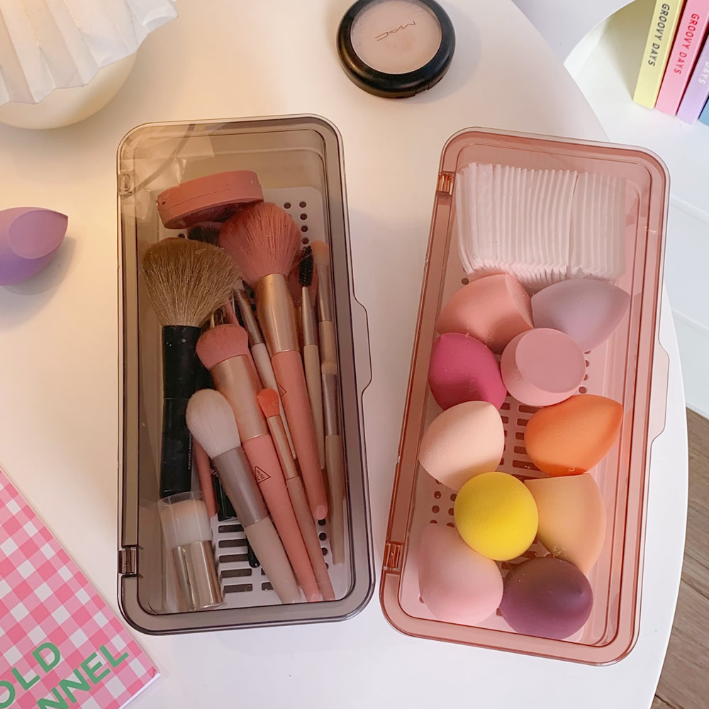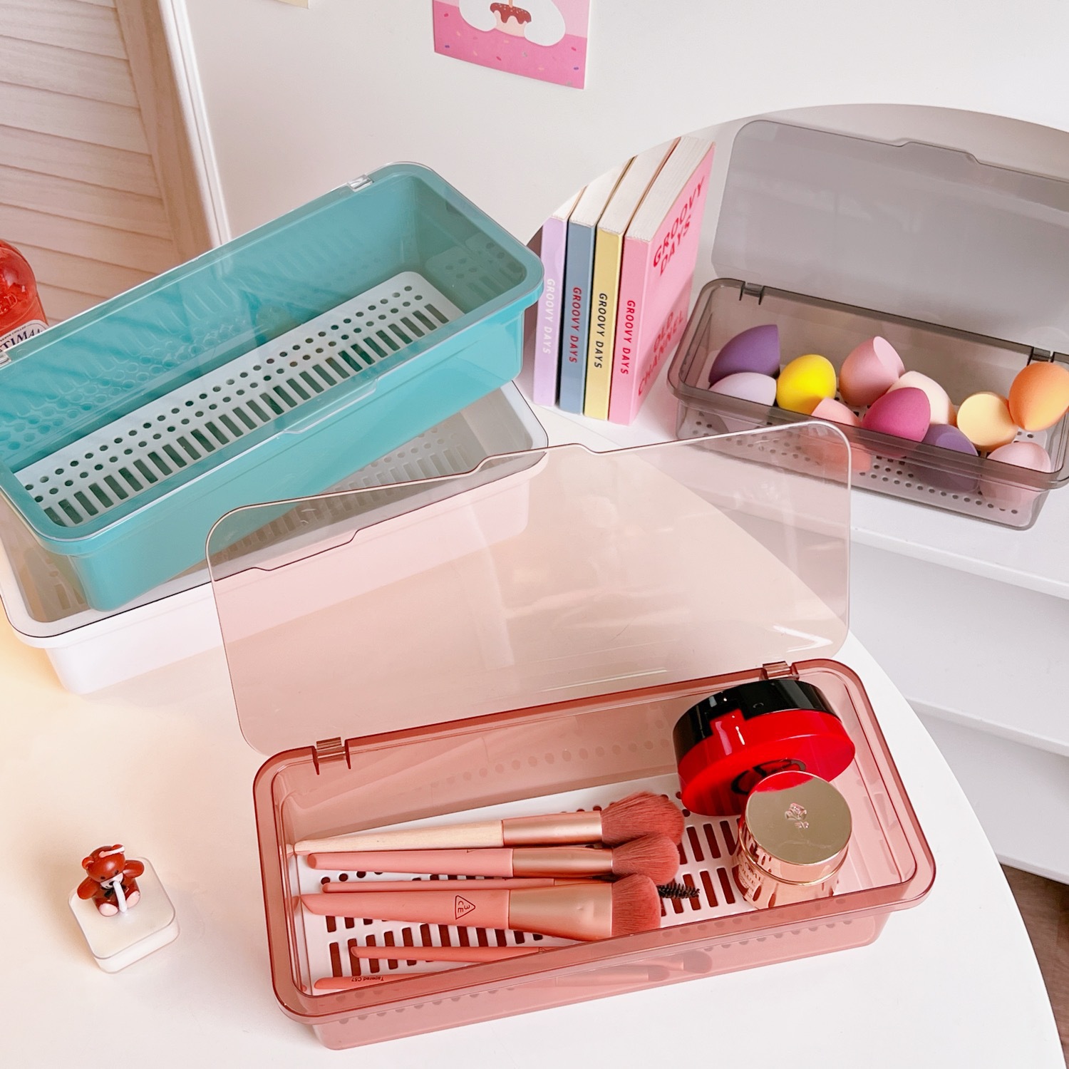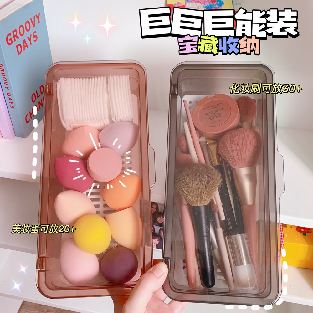 化妆品收纳盒桌面大容量美妆彩蛋收纳筒简约带盖防尘化妆刷收纳盒