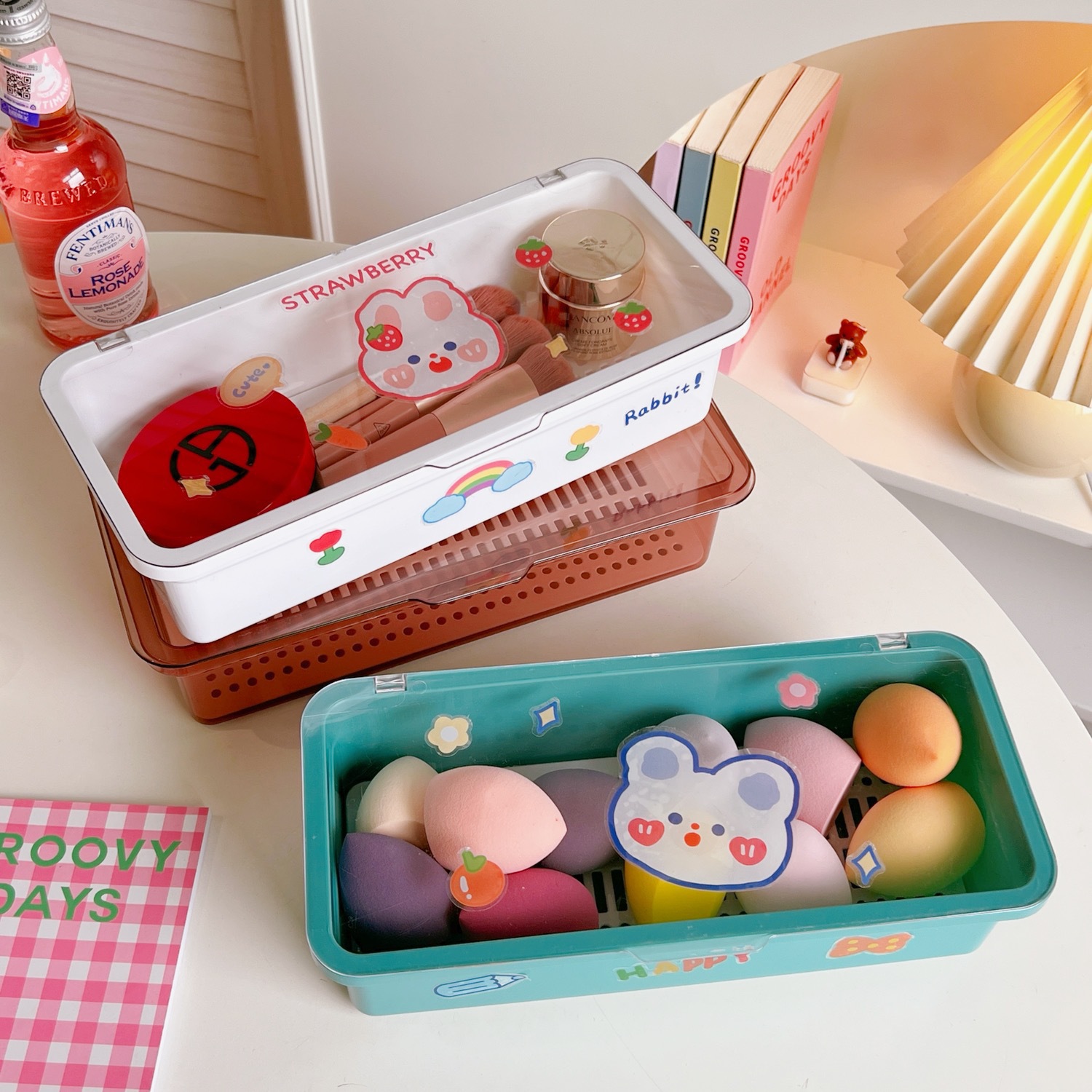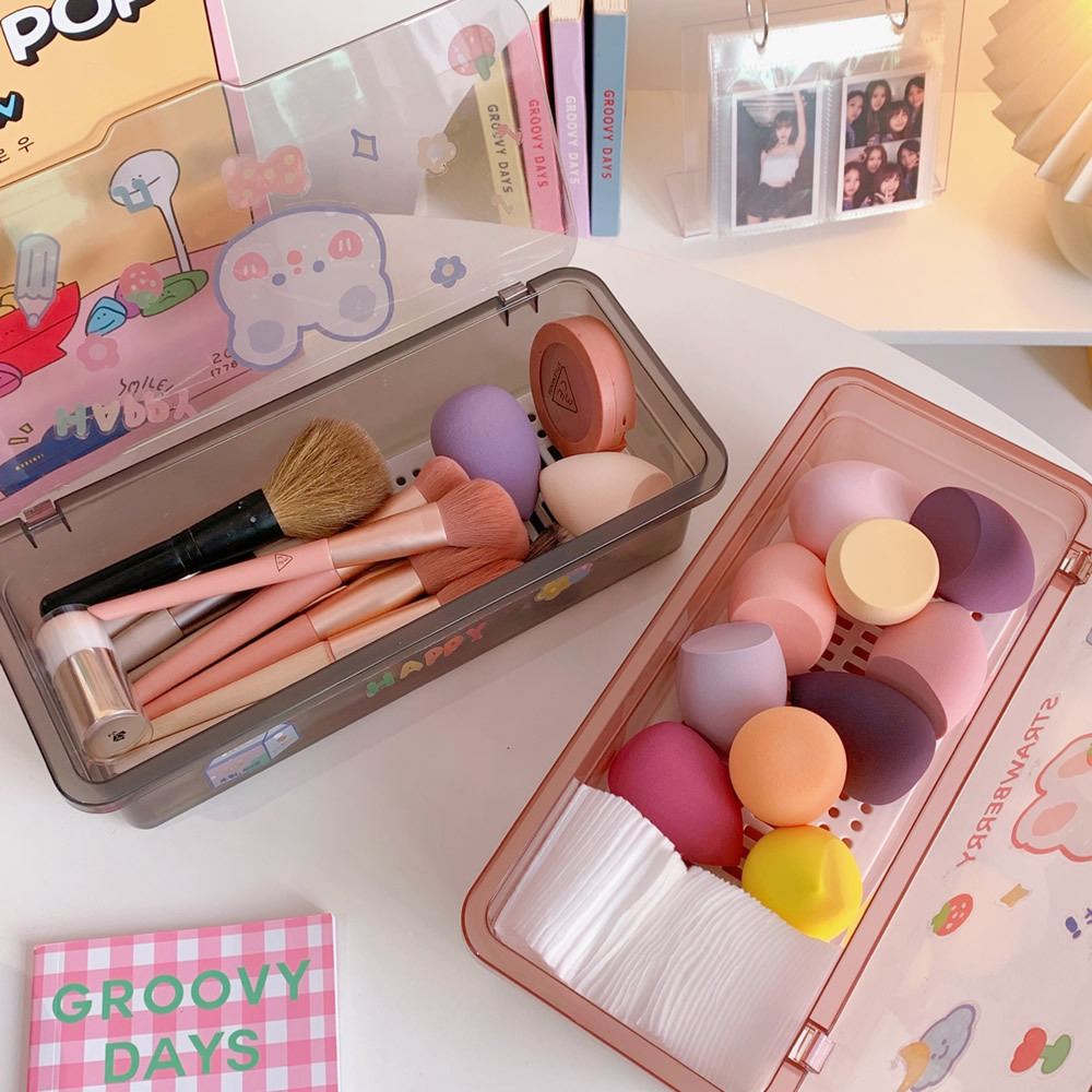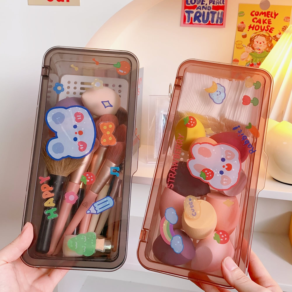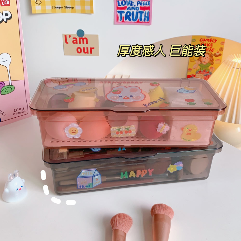 化妆品收纳盒桌面大容量美妆彩蛋收纳筒简约带盖防尘化妆刷收纳盒