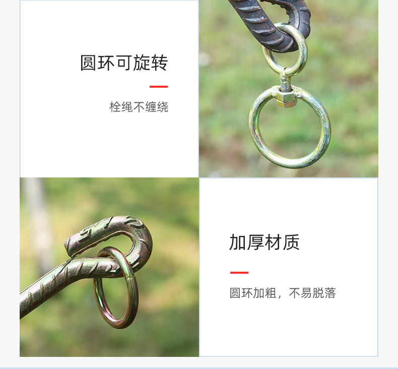 顏色分類 30長12粗(螺紋鋼鍍彩)圓環款,30長12粗(螺紋鋼鍍彩)轉環款,40長12粗(螺紋鋼鍍彩)圓環款,40長12粗(螺紋鋼鍍彩)轉環款,50長14粗(螺紋鋼原色)轉環款,60長14粗(螺紋鋼原色)轉環款