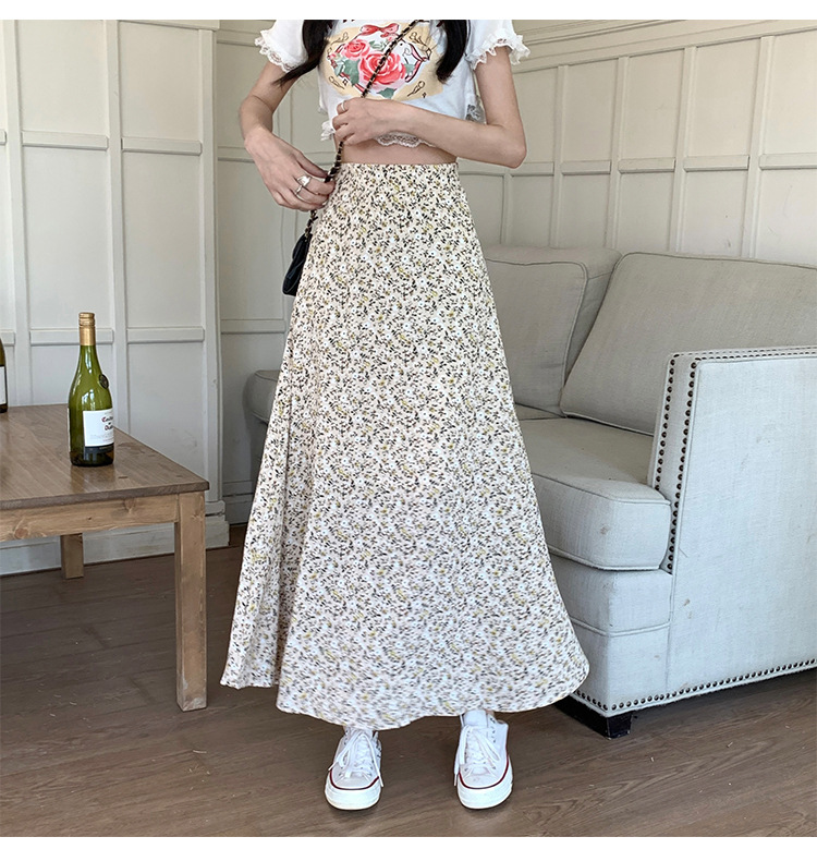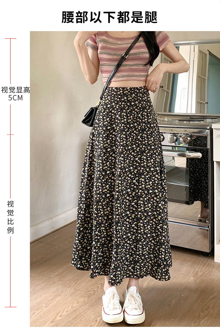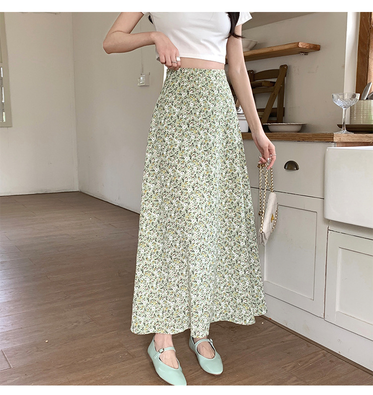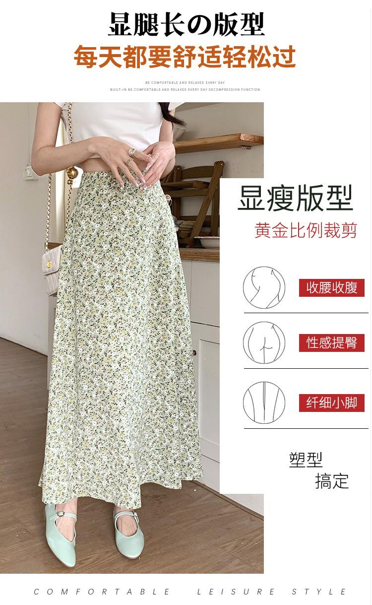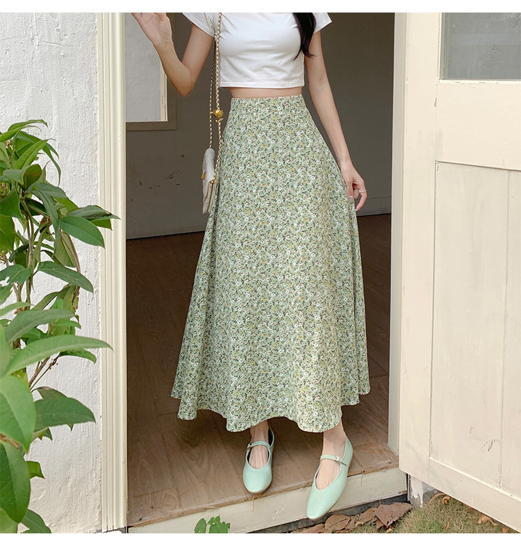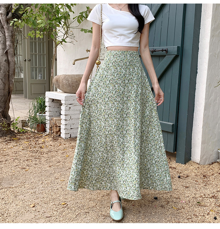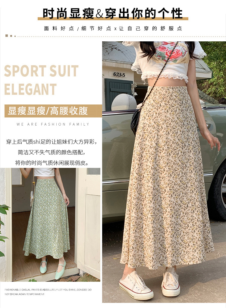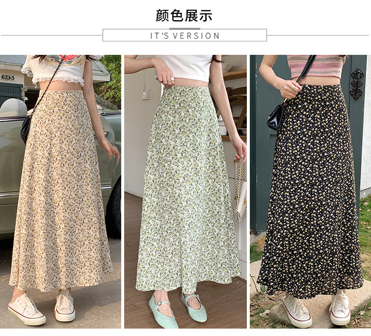 模特实拍夏季新款高腰长款碎花大摆半身裙显瘦显高的A字长裙女装