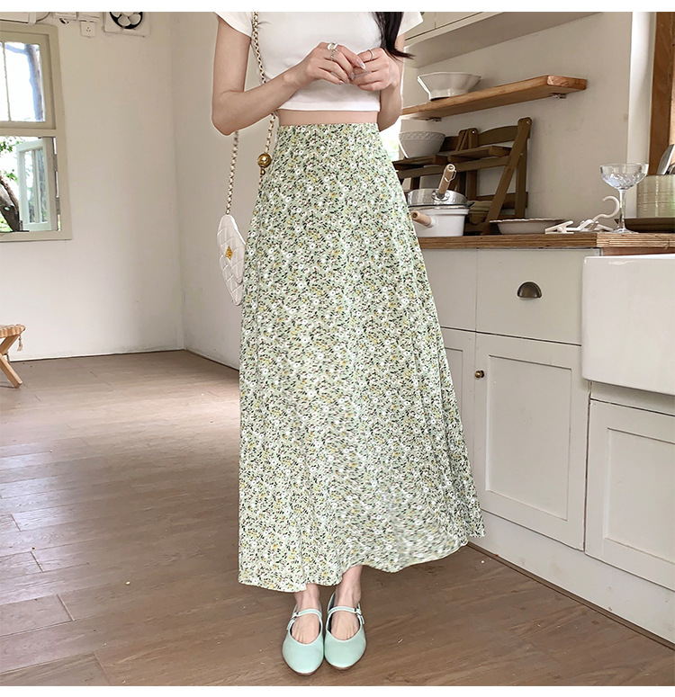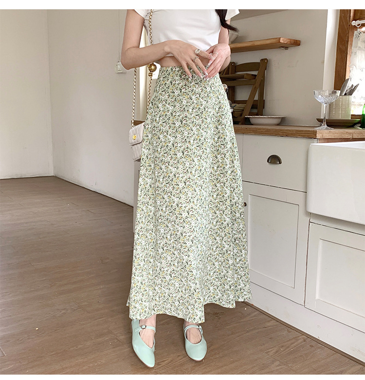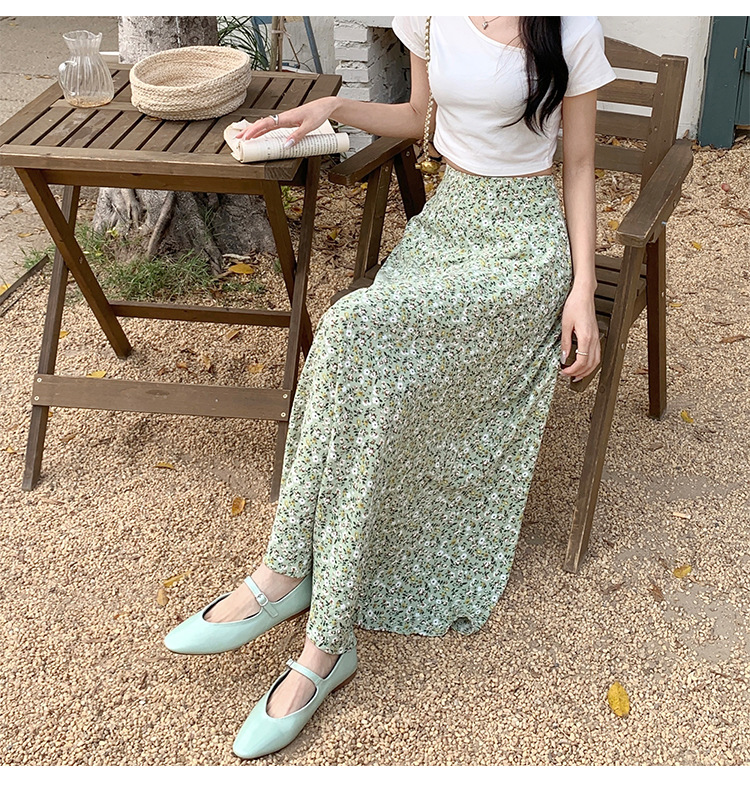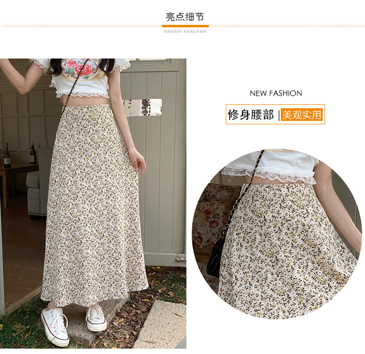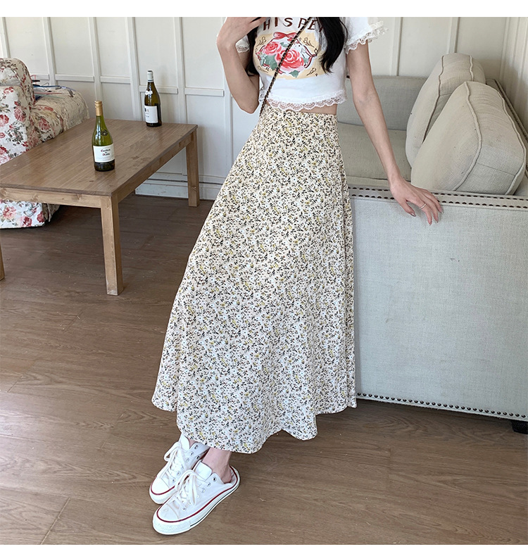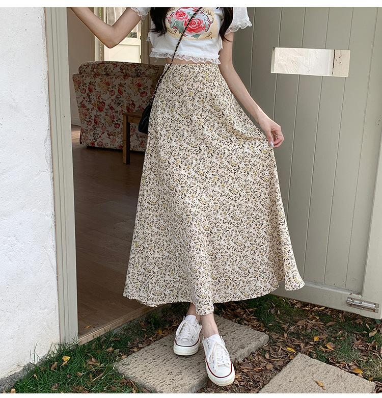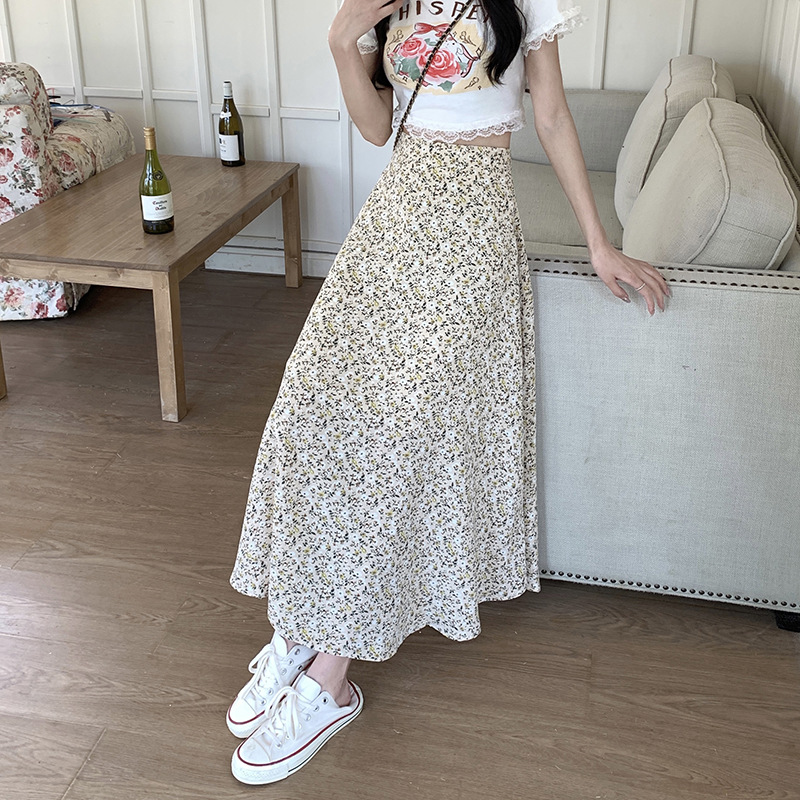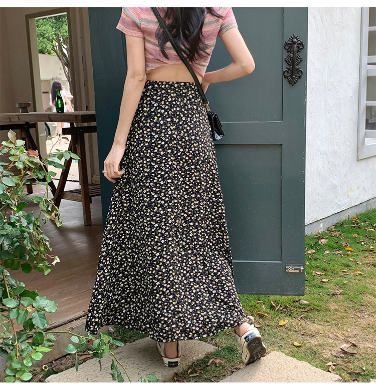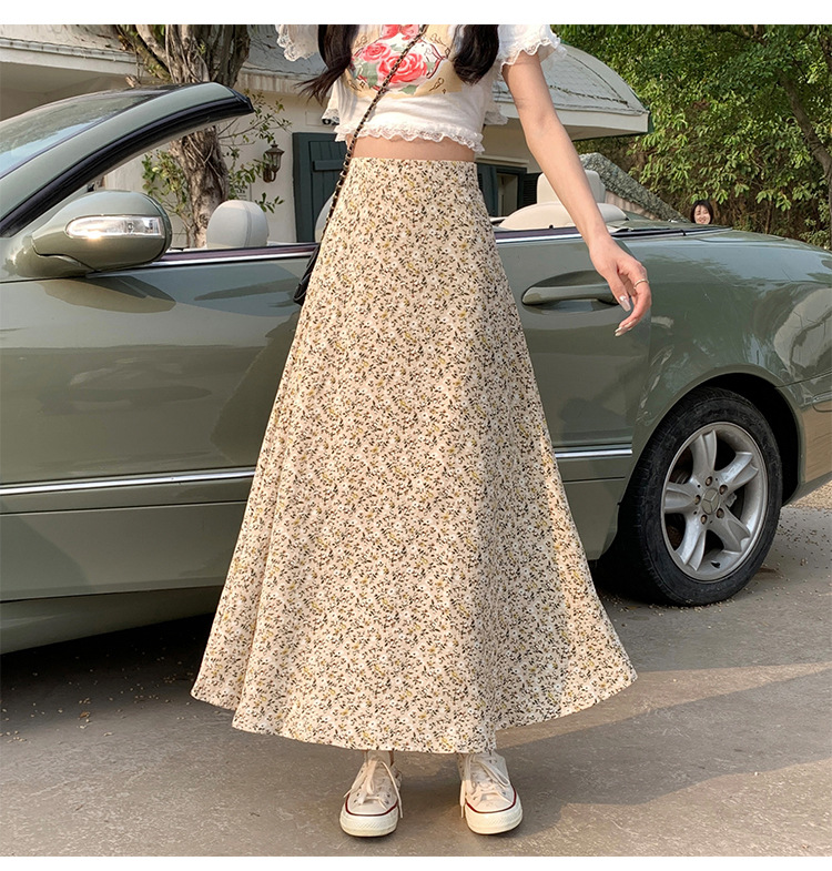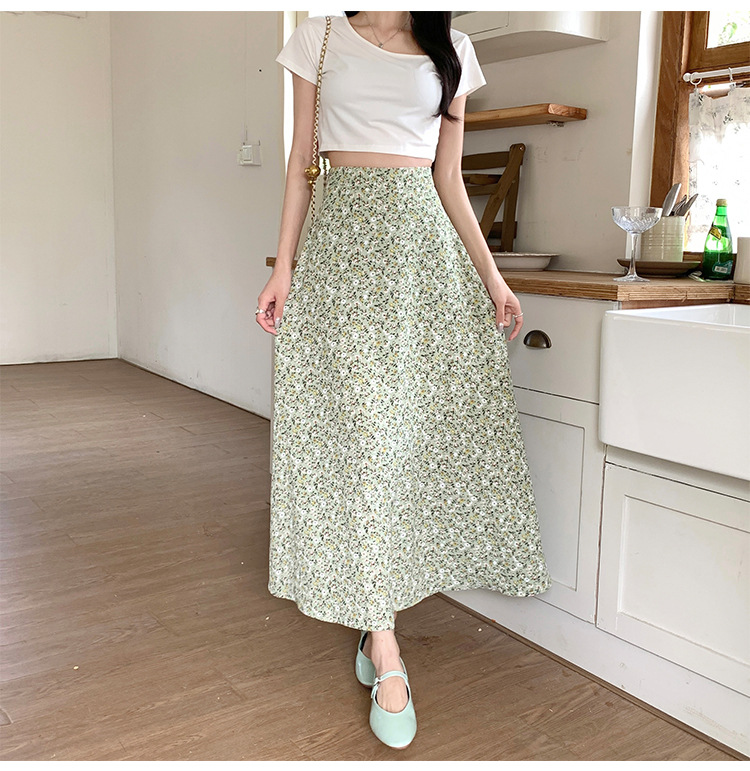 模特实拍夏季新款高腰长款碎花大摆半身裙显瘦显高的A字长裙女装