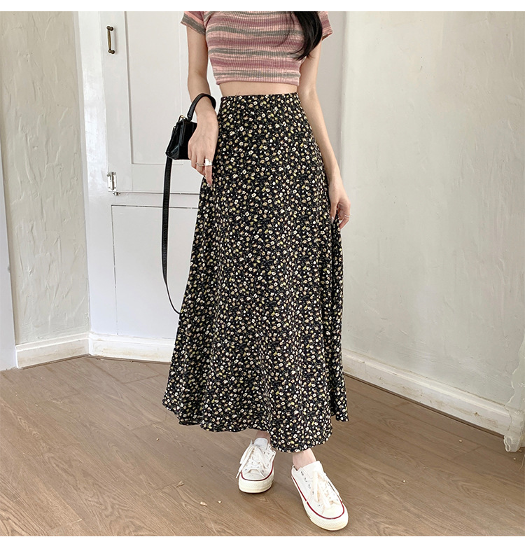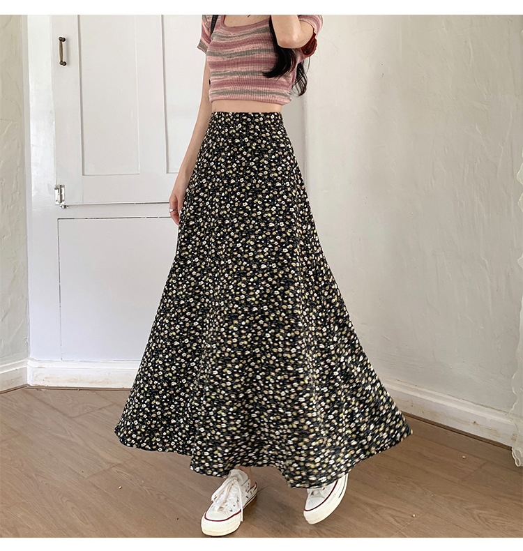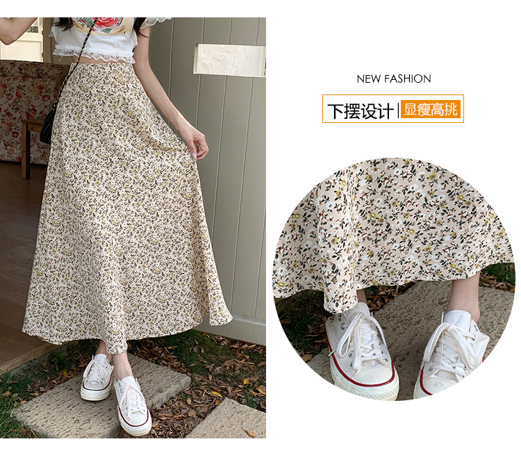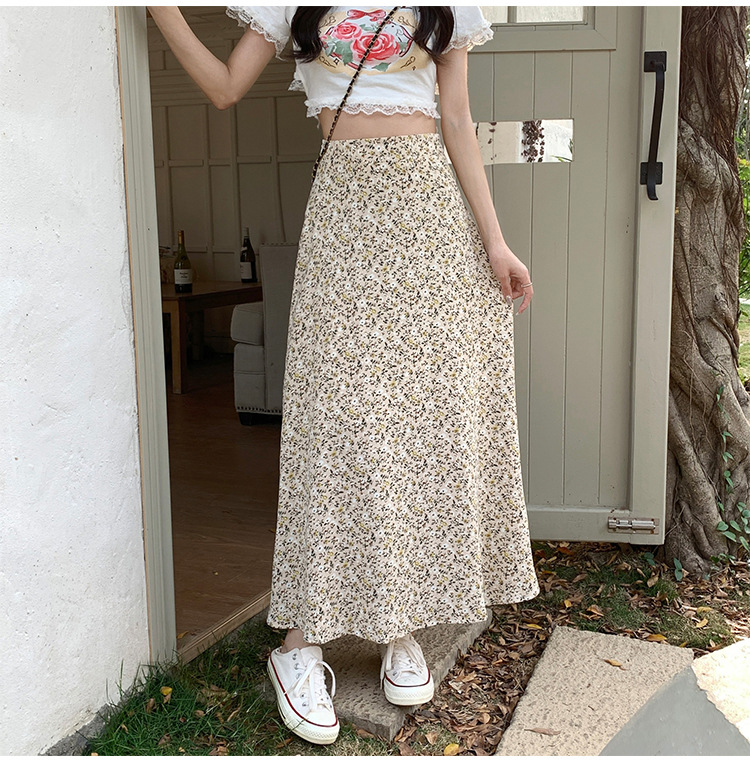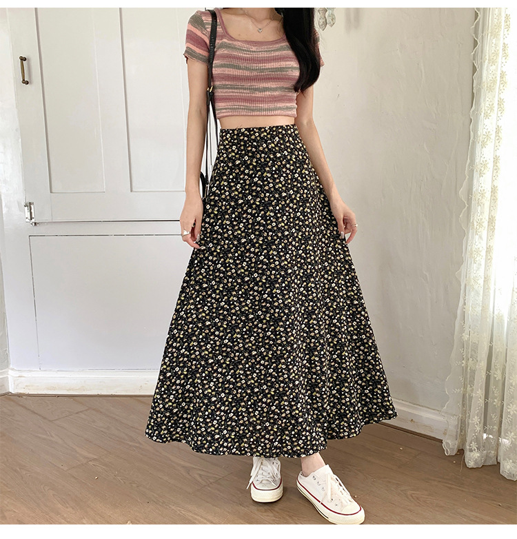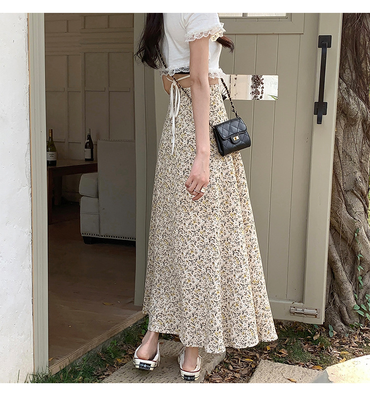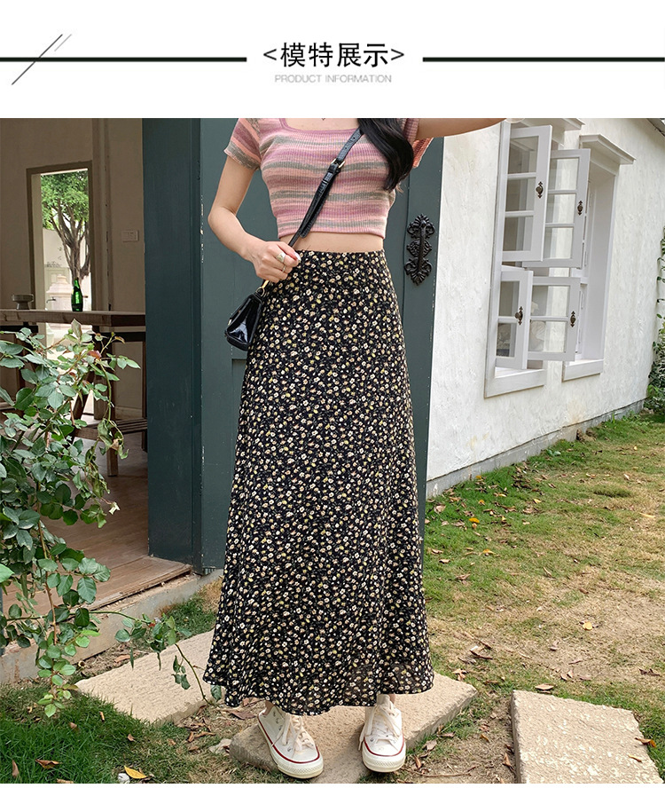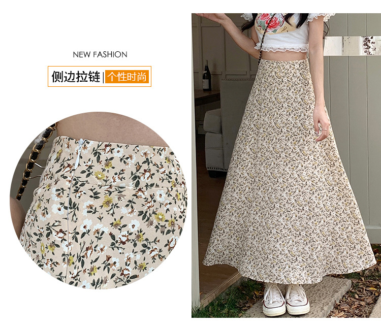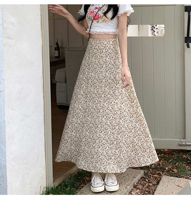 模特实拍夏季新款高腰长款碎花大摆半身裙显瘦显高的A字长裙女装