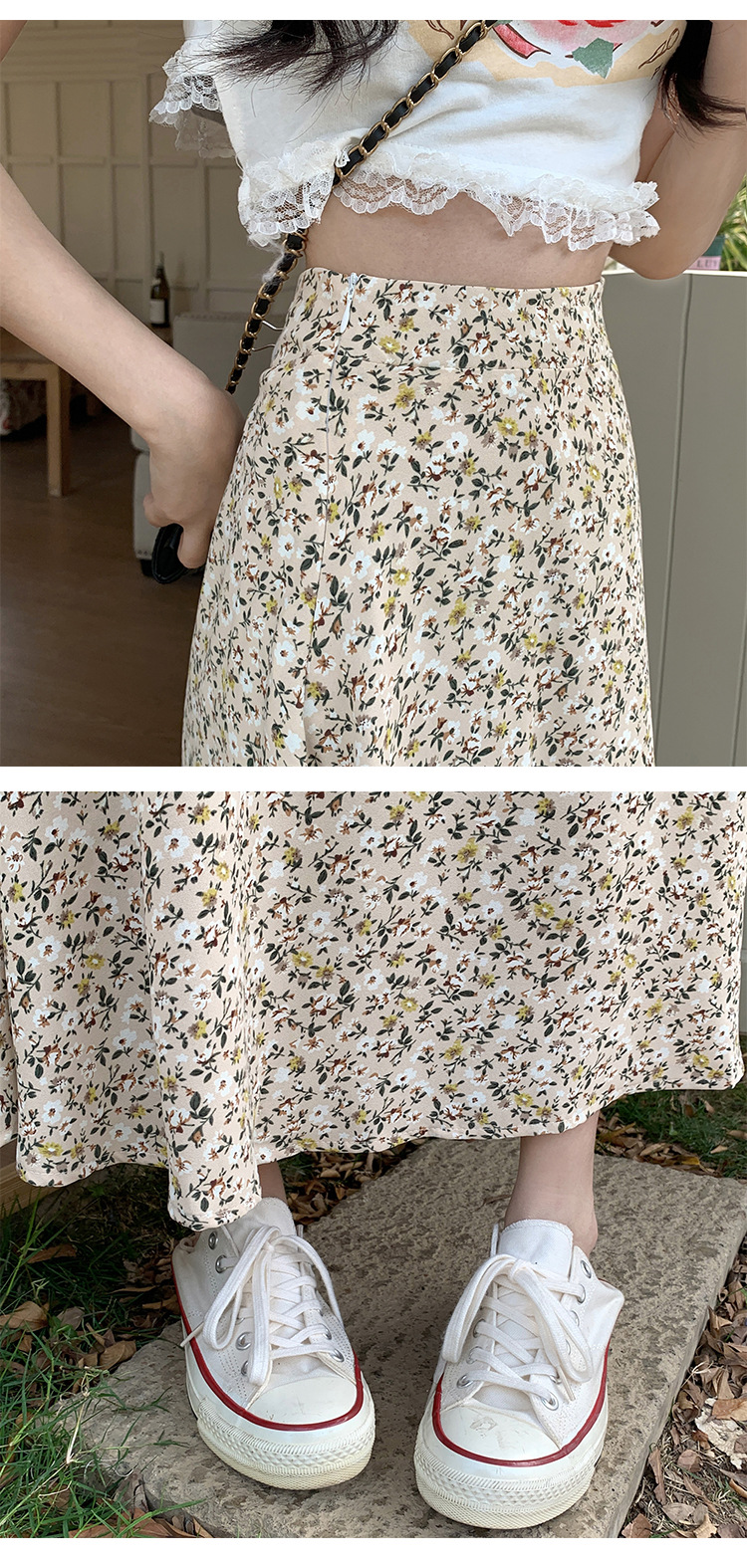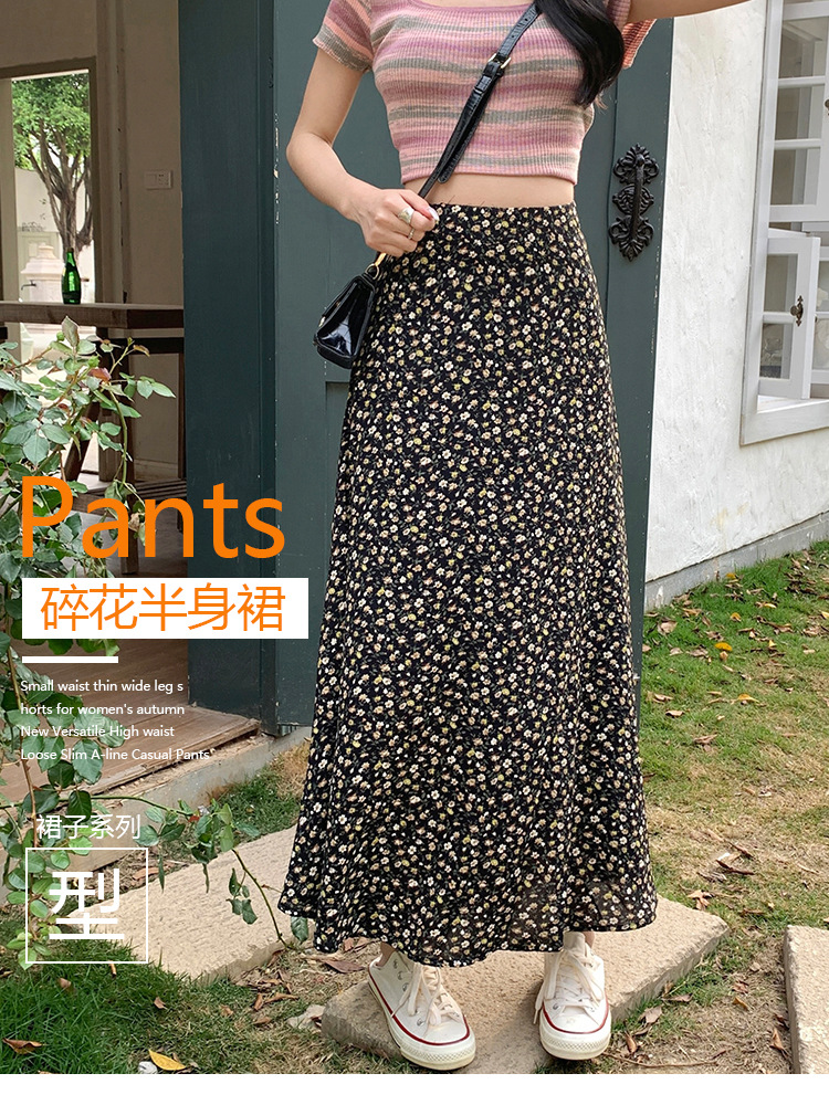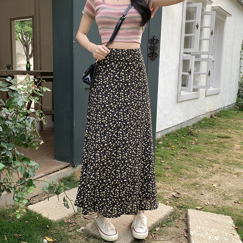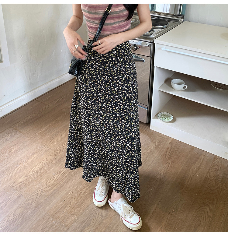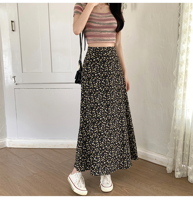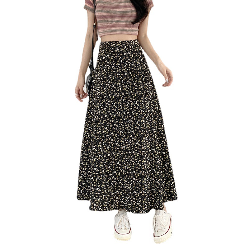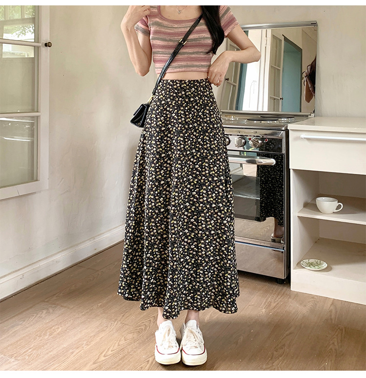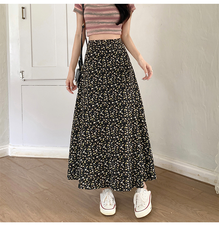 模特实拍夏季新款高腰长款碎花大摆半身裙显瘦显高的A字长裙女装
