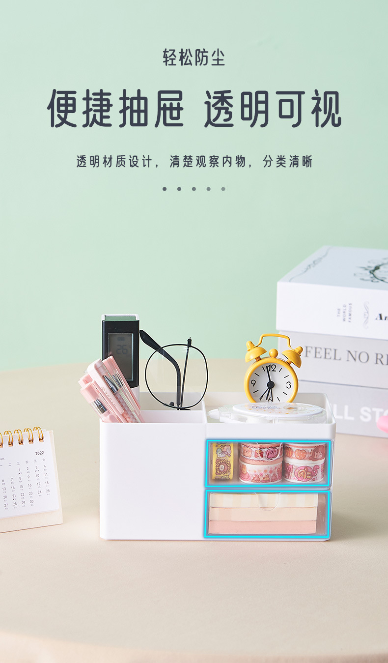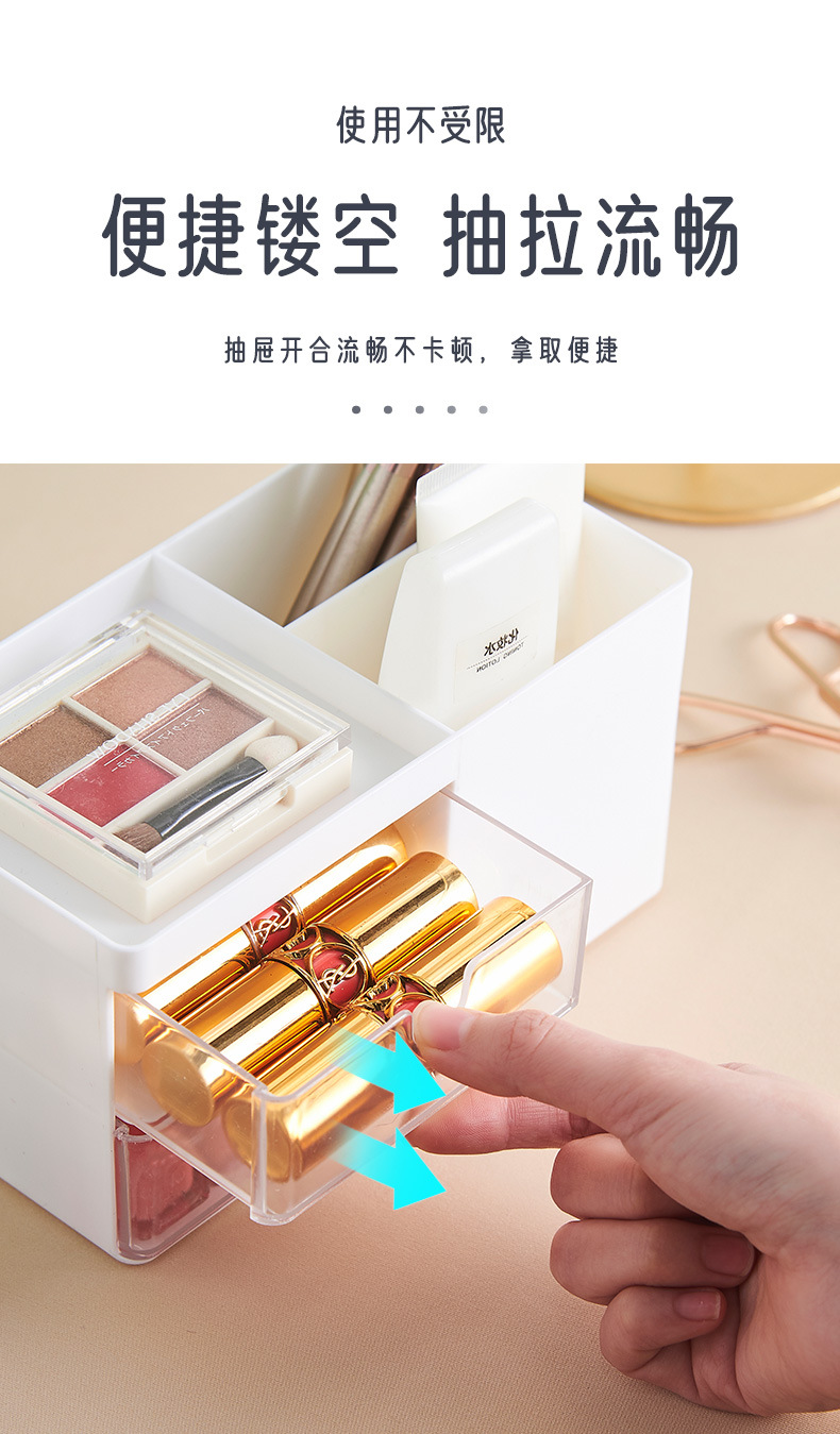 抽屉式文具收纳盒笔透明学生收纳柜化妆品口红首饰日式收纳盒桌面