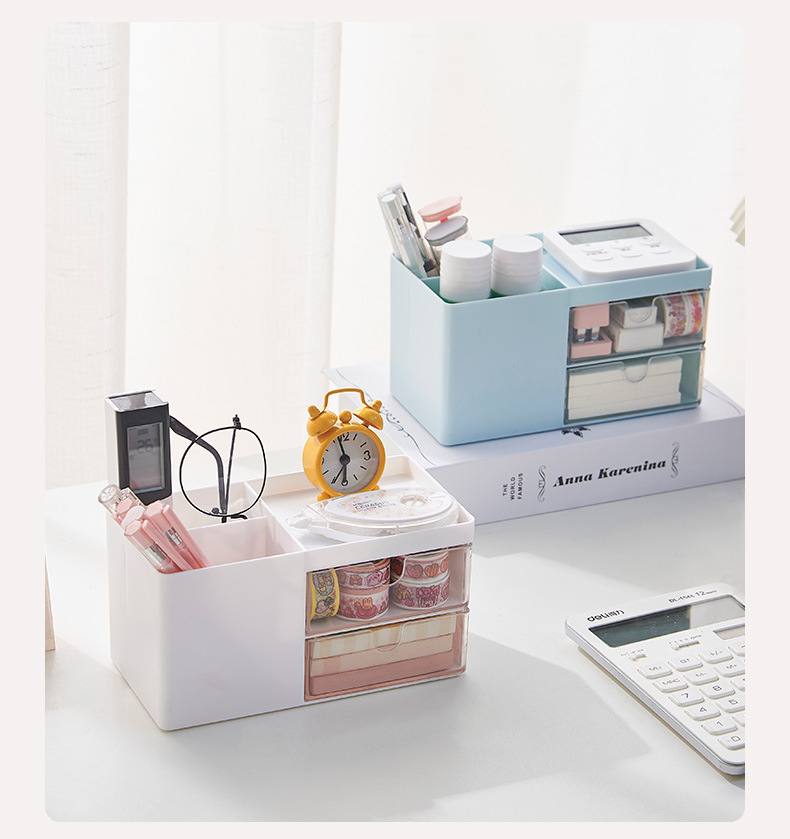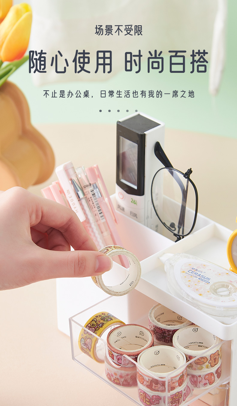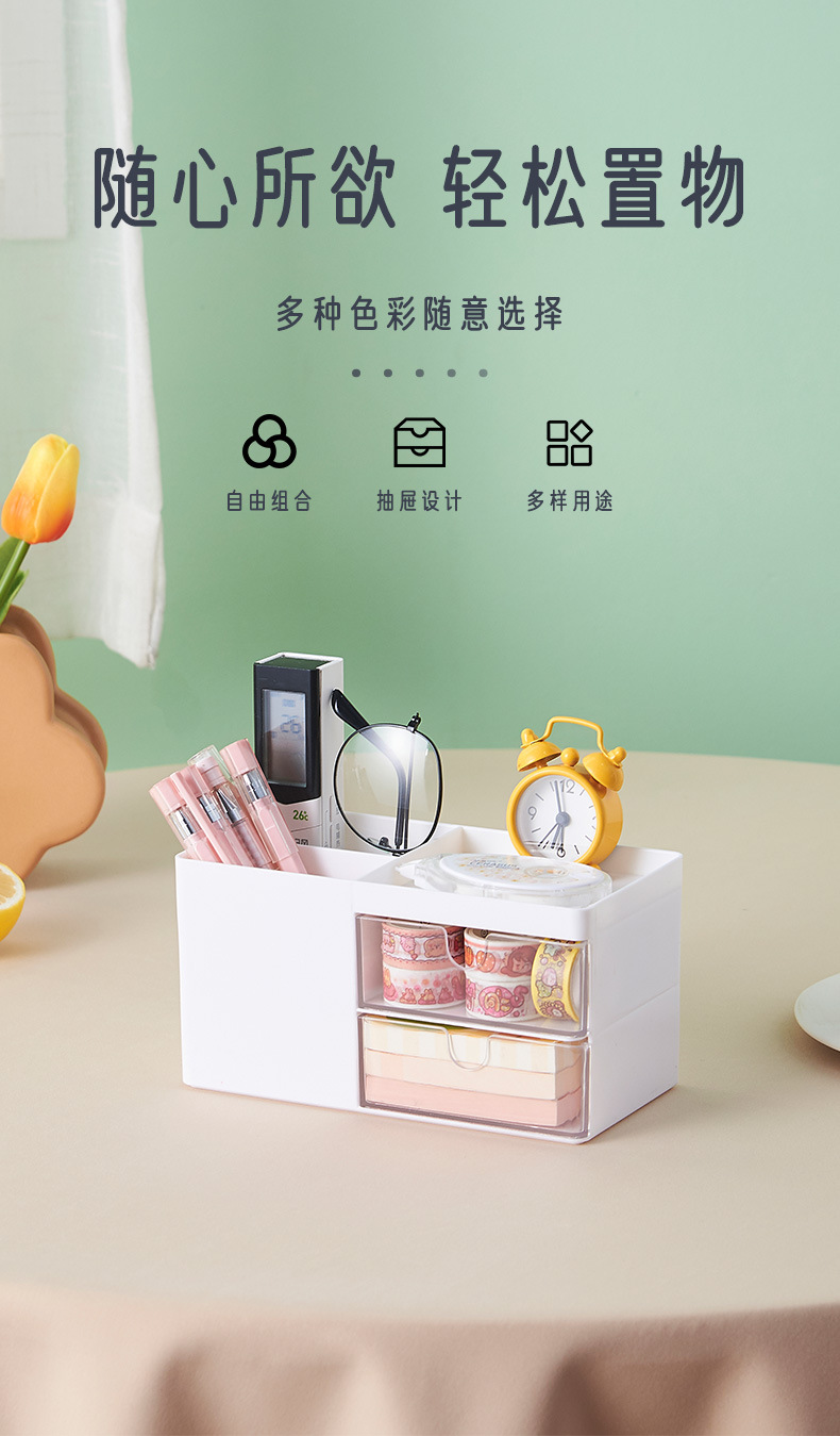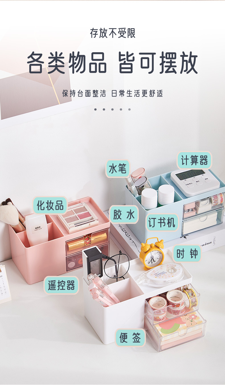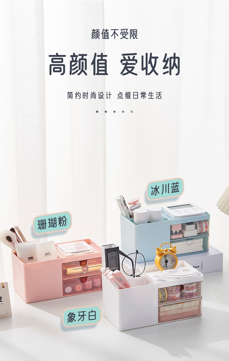 北欧ins桌面收纳塑料抽屉式办公室学生文具笔筒化妆品杂物收纳盒