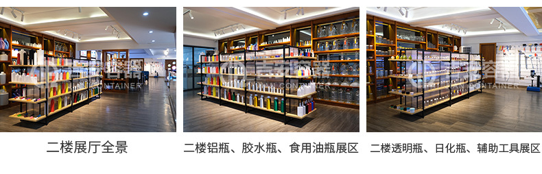 样品展示中心建筑面积500㎡,全面现场展示公司实物产品:从3ML到1000L等不同容量及规格大小的包装桶、包装罐、样品盒、样品瓶、铁桶、铁罐、铝瓶、铝罐、尖嘴瓶、酒精瓶等。