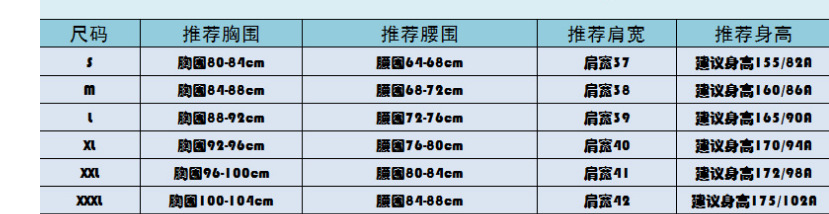 尺码 S,M,L,XL,XXL,XXXL,4XL