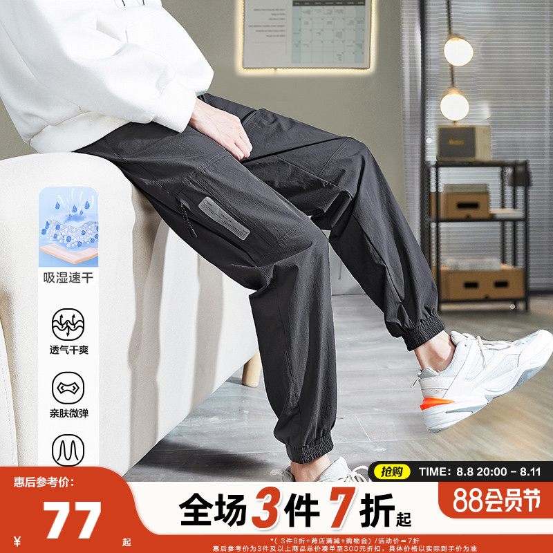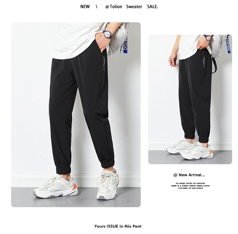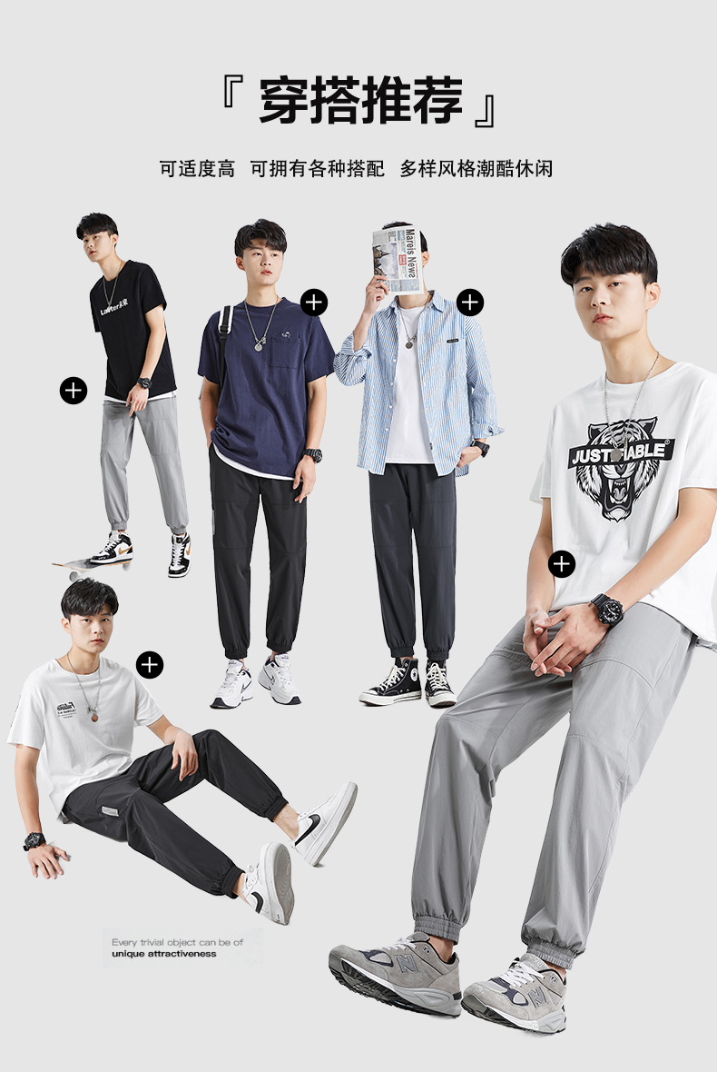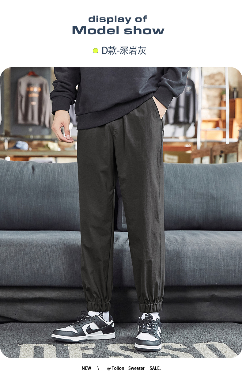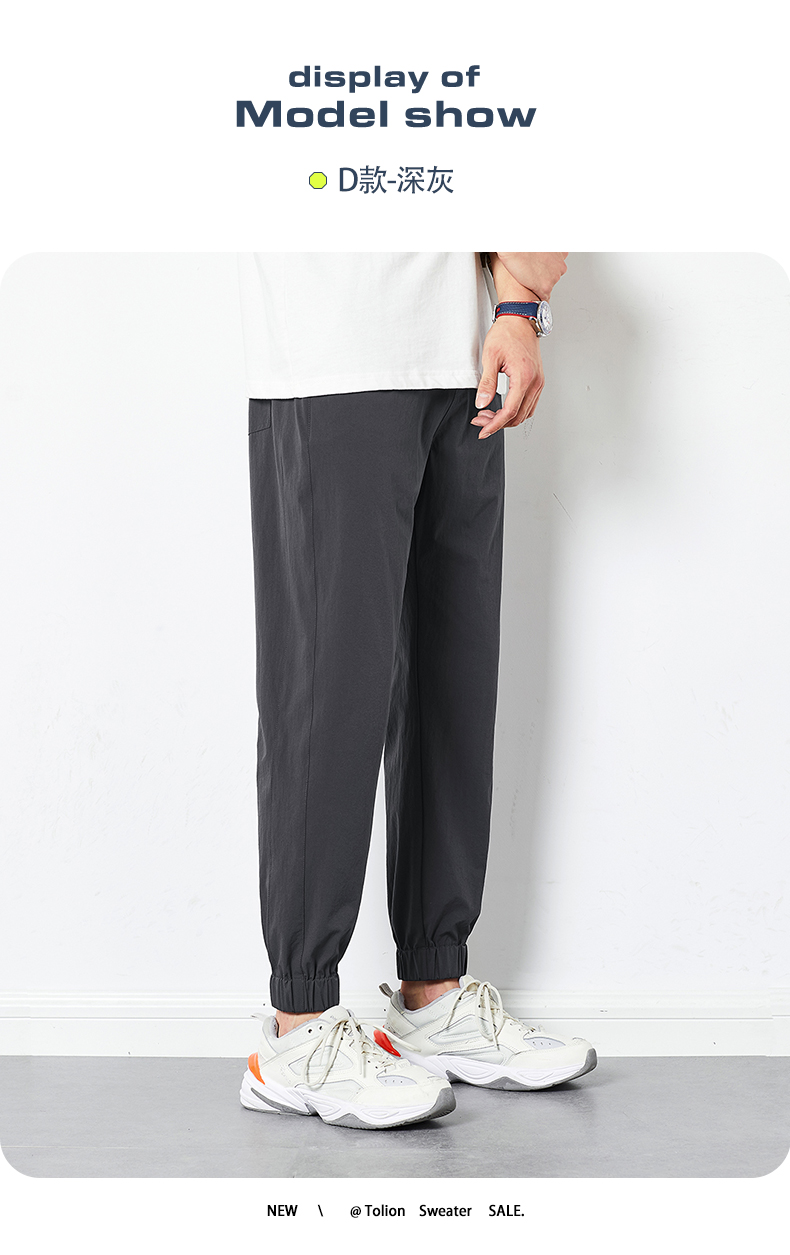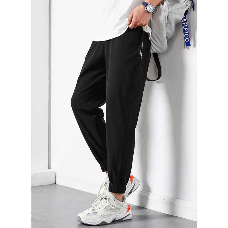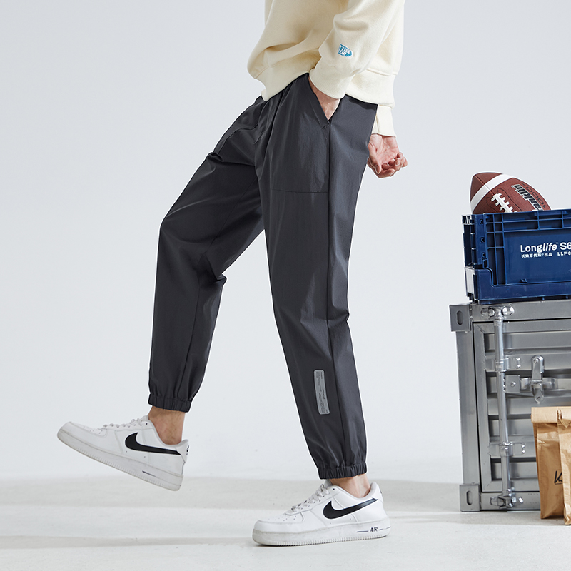 唐獅2022夏季新款休閒褲子男士束腳運動褲男速乾薄款韓版潮流寬鬆