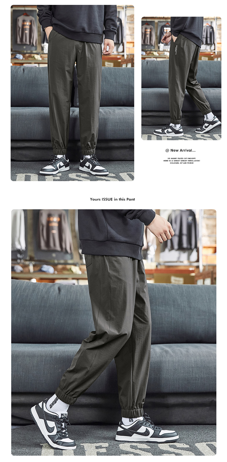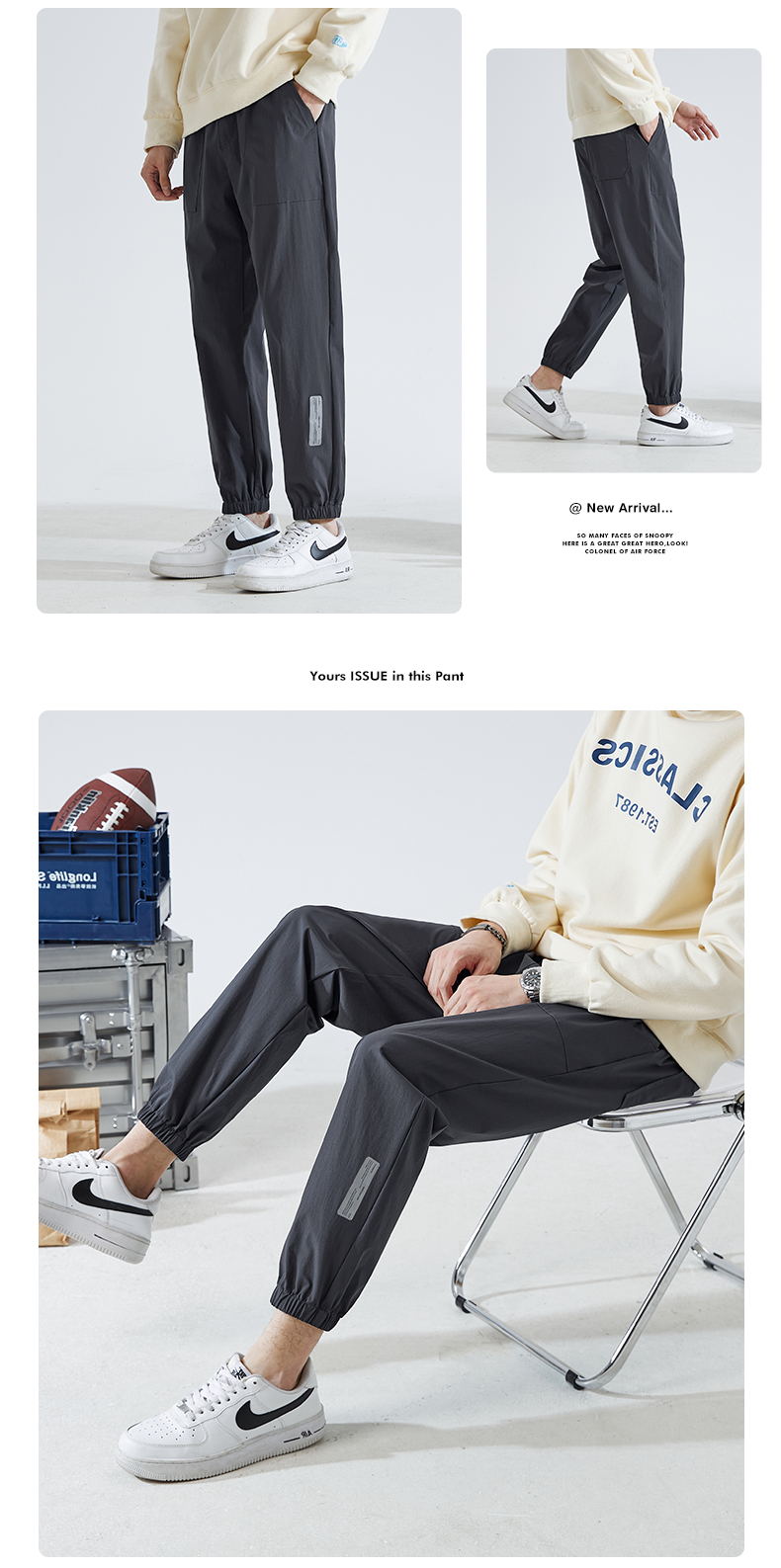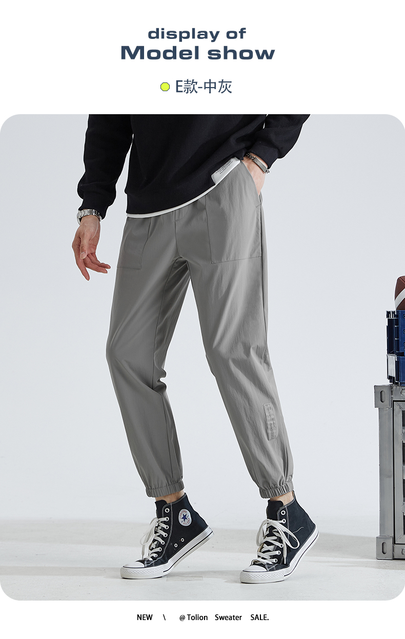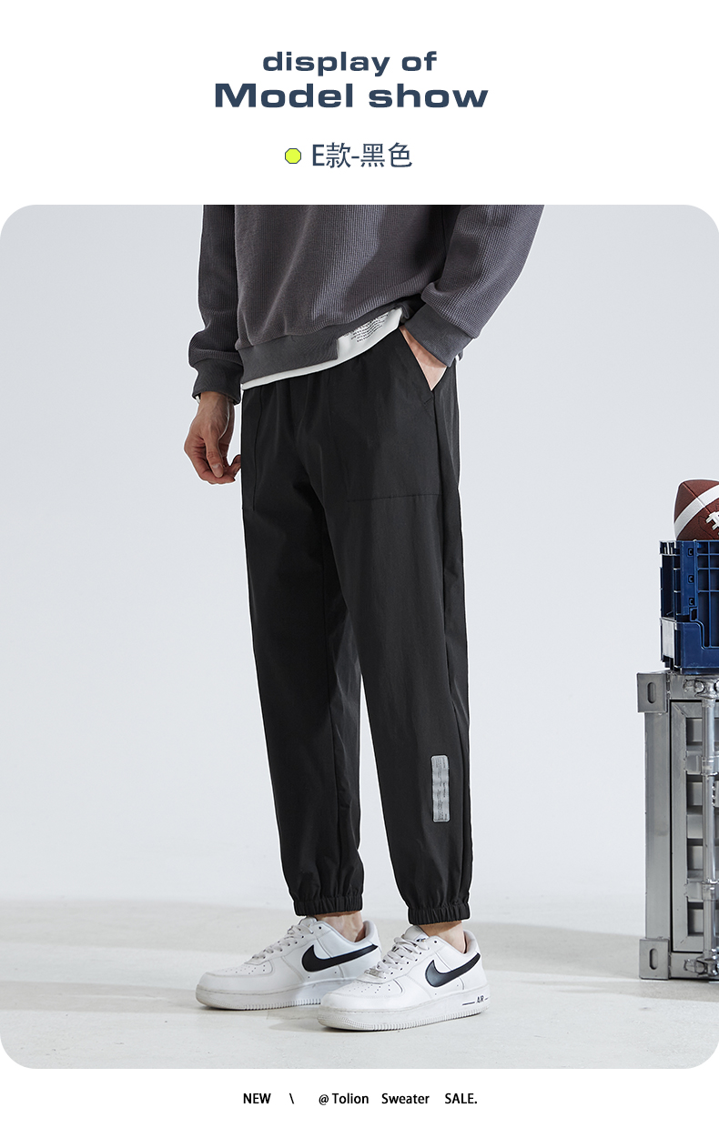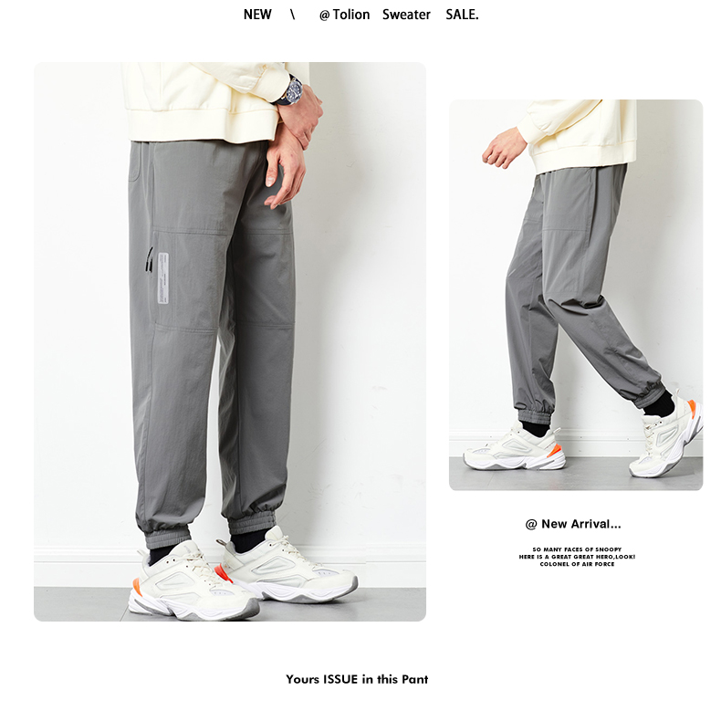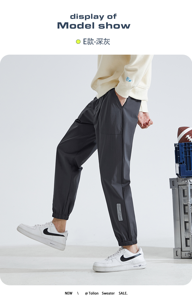 唐獅2022夏季新款休閒褲子男士束腳運動褲男速乾薄款韓版潮流寬鬆
