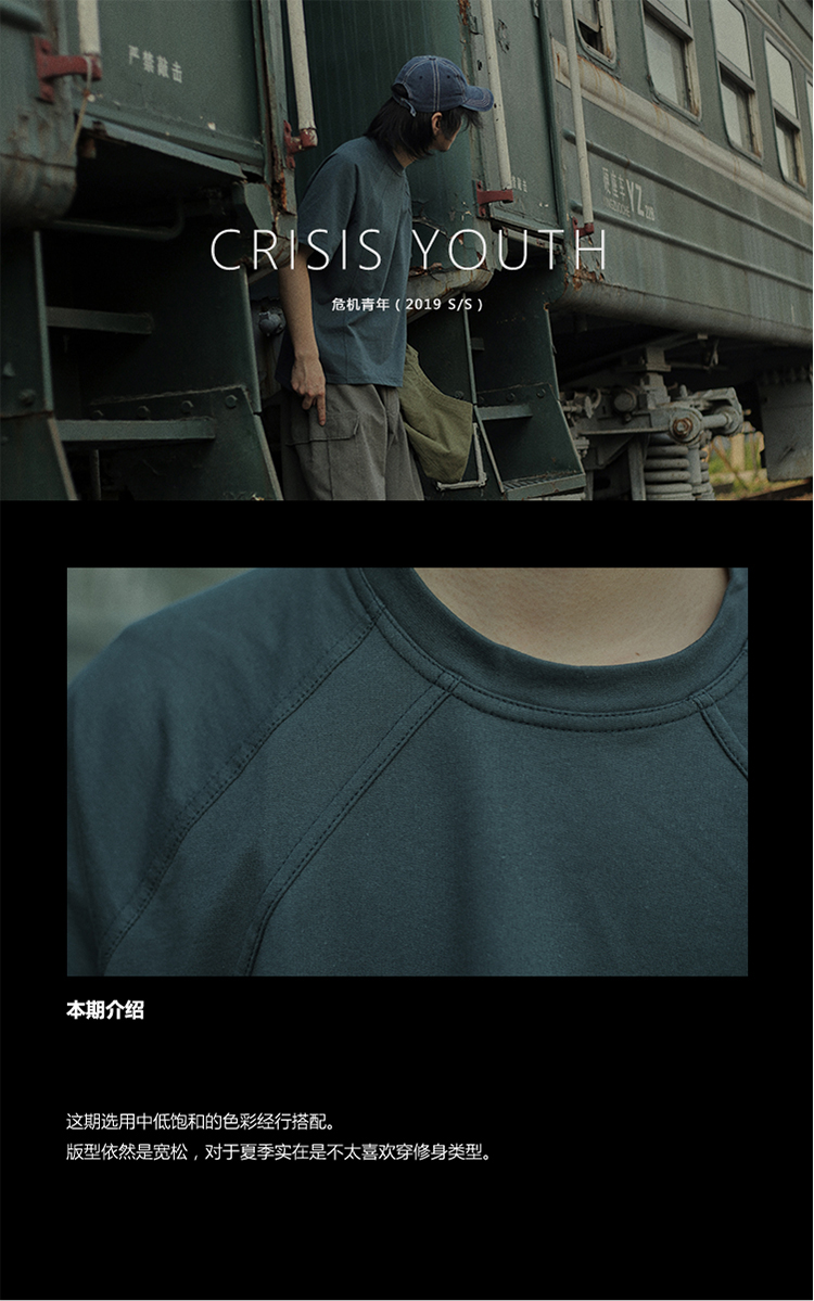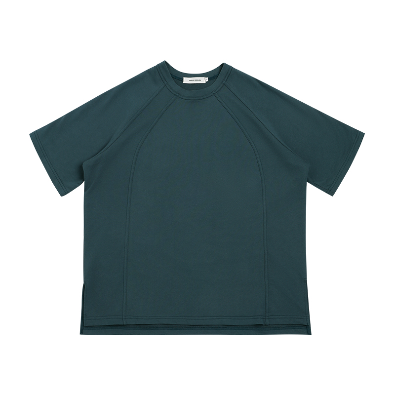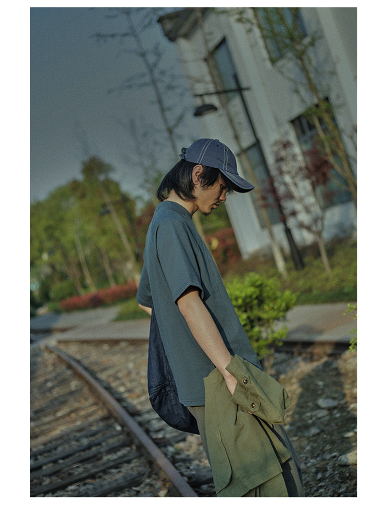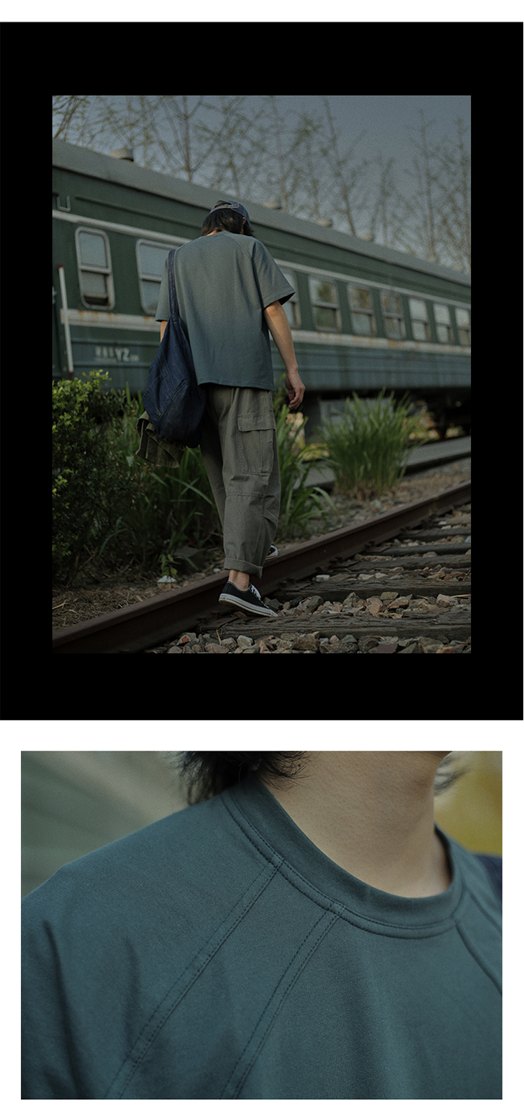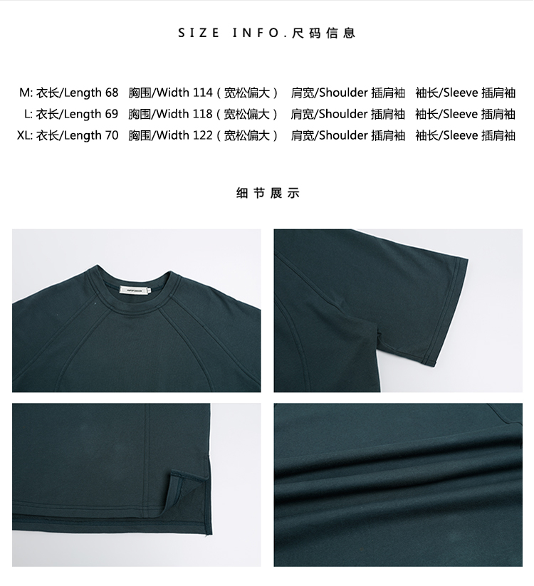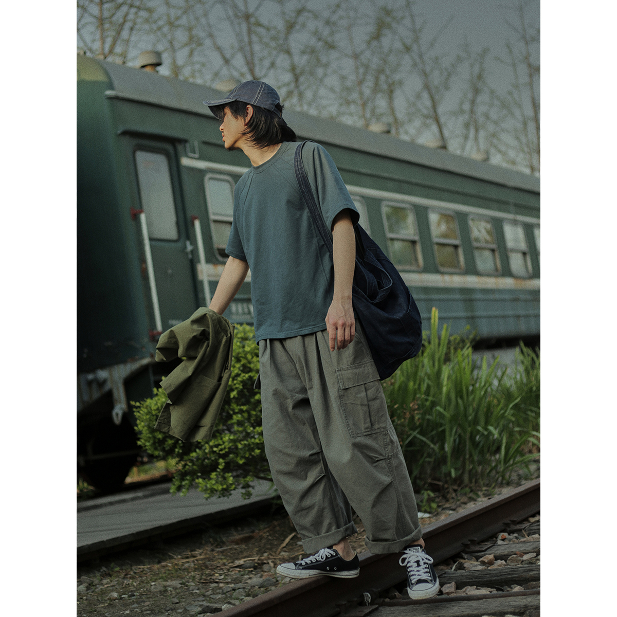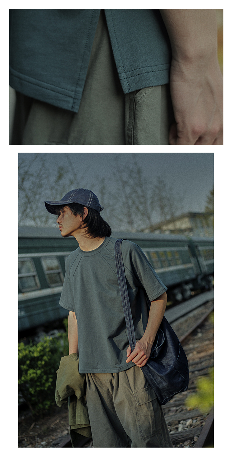 危機青年 復古藍綠色寬鬆短袖T恤男簡約純色夏季日系基礎款半袖潮