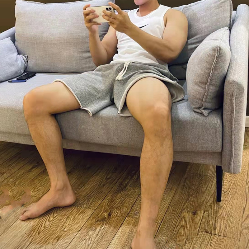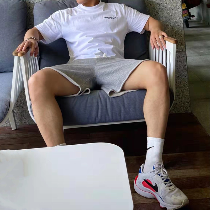 男士夏季日系純色毛圈短褲運動休閒街舞五分五分褲跑步健身寬鬆衛褲