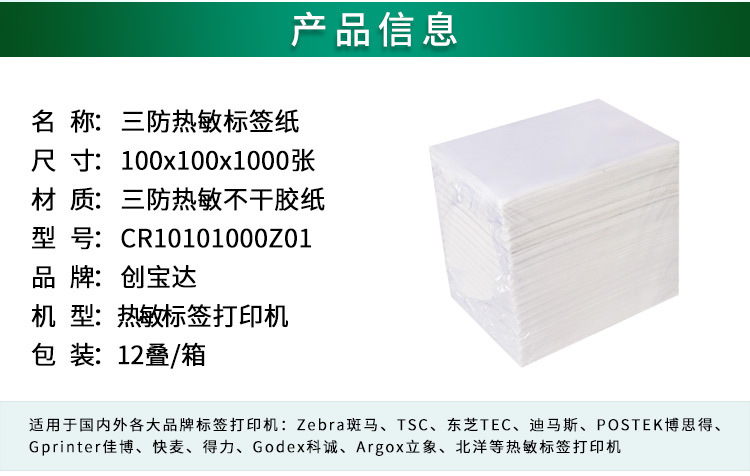 深圳创宝达科技有限公司主要生产:不干胶标签、热敏标签、热敏合成纸标签、铜板纸不干胶标签、PET合成纸标签、哑银龙标签、遇水变红标签、冷库冷链用耐低温冷库标签、防水标签、耐高温标签等,可生产卷装、单张、折叠等以满足国内外客户的不同设备需求。