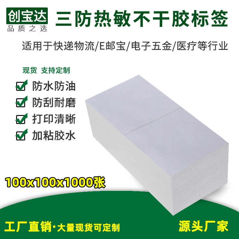 e邮宝 三防热敏标签纸100x100x1000叠装 加粘不干胶 邮政物流标签