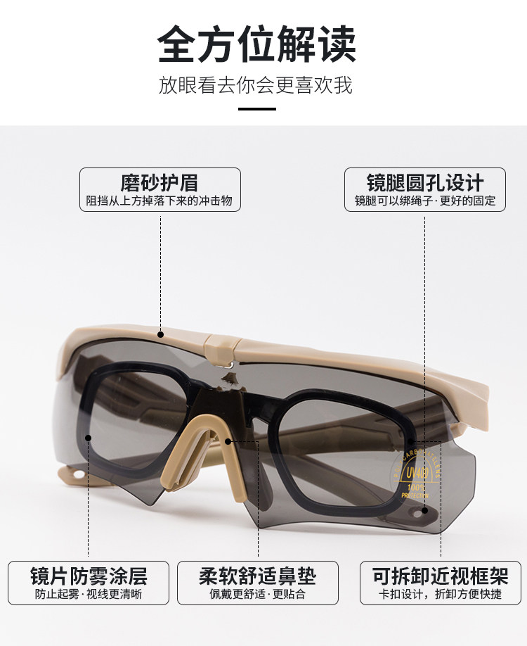 軍迷戶外真人CS射擊眼鏡偏光戰術護目鏡近視防霧防爆防風騎行護目鏡