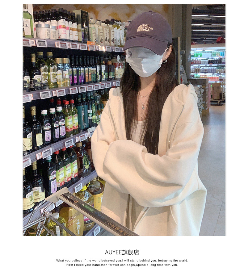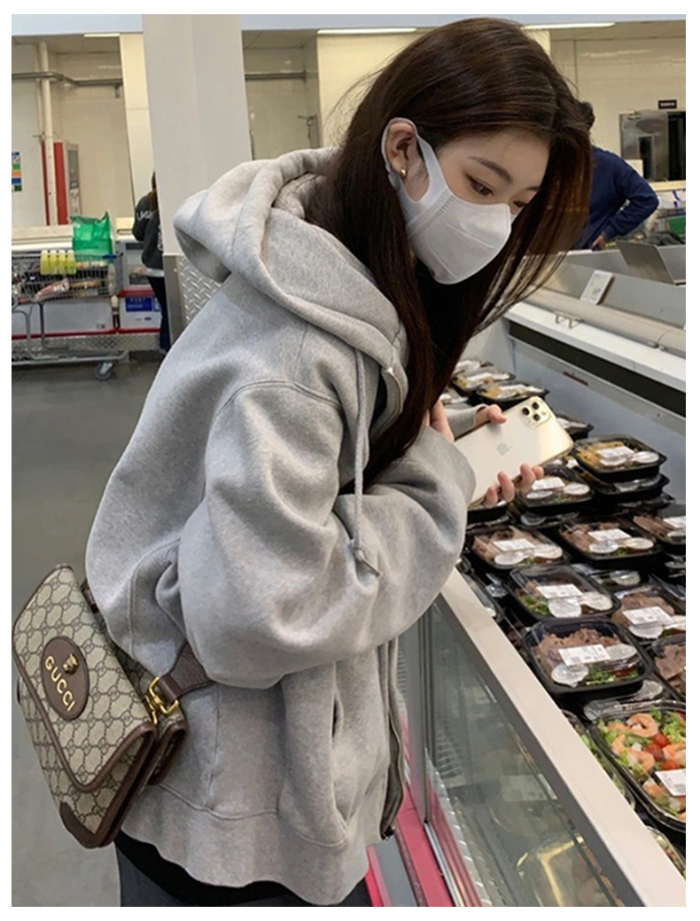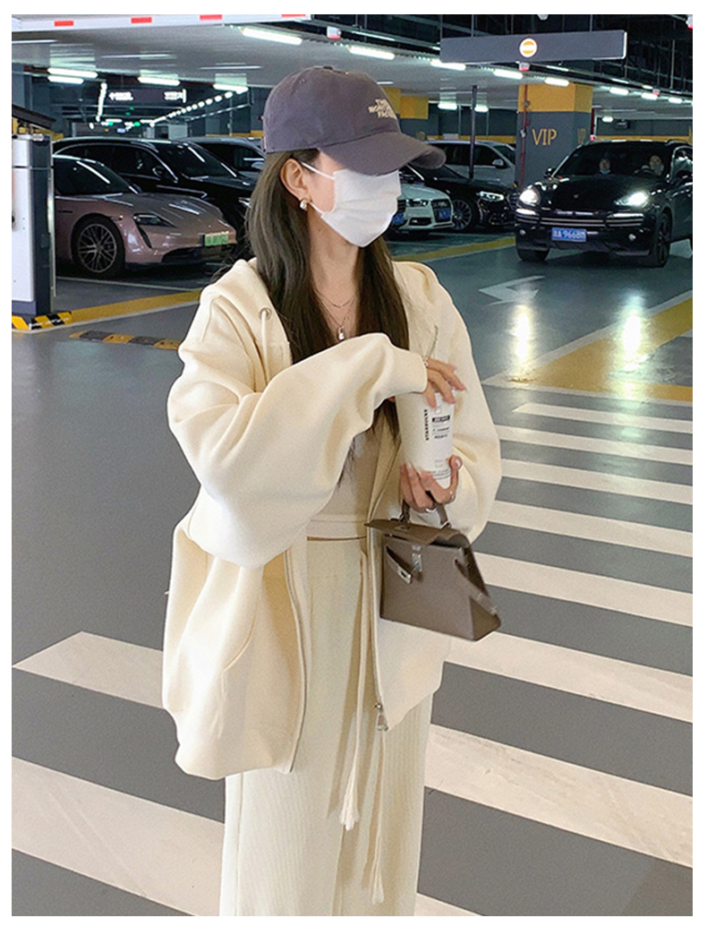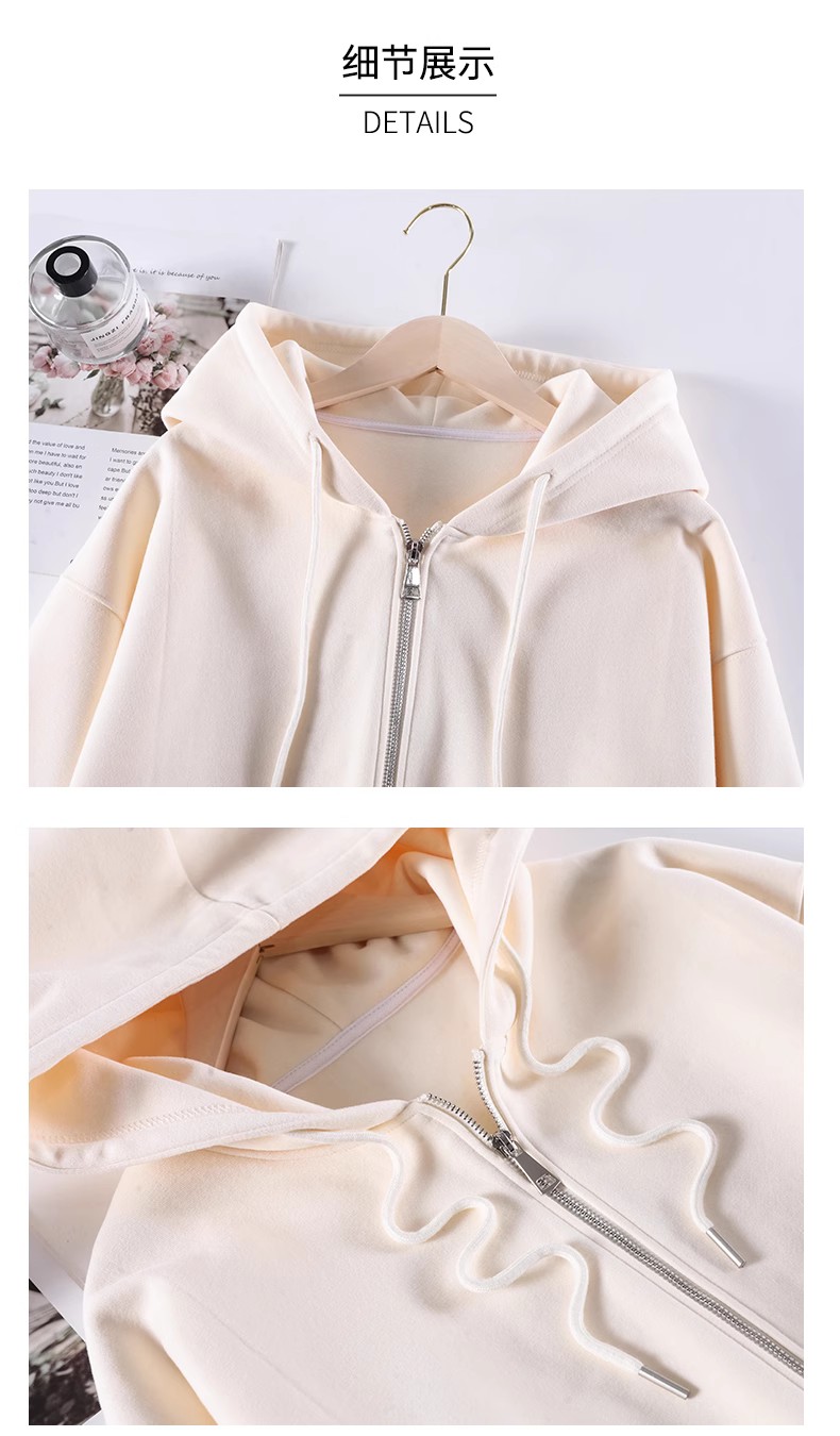 2023新款爆款衛衣女春秋款奶白色拉鍊開衫連帽秋冬季加絨運動外套