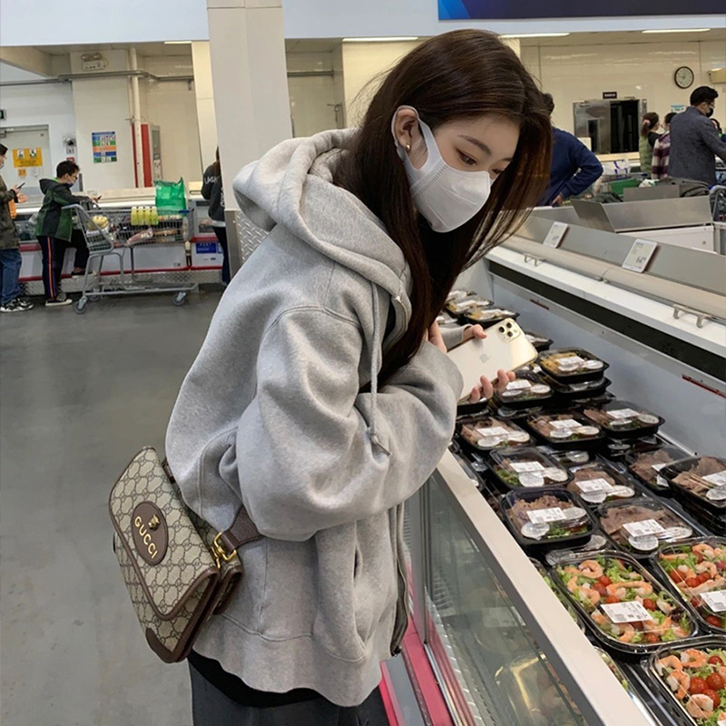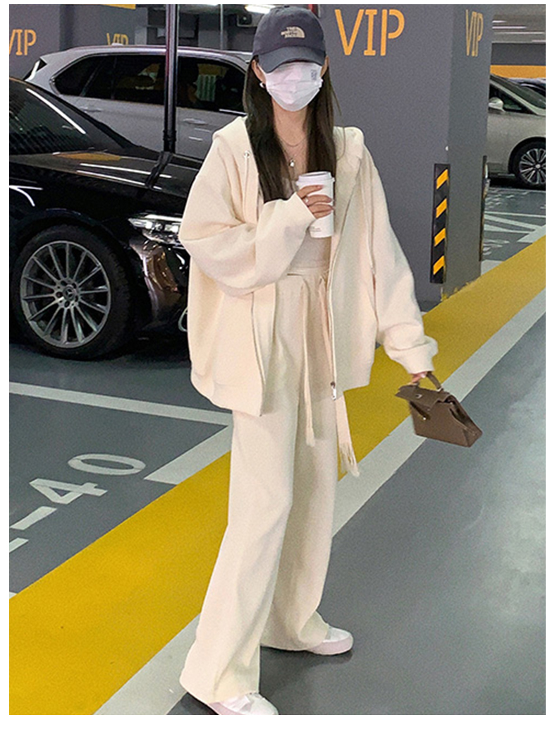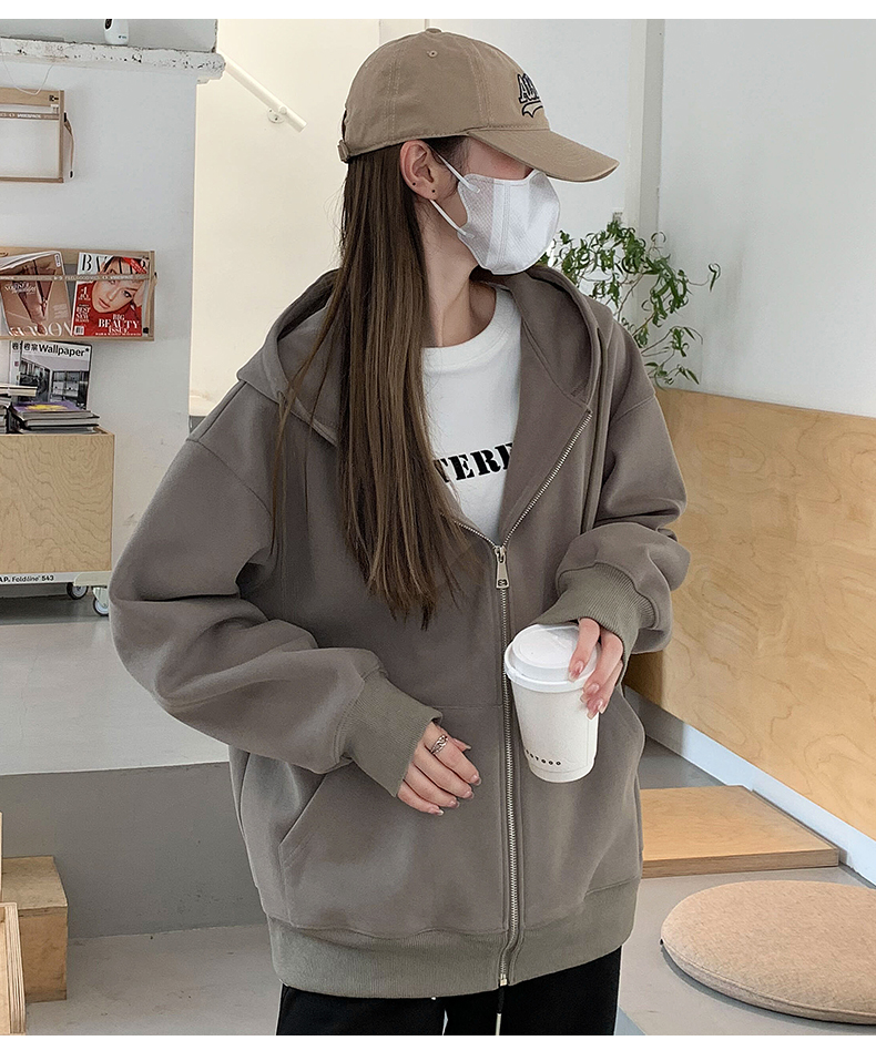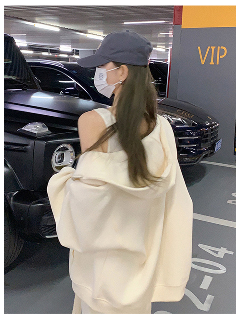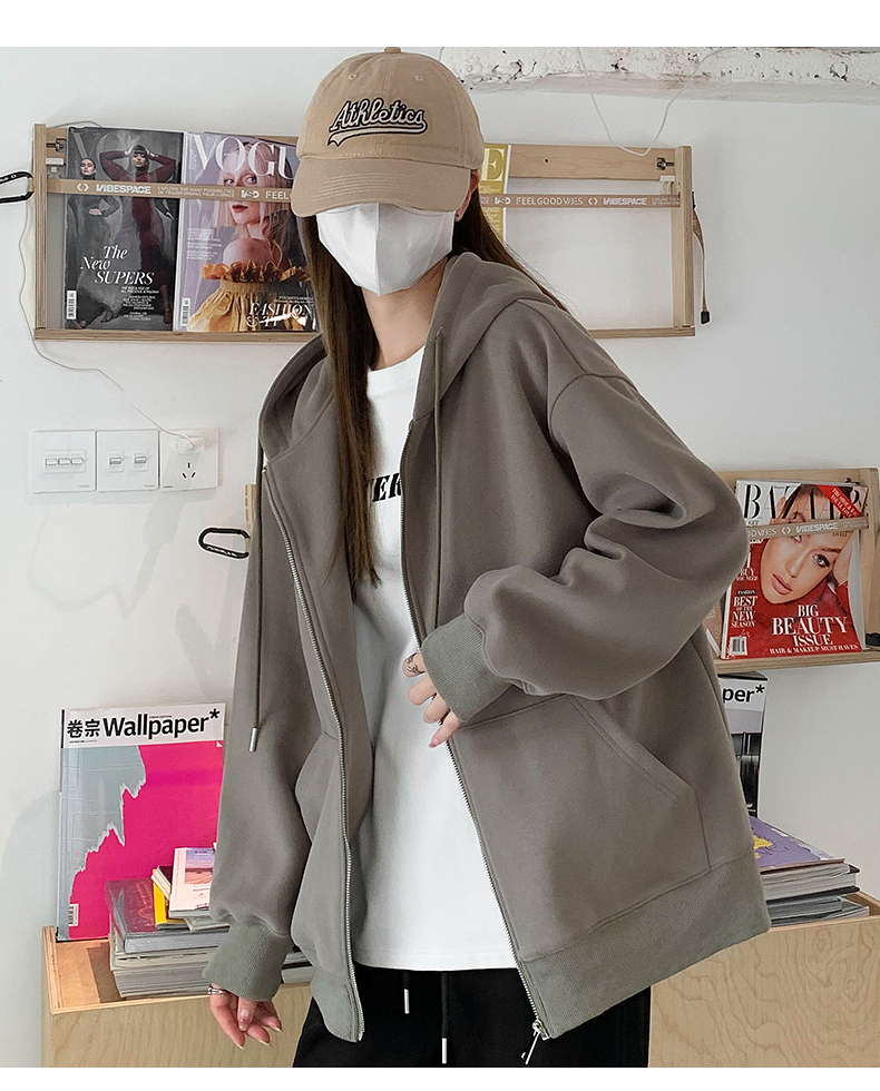 2023新款爆款衛衣女春秋款奶白色拉鍊開衫連帽秋冬季加絨運動外套