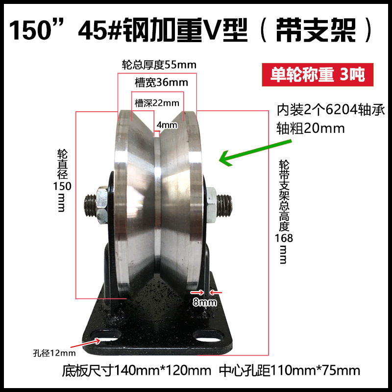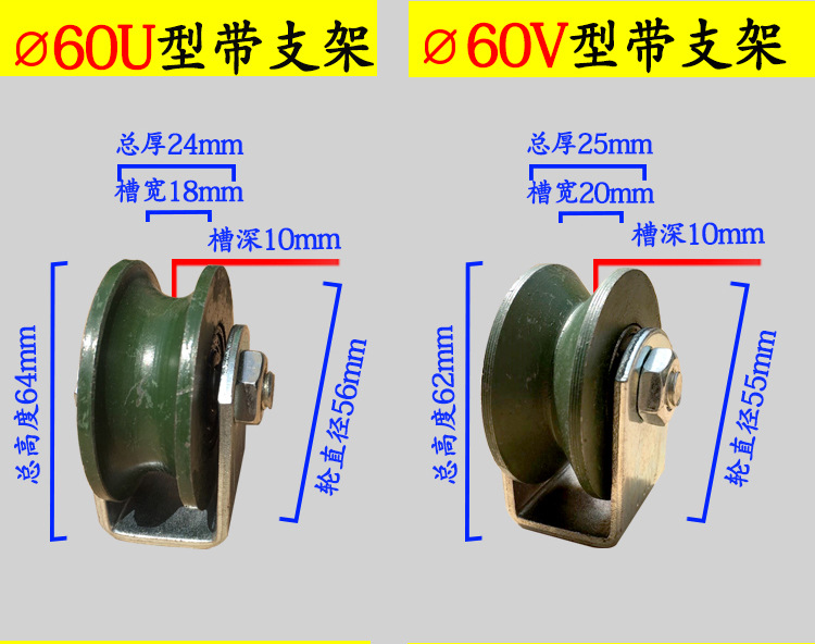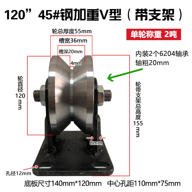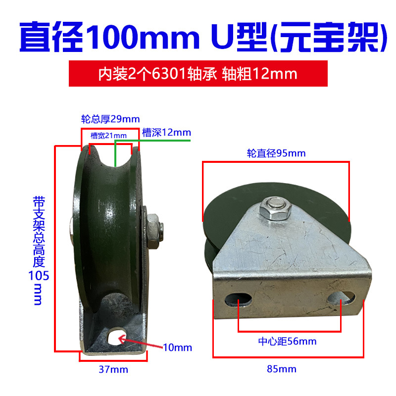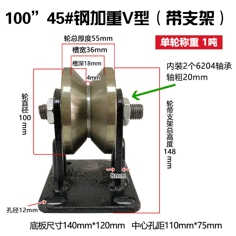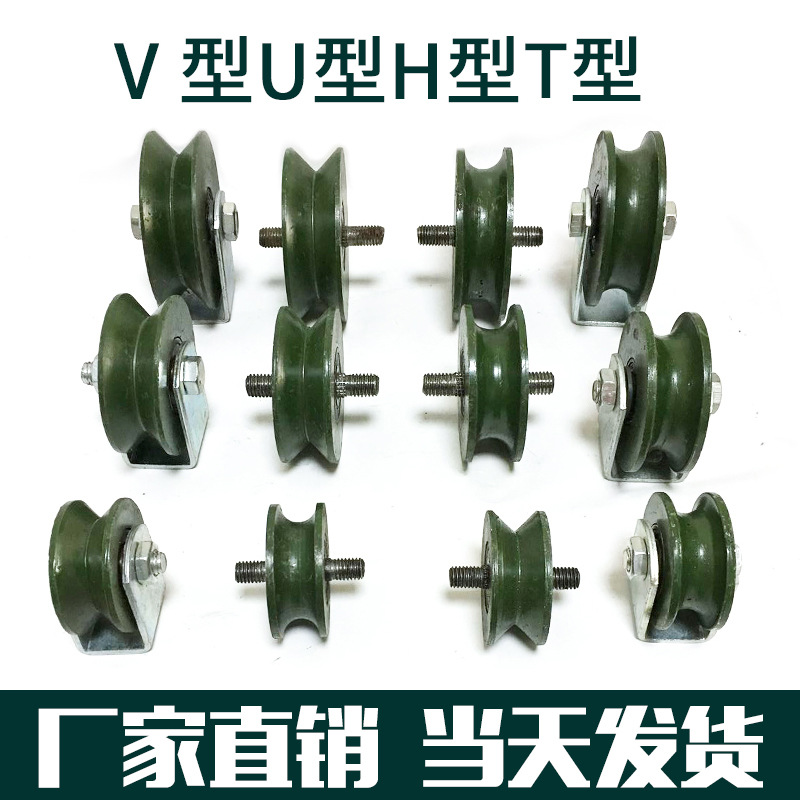 轨道轮子V型U型重型单侧轮防锈彩钢H型加厚槽轮大门滑轮铁轨道芝