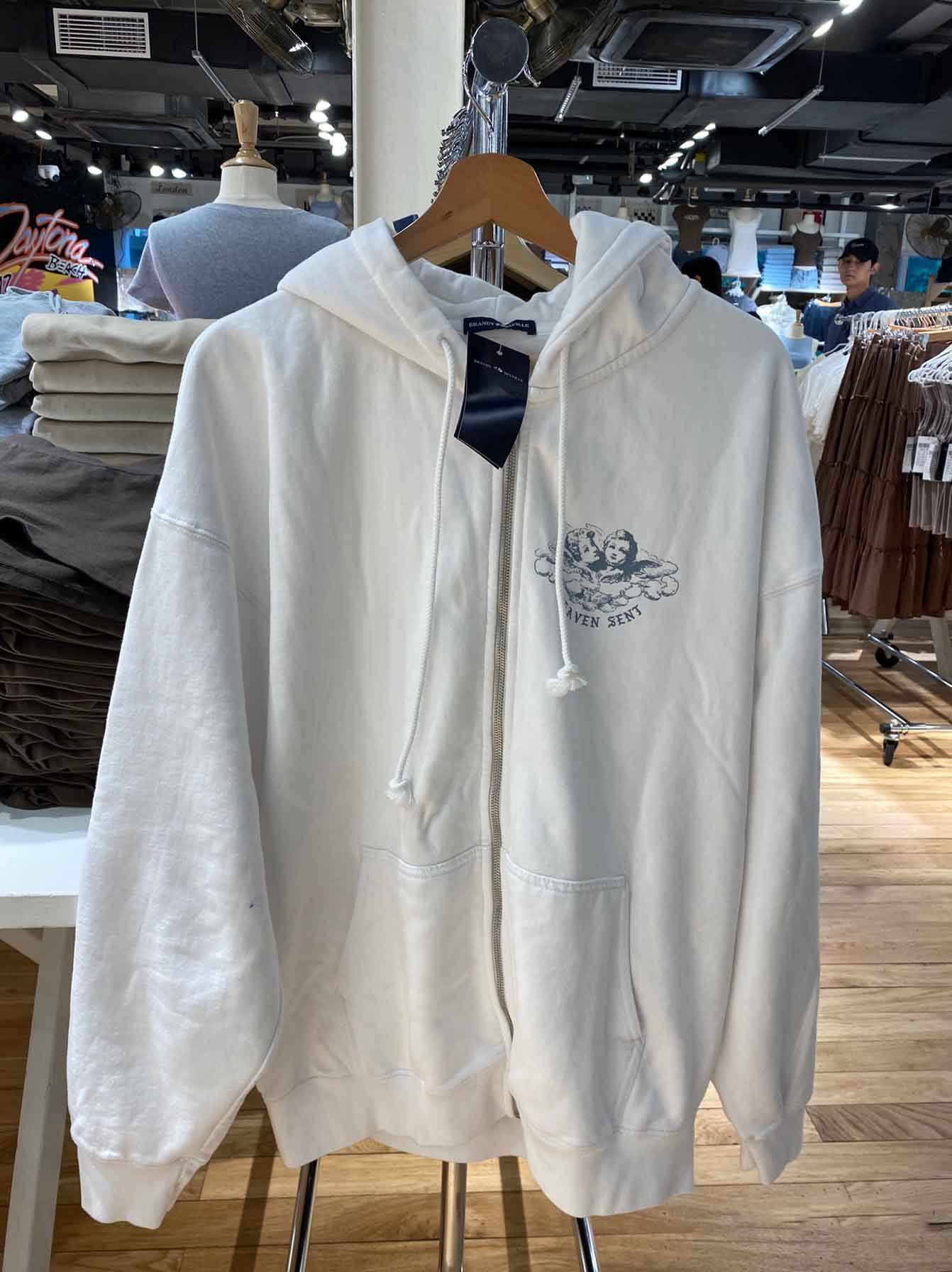 BM官網新款美式復古小天使印花圖案拉鍊寬鬆bm連帽運動衫開衫外套女