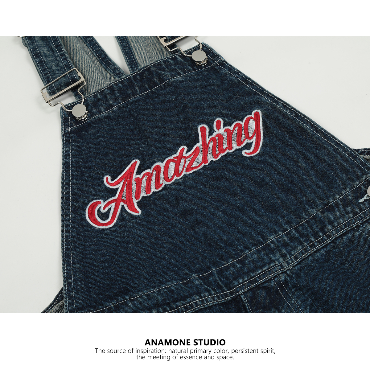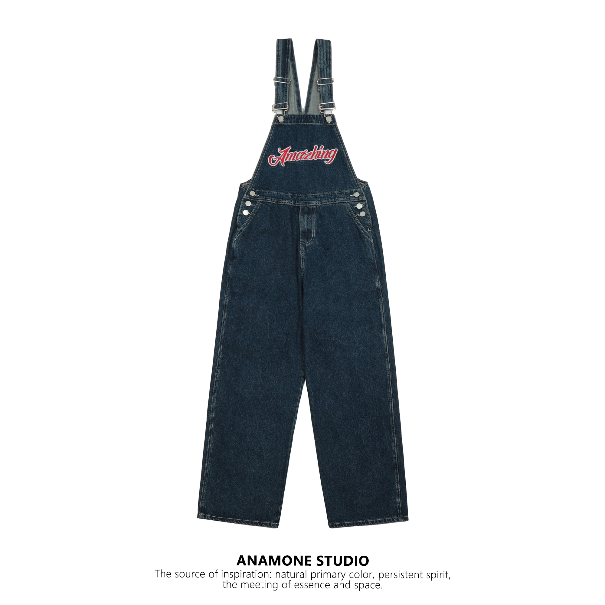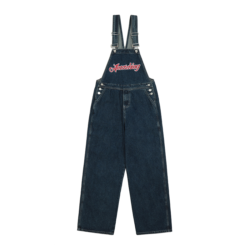 藍色復古工裝抱嬰袋褲女夏季新款小個子連身直筒寬鬆炸街闊腿牛仔褲
