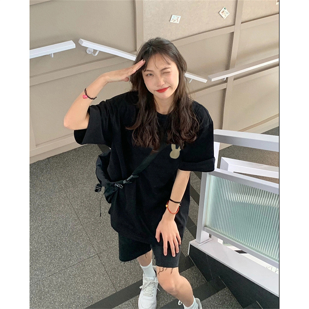黑色短袖T恤女夏季新款小眾設計感復古美式甜辣上衣正肩純棉半袖