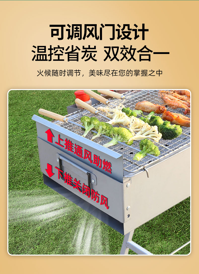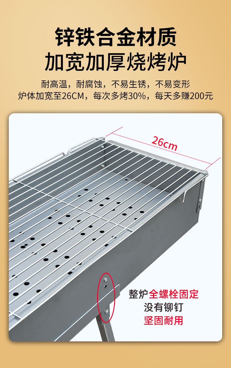 蝶烤香加厚燒烤架26寬戶外商用擺攤碳烤爐烤魚爐烤串爐摺疊燒烤爐