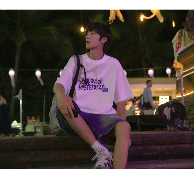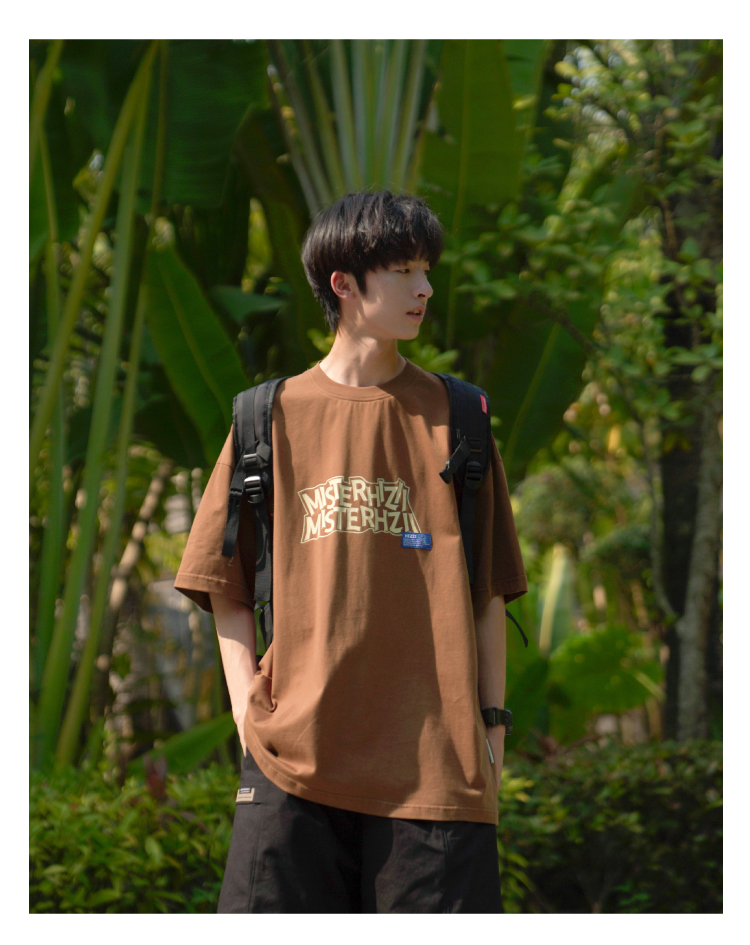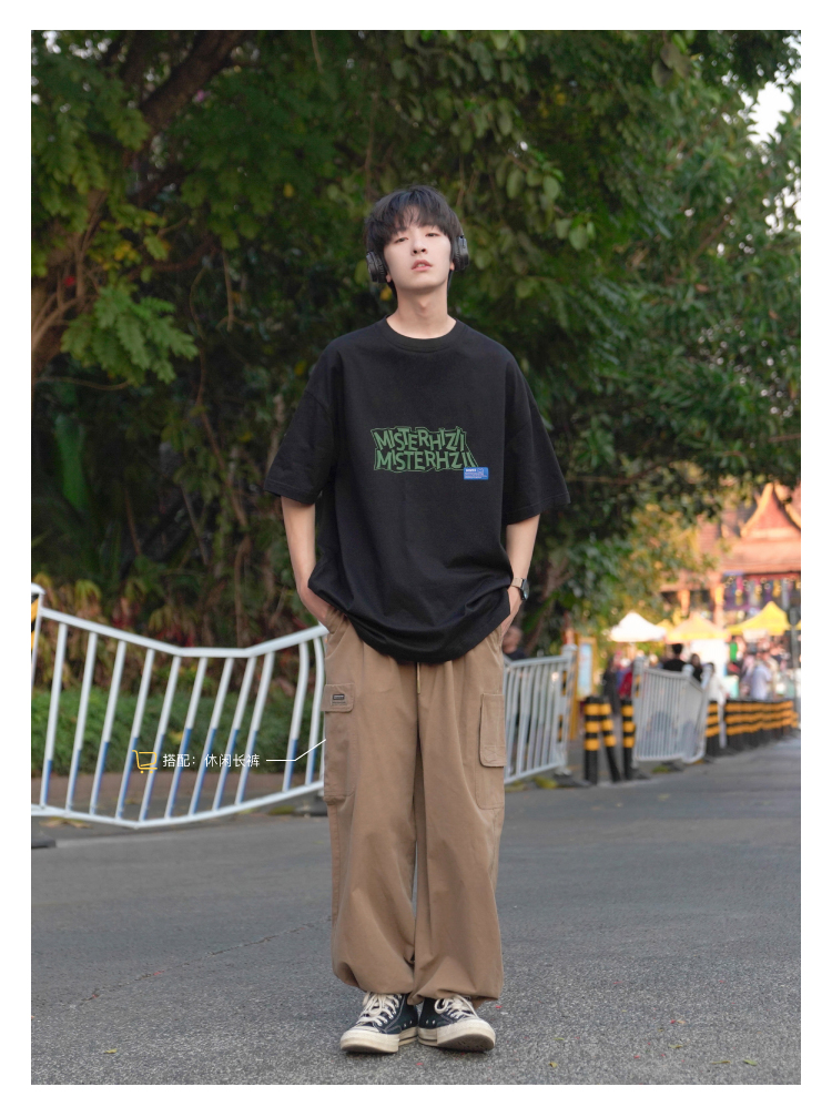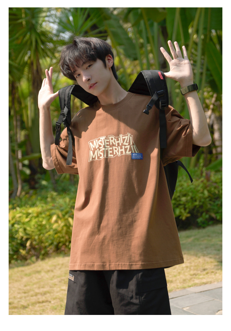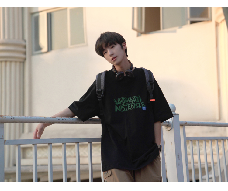E禾子先生夏裝原創男短袖T恤270g字母印花落肩半袖學生寬鬆T恤潮
