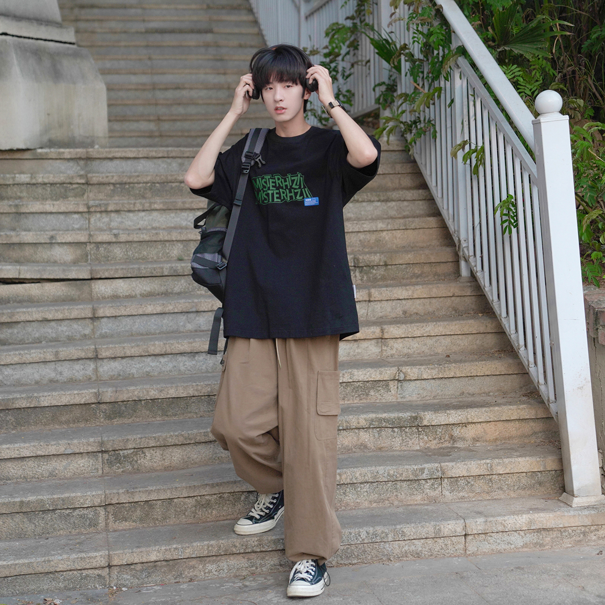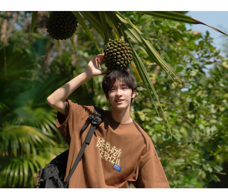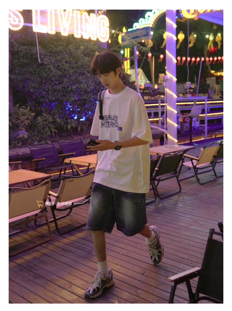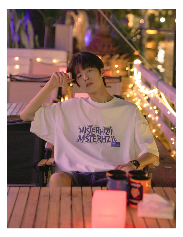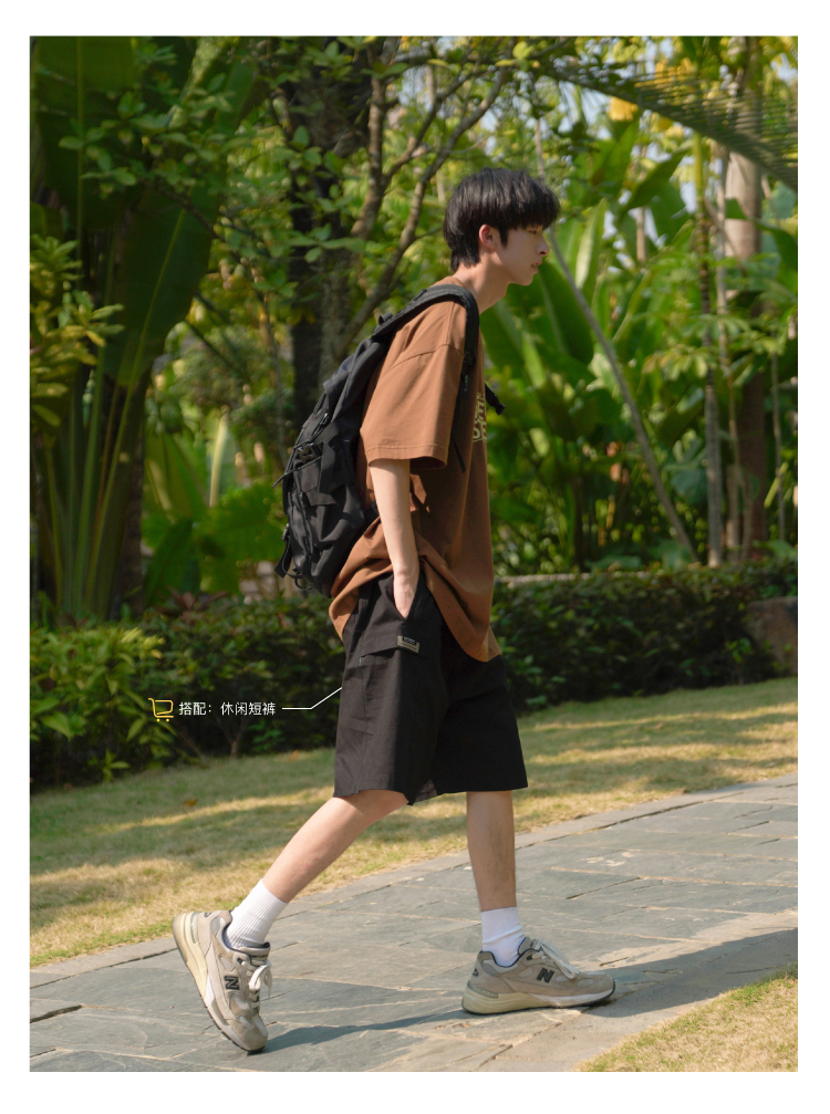 E禾子先生夏裝原創男短袖T恤270g字母印花落肩半袖學生寬鬆T恤潮