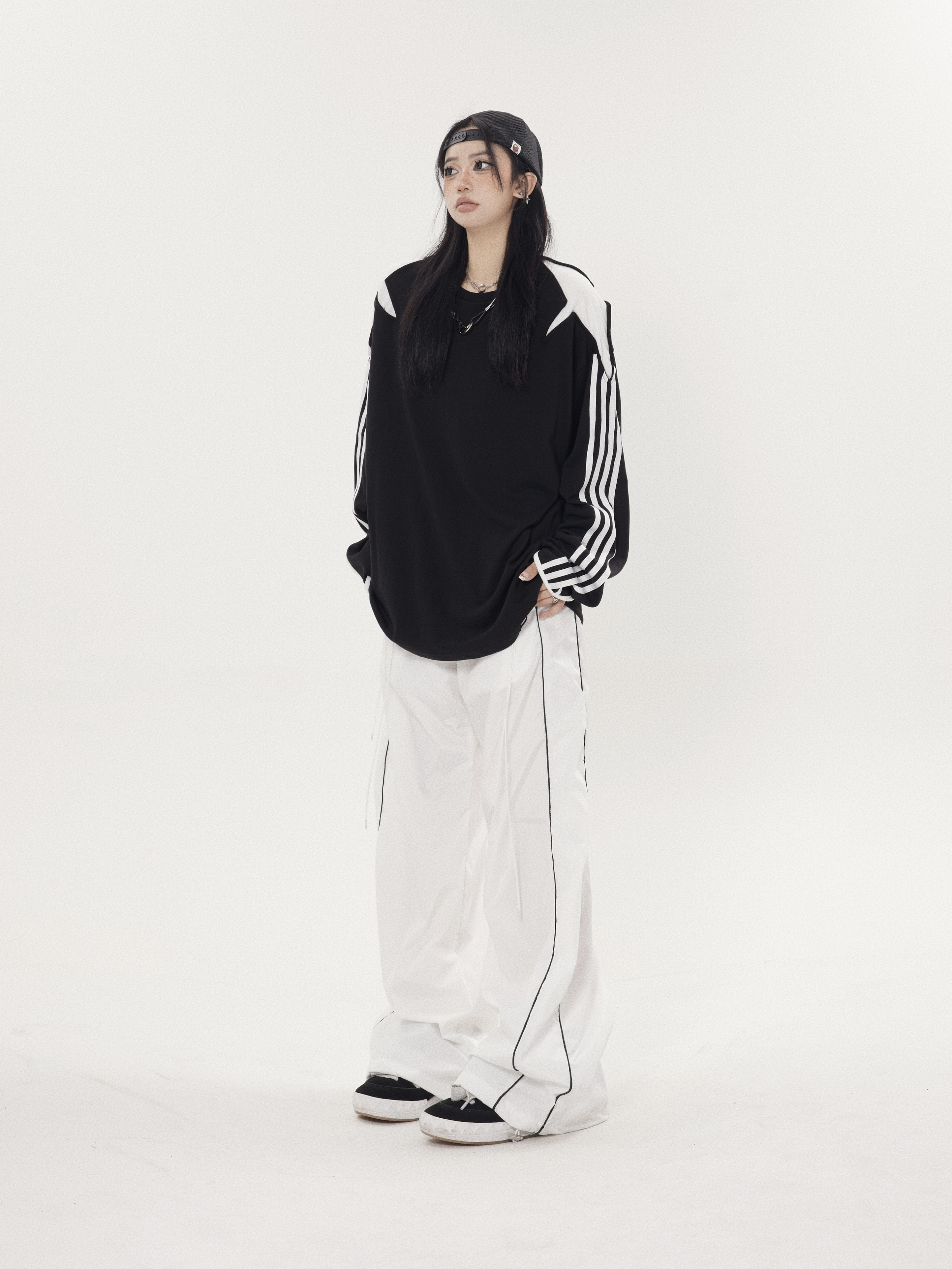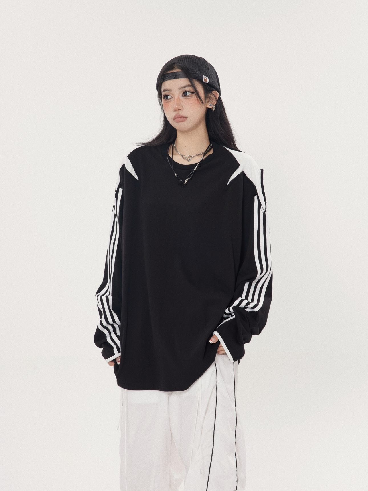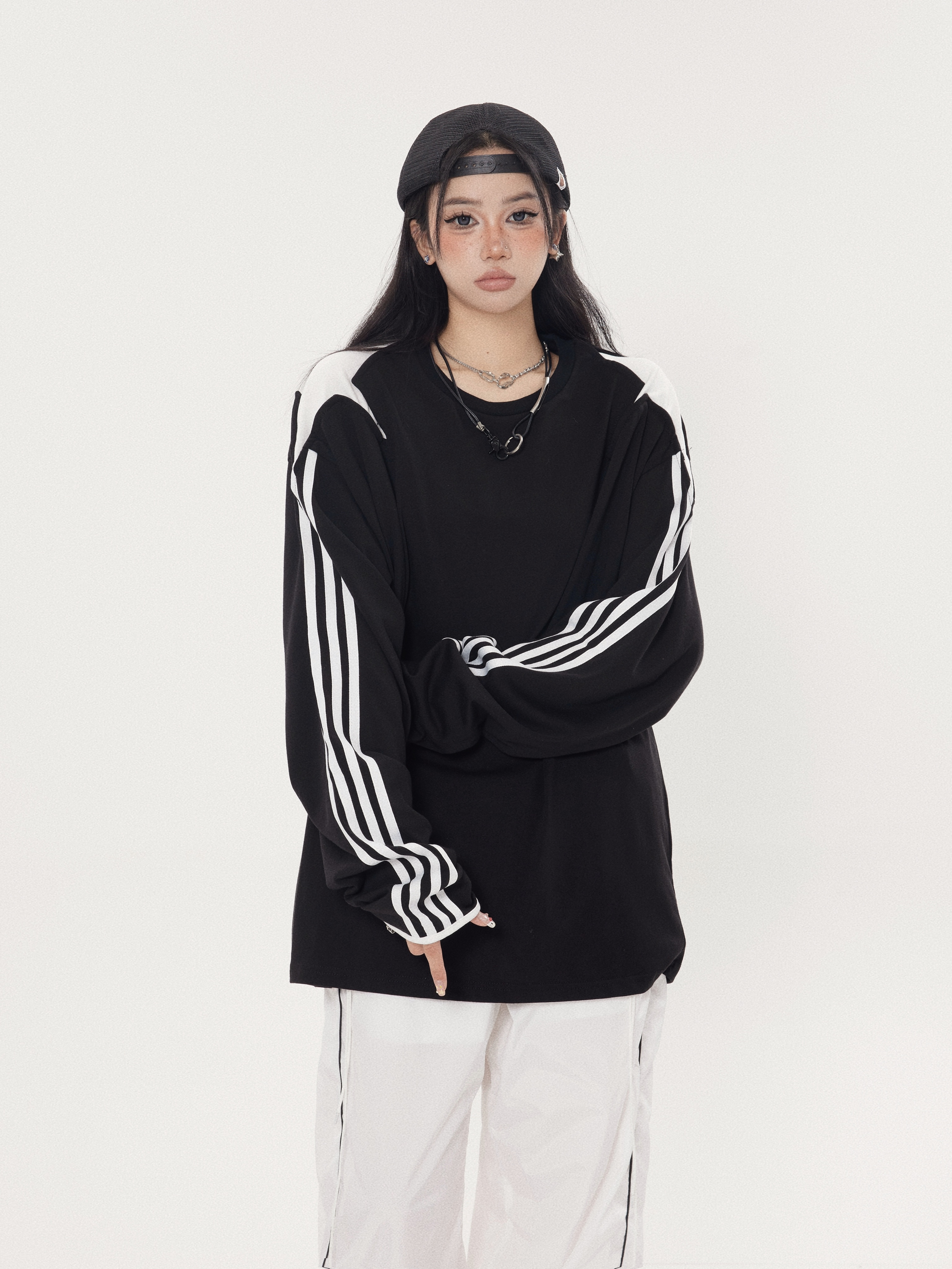 珍珍很懶 小眾星星三條槓拼接設計感長袖內搭衣先鋒圓領厚棉T