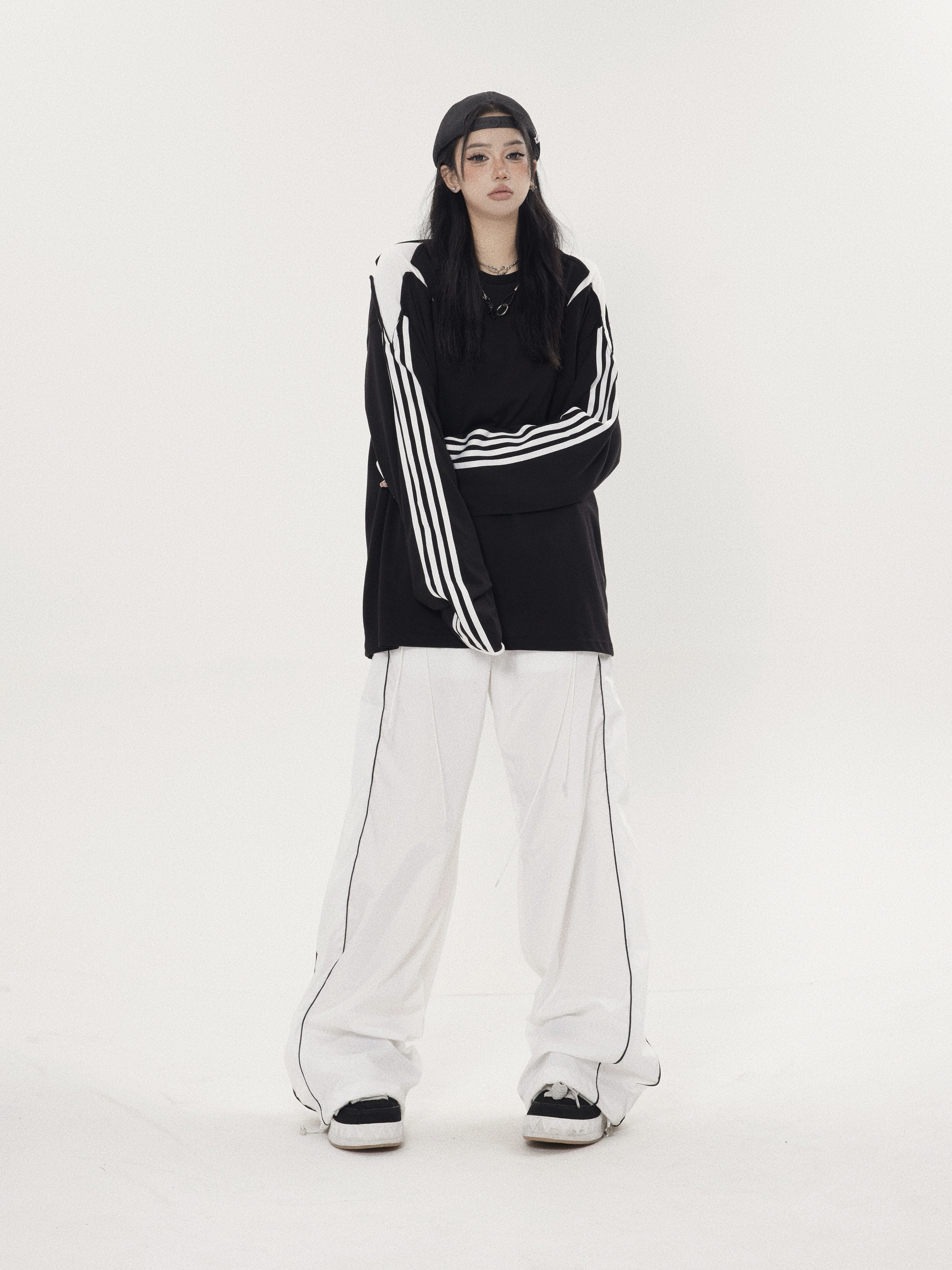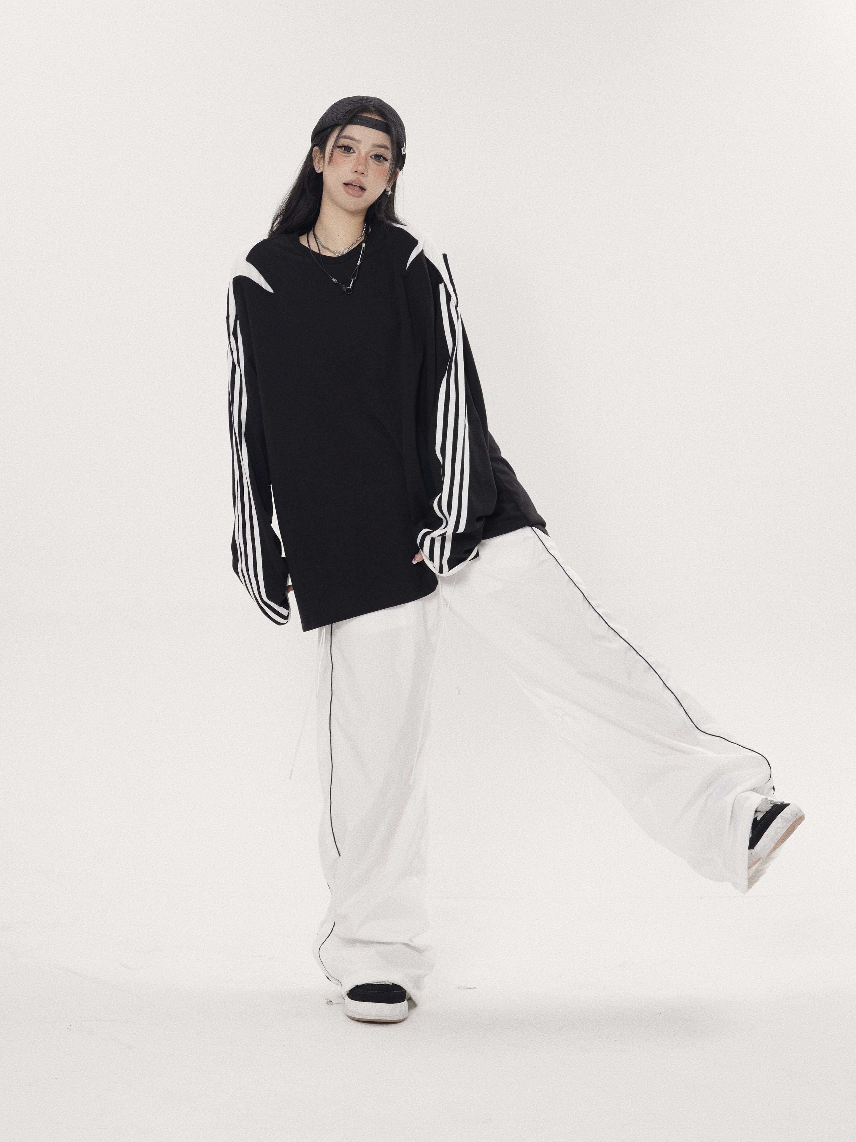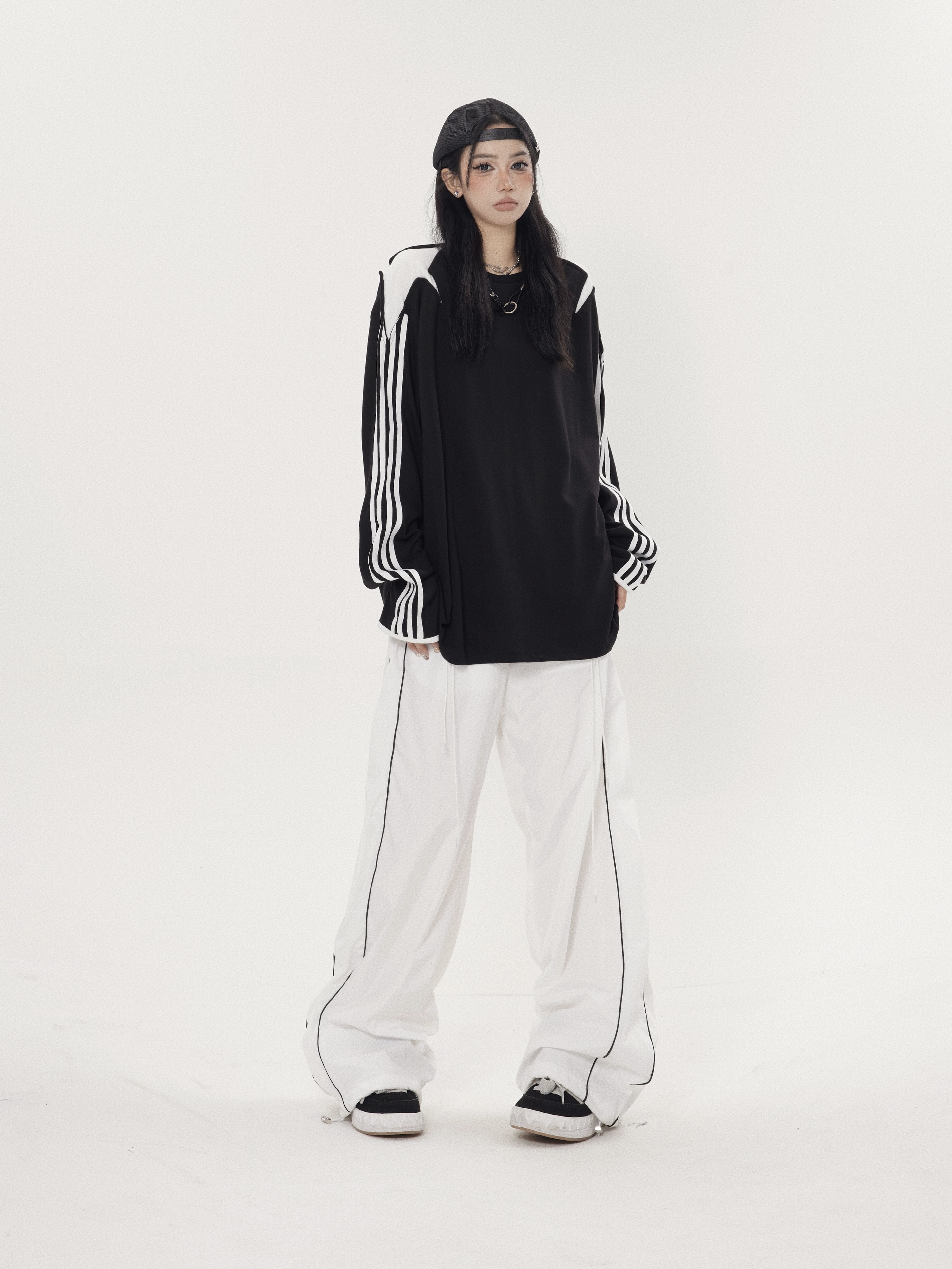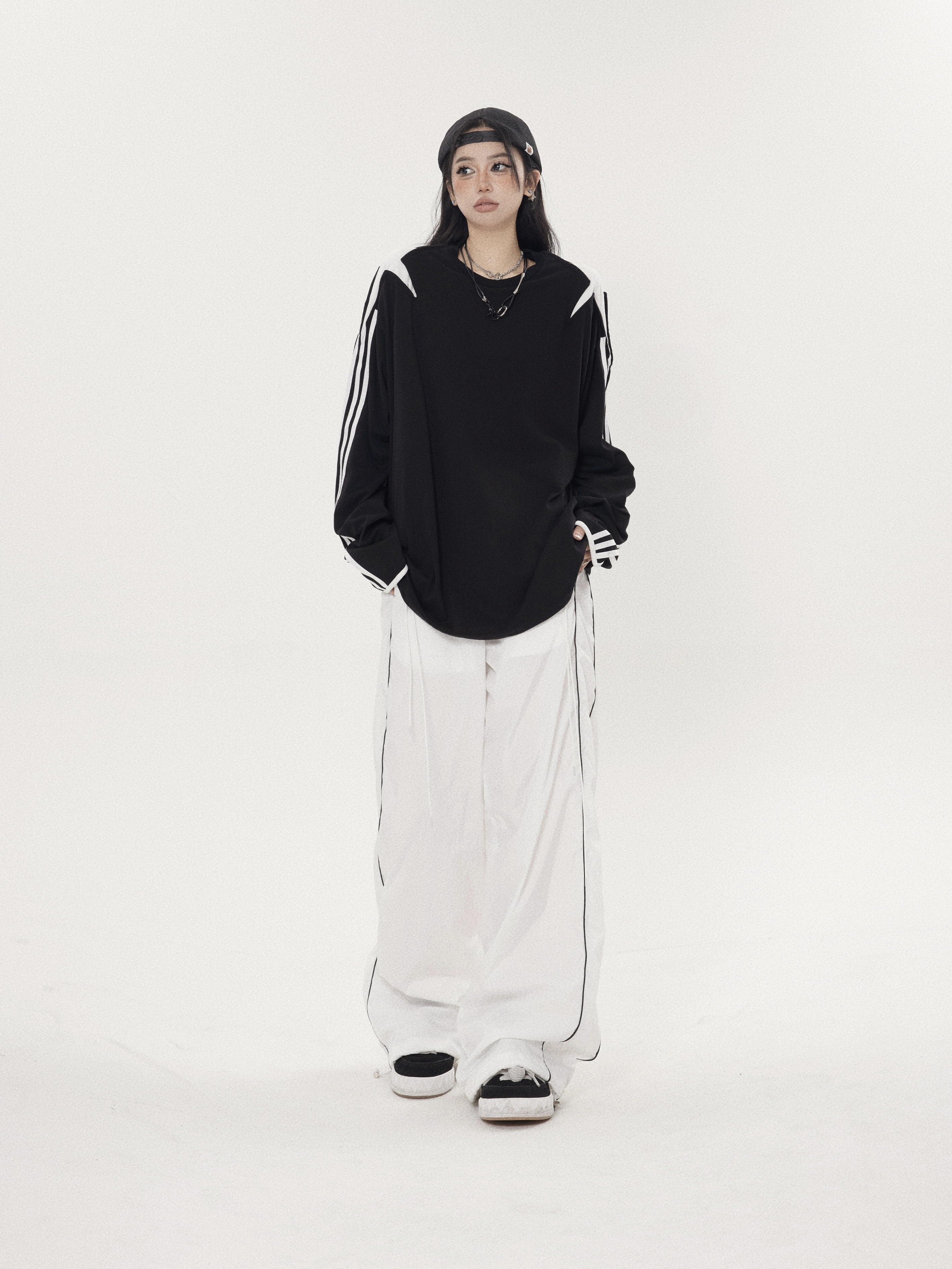 珍珍很懶 小眾星星三條槓拼接設計感長袖內搭衣先鋒圓領厚棉T