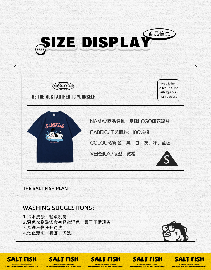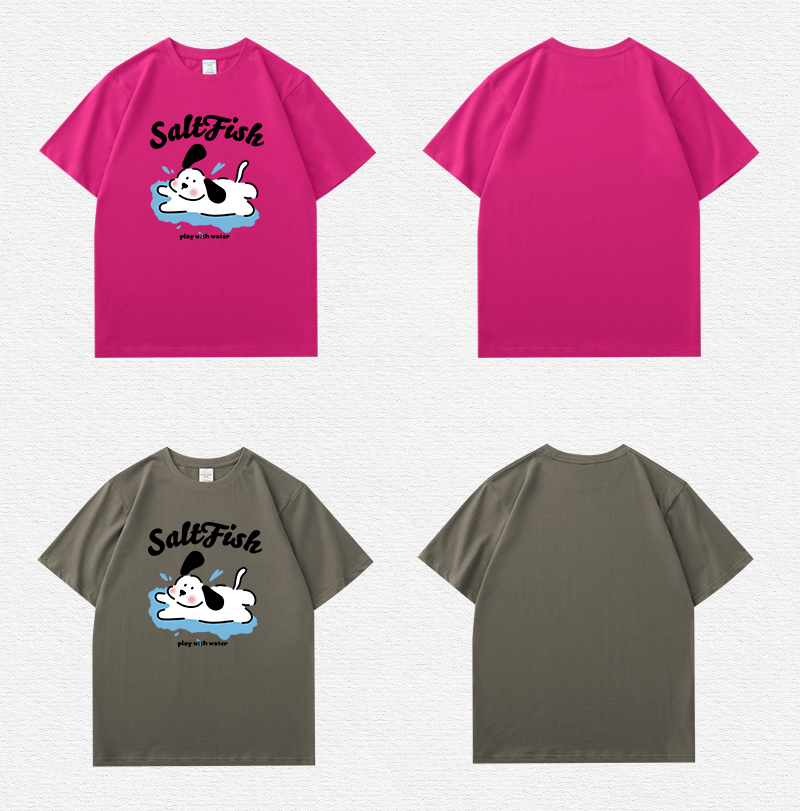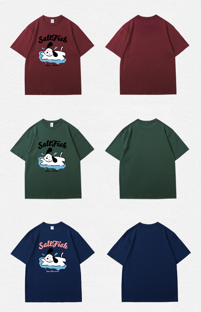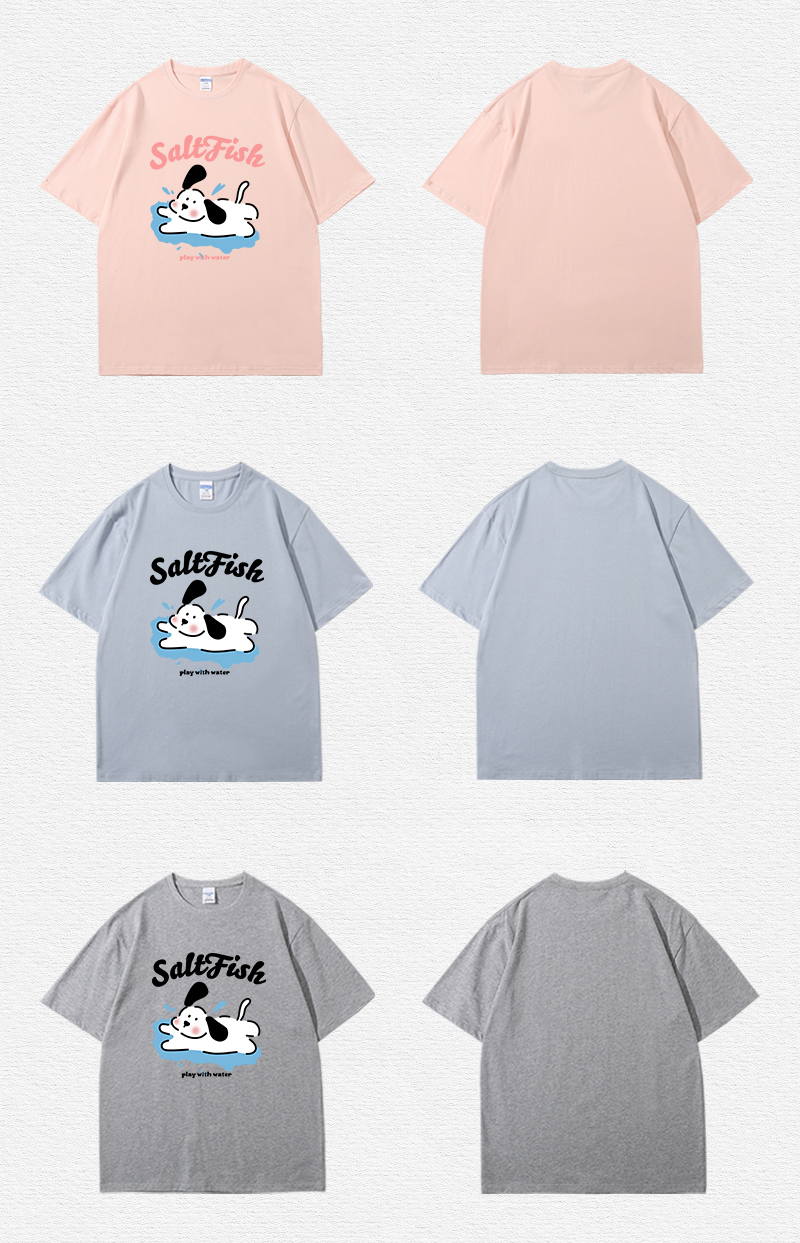 SALT玩水小狗印花短袖藏青色T恤女夏季卡通ins風寬鬆休閒情侶上衣