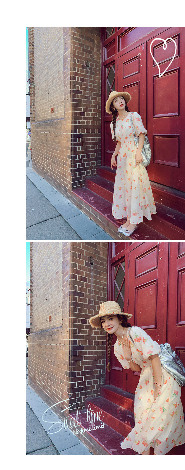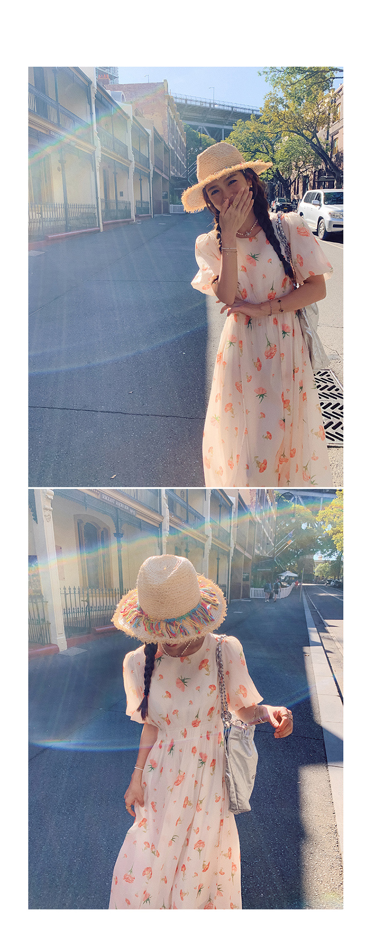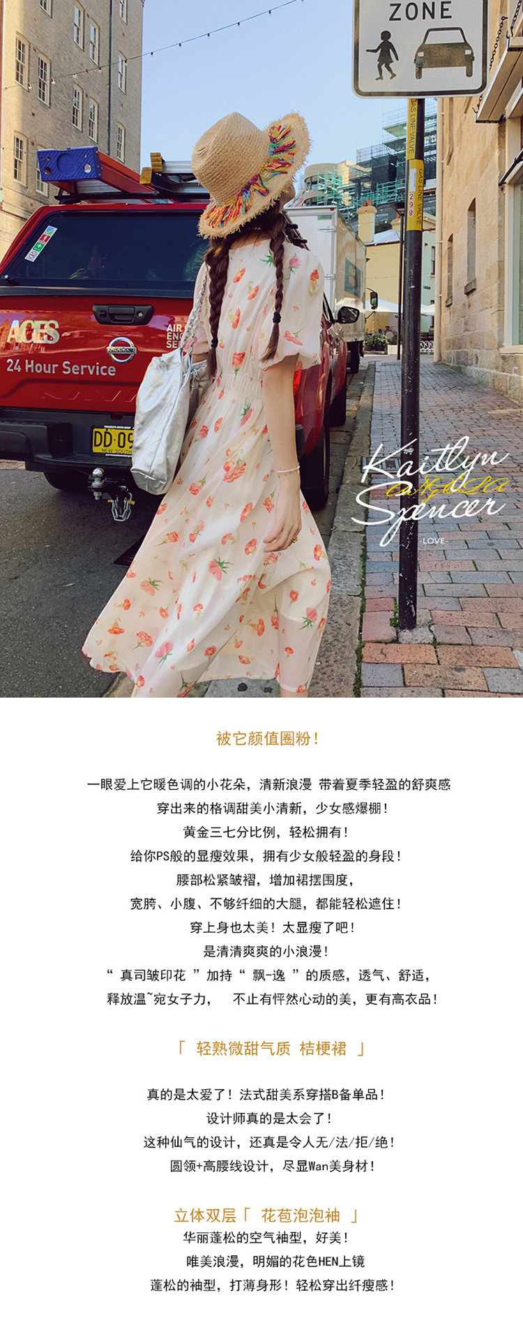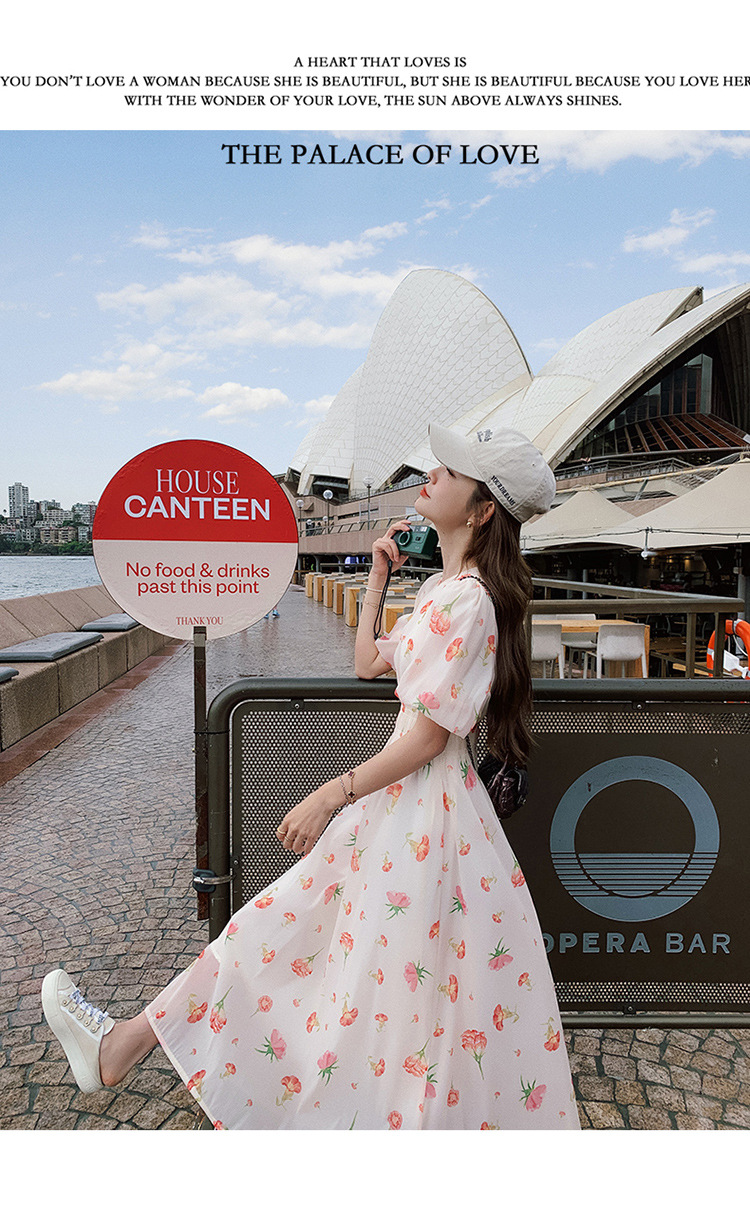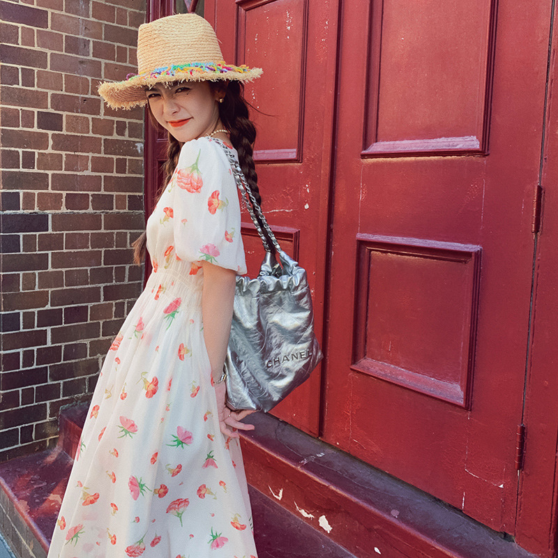 实拍法式茶歇碎花连衣裙女夏季小个子森系超仙收腰显瘦长裙跨境
