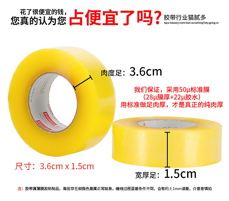 这款胶带是足宽3.6cm,肉厚1.5cm(手工测量,会有±0.1cm左右误差)