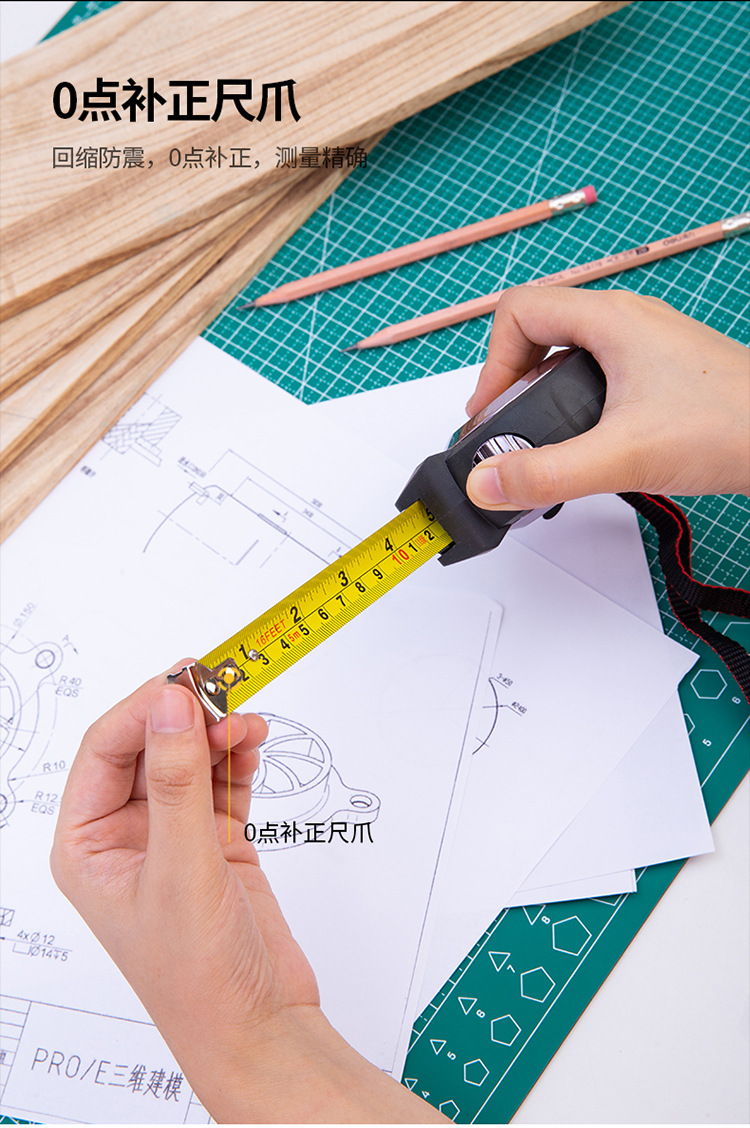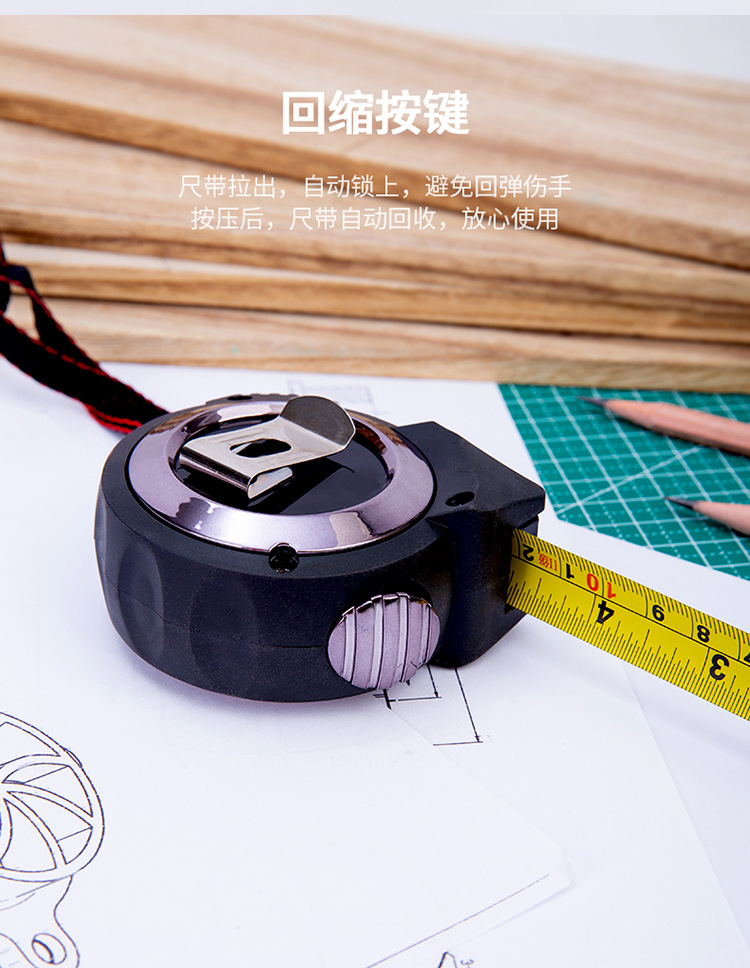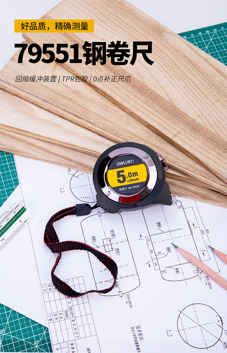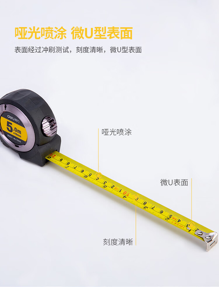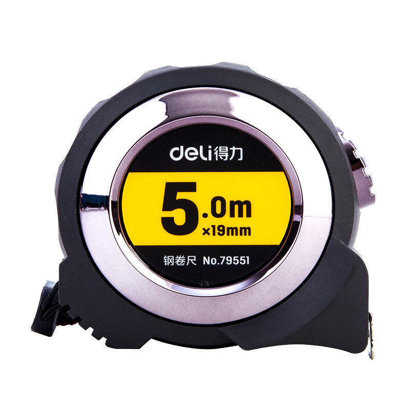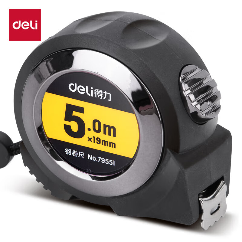 得力(deli)5m全包胶自锁钢卷尺 精准测量便携尺子 办公 黑色79551