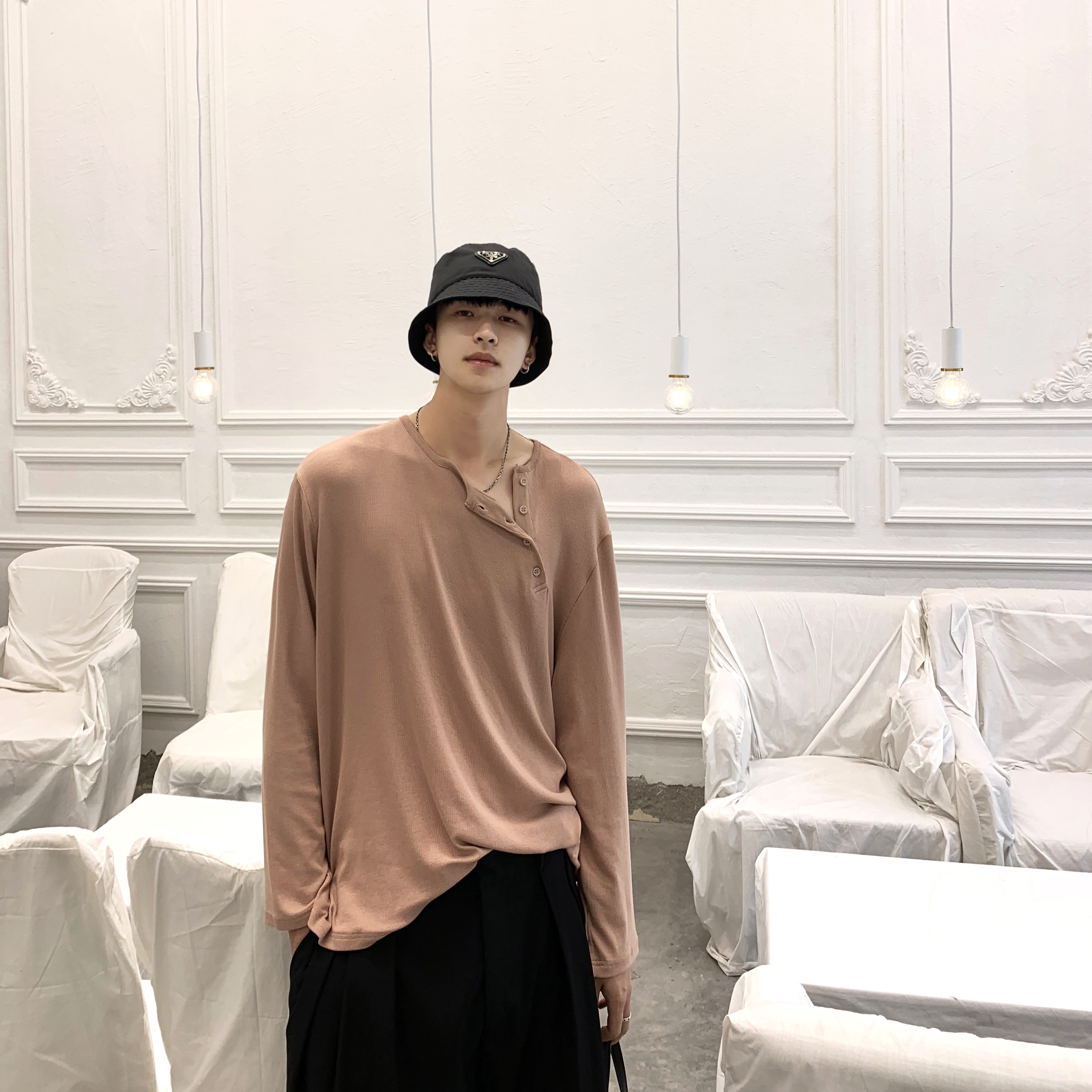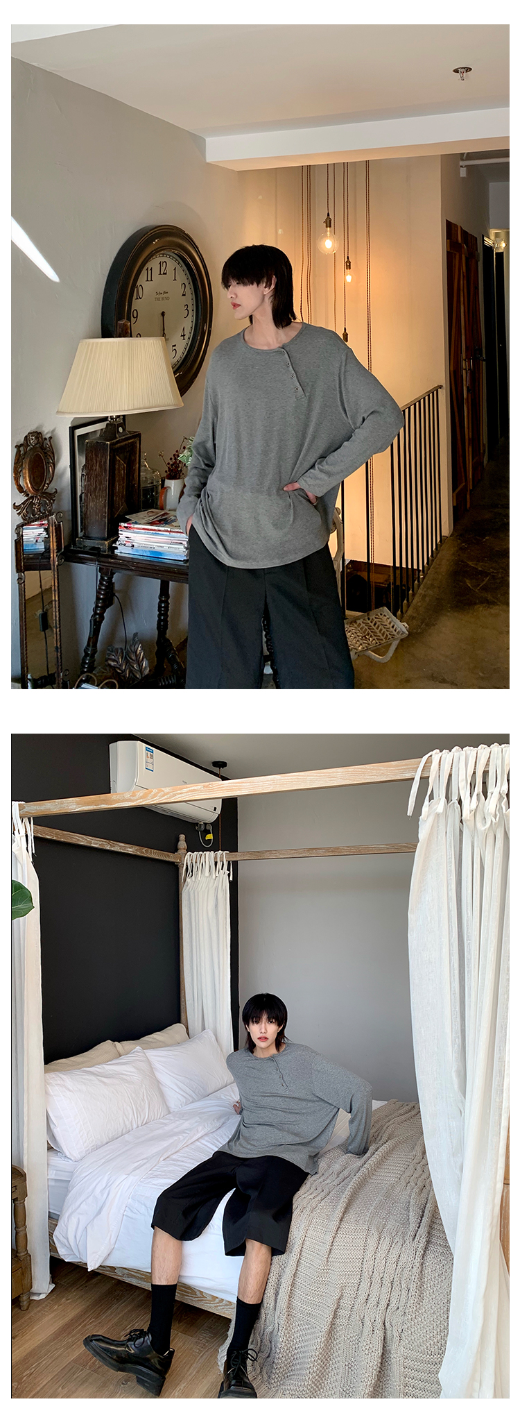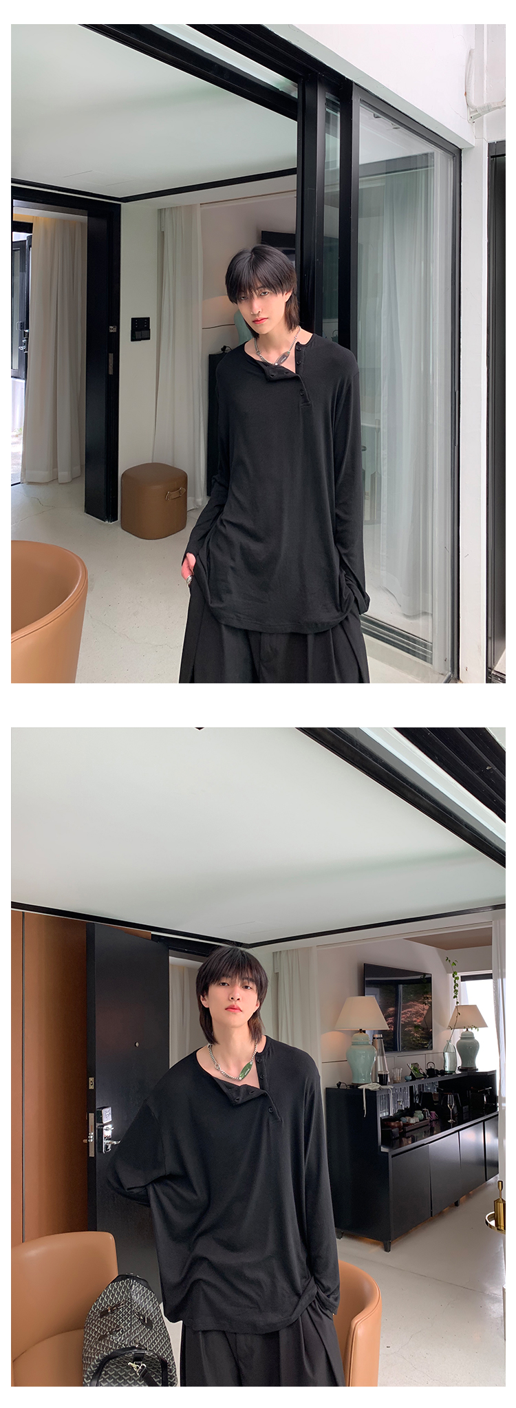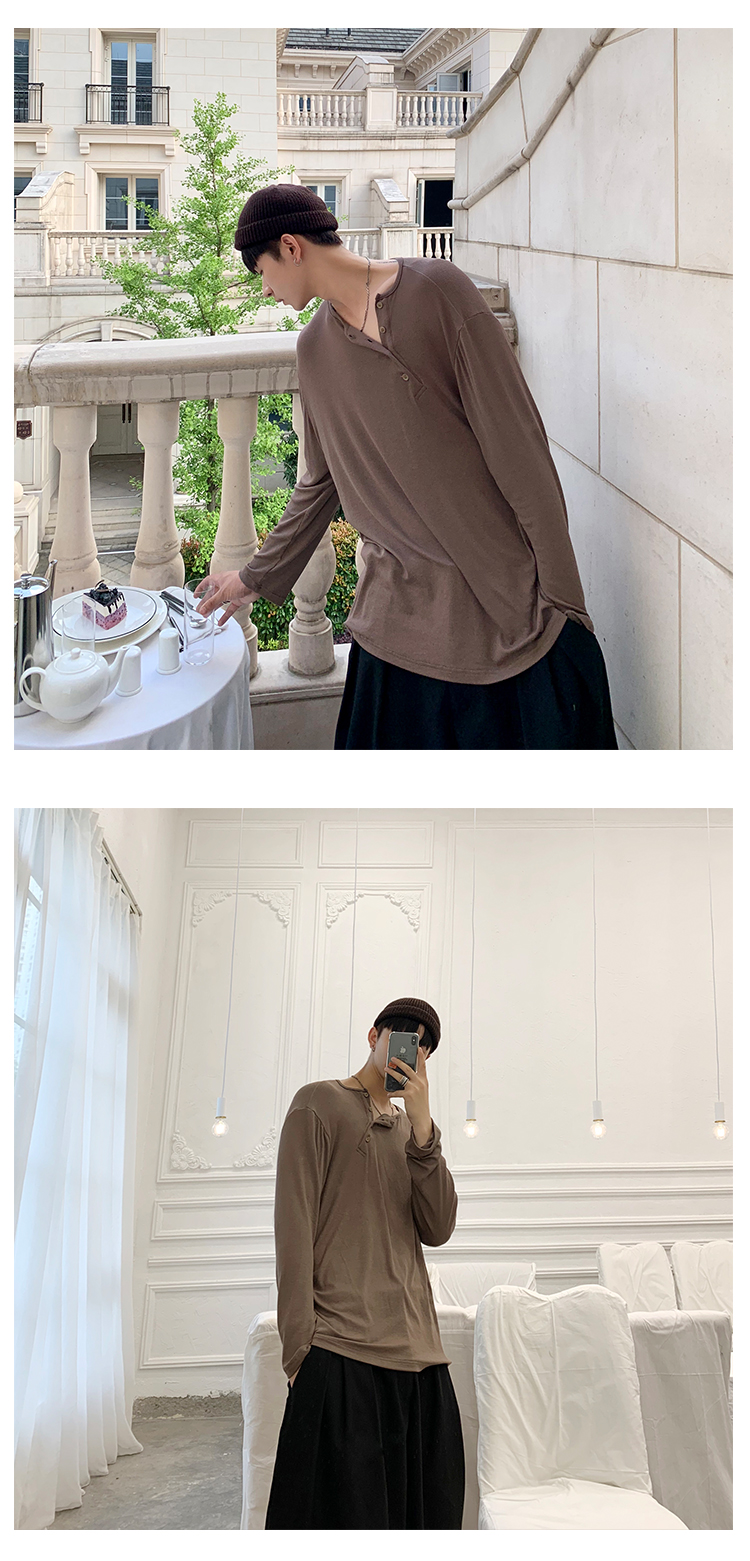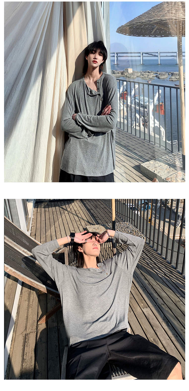 ESC MAN STUDIO/自制oversize寬鬆套頭長袖T恤衫斜開領滿滿高級感