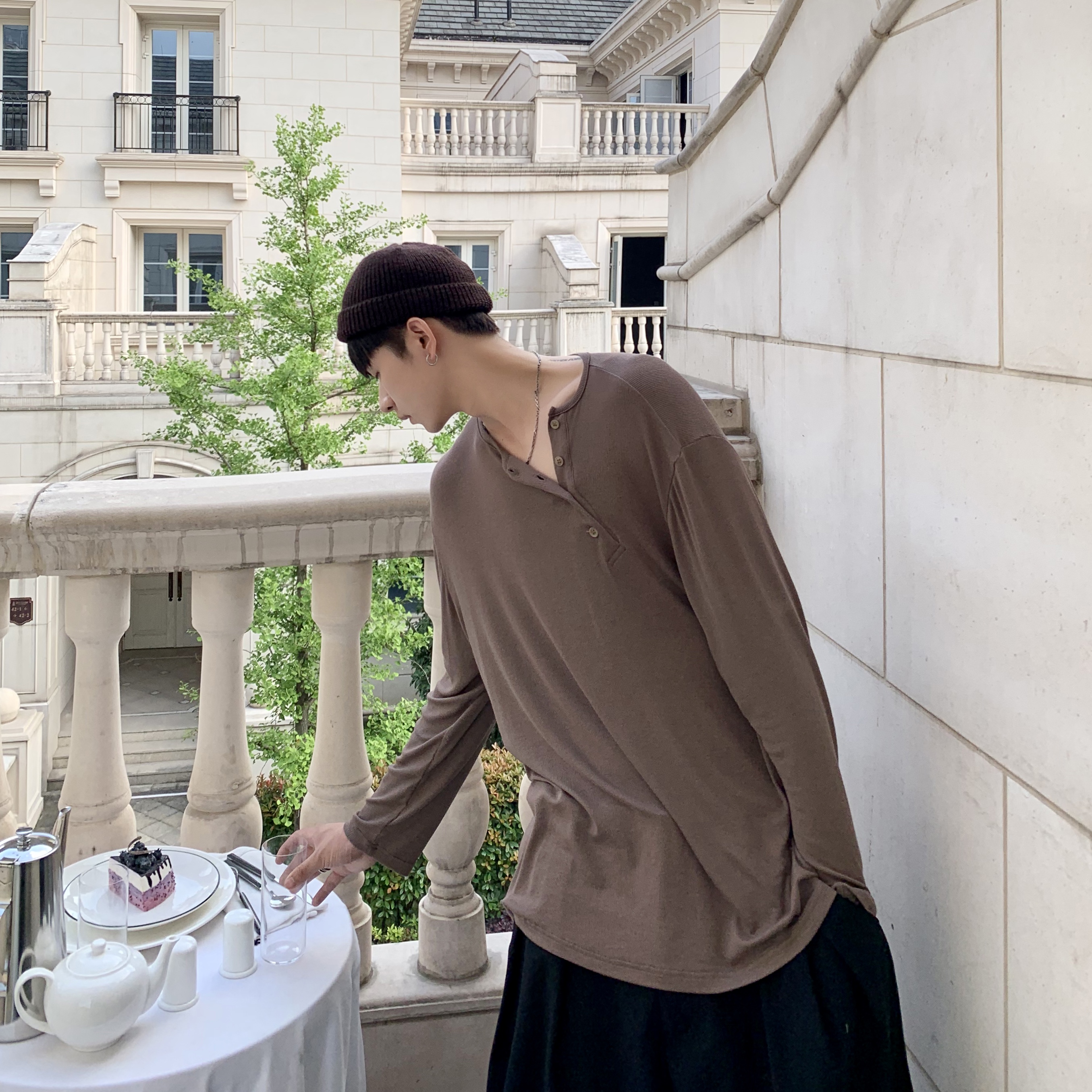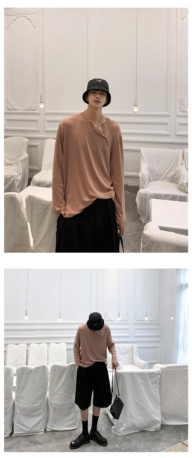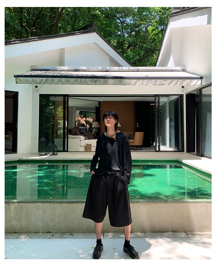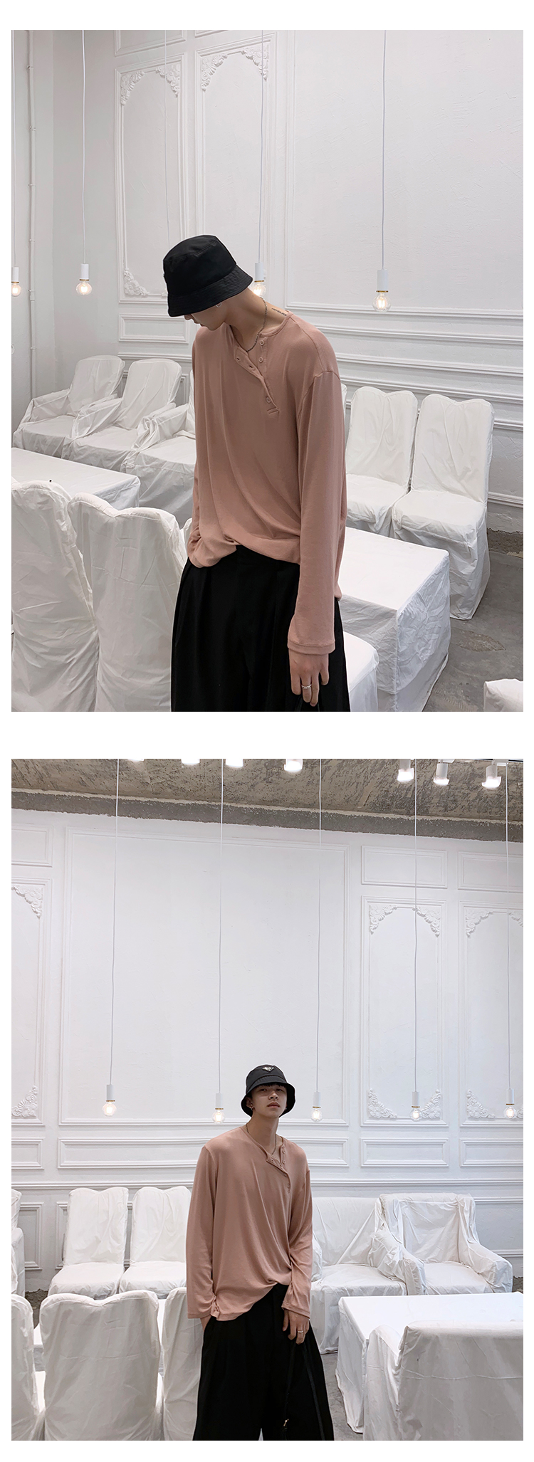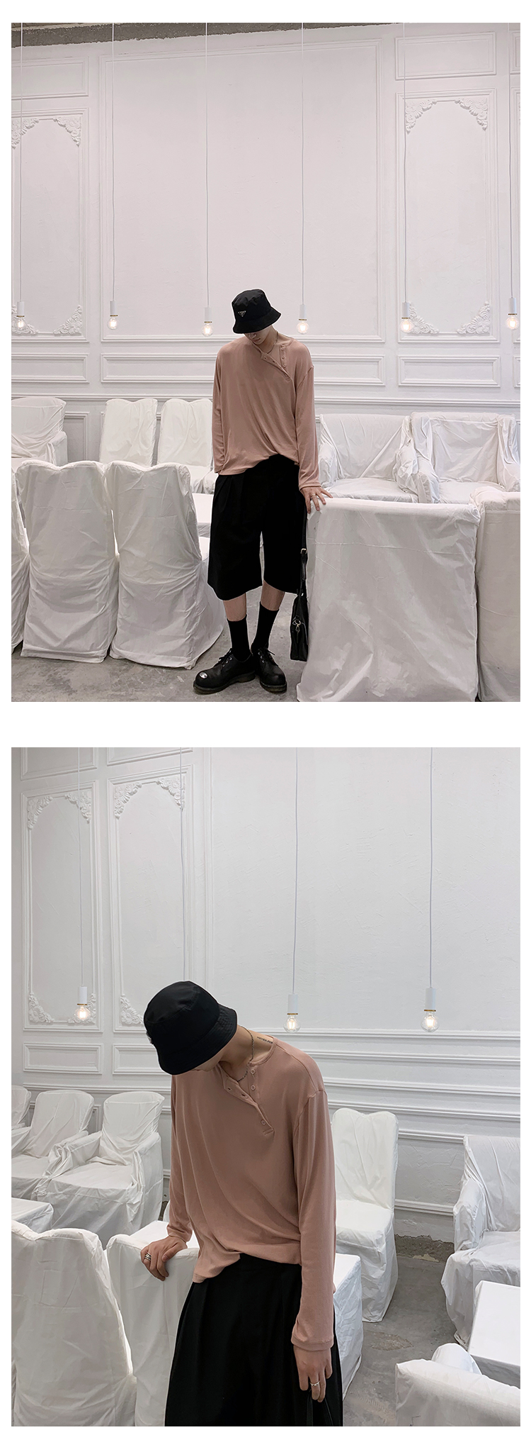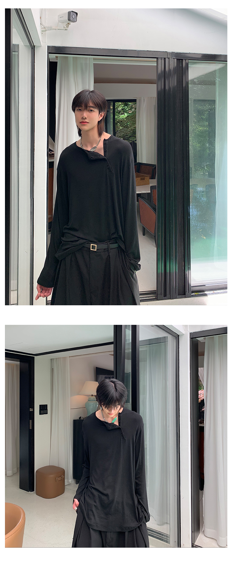 ESC MAN STUDIO/自制oversize寬鬆套頭長袖T恤衫斜開領滿滿高級感
