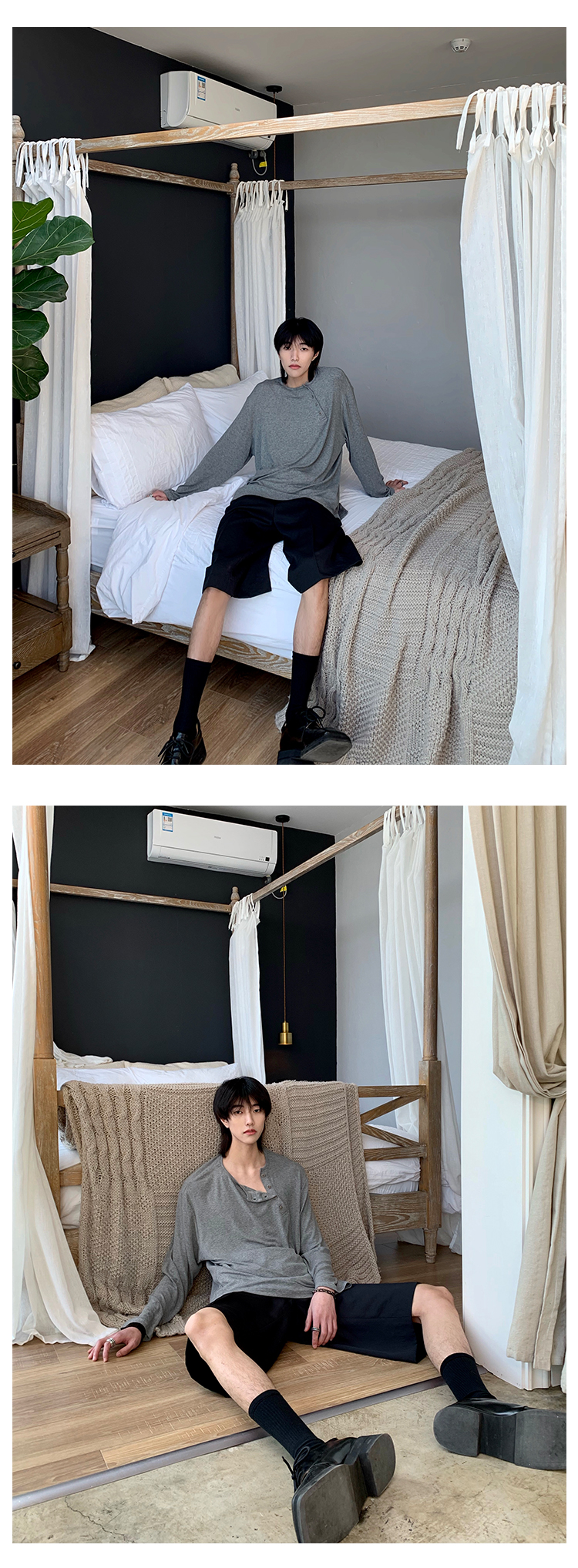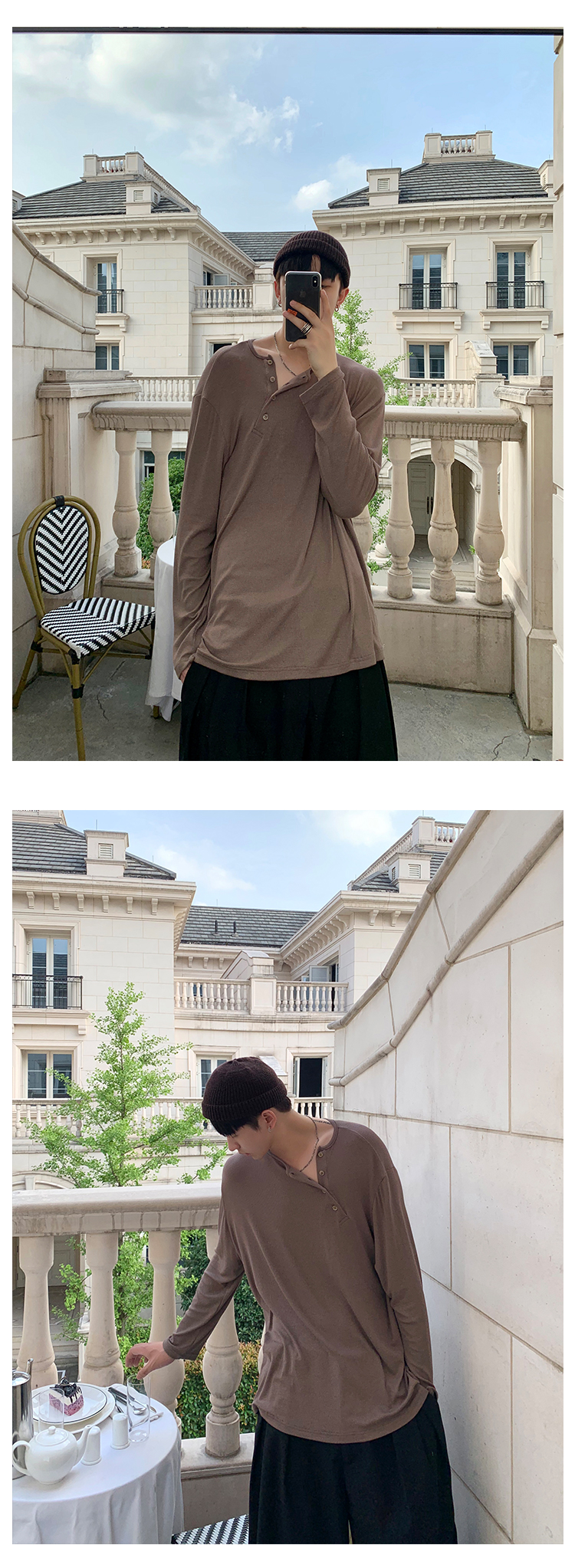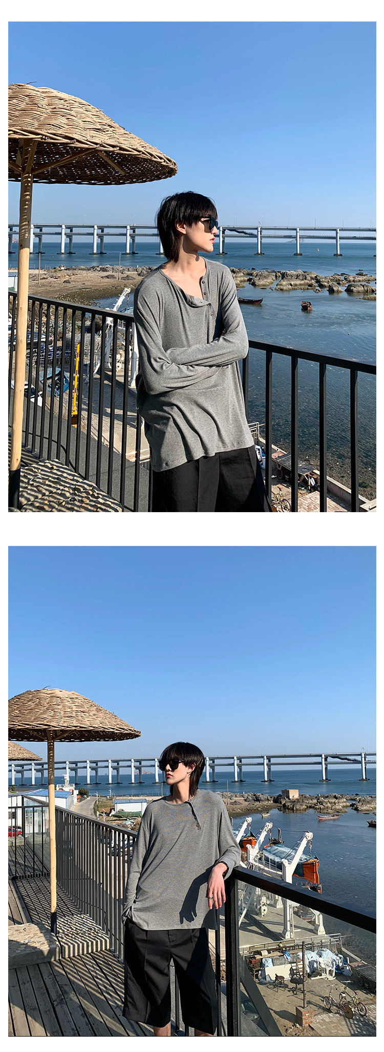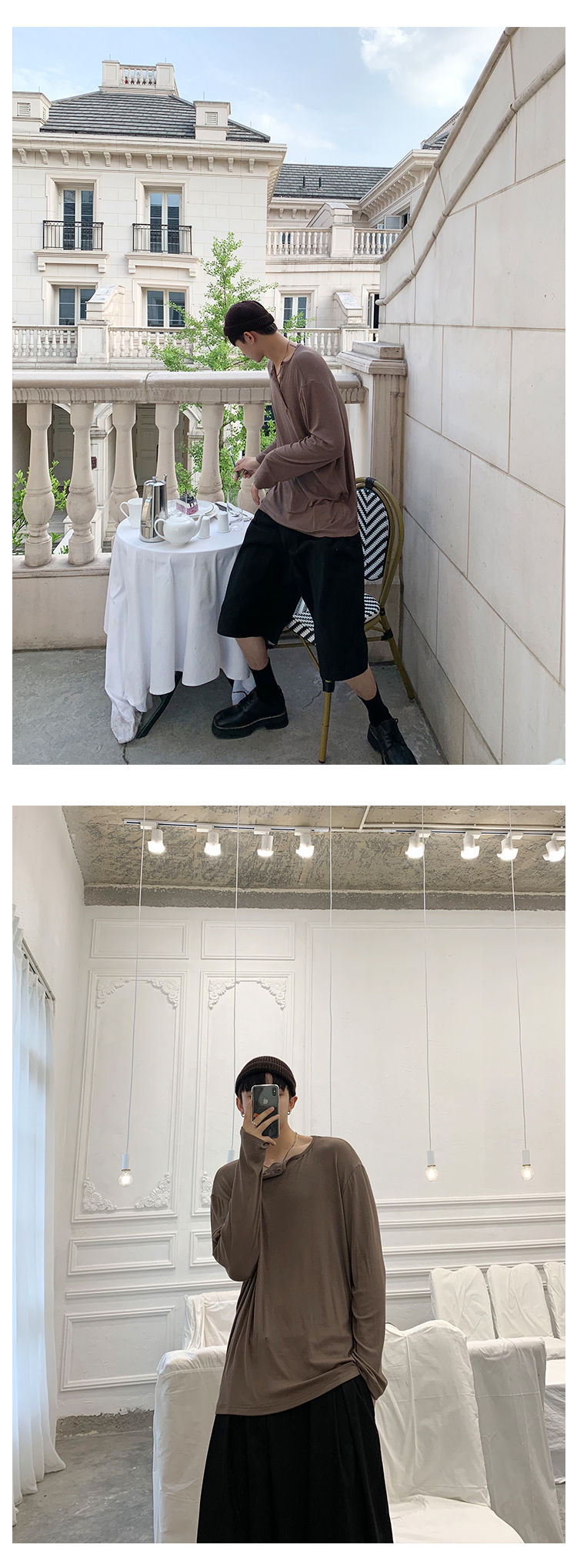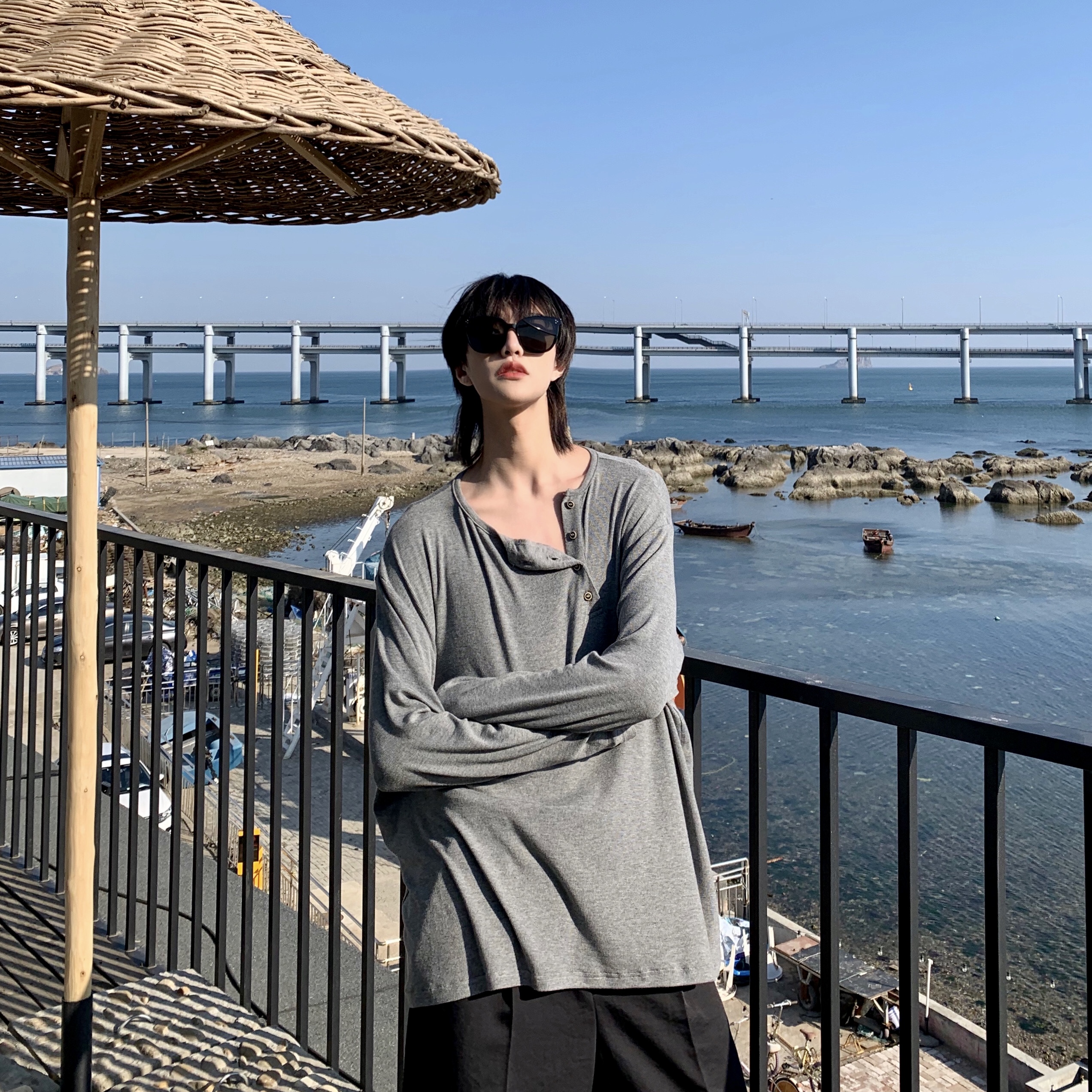 ESC MAN STUDIO/自制oversize寬鬆套頭長袖T恤衫斜開領滿滿高級感