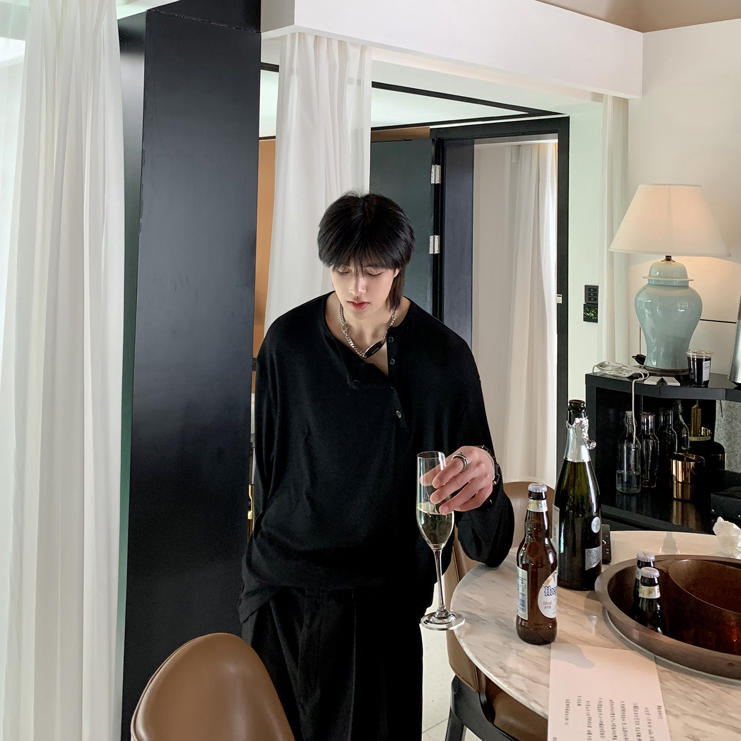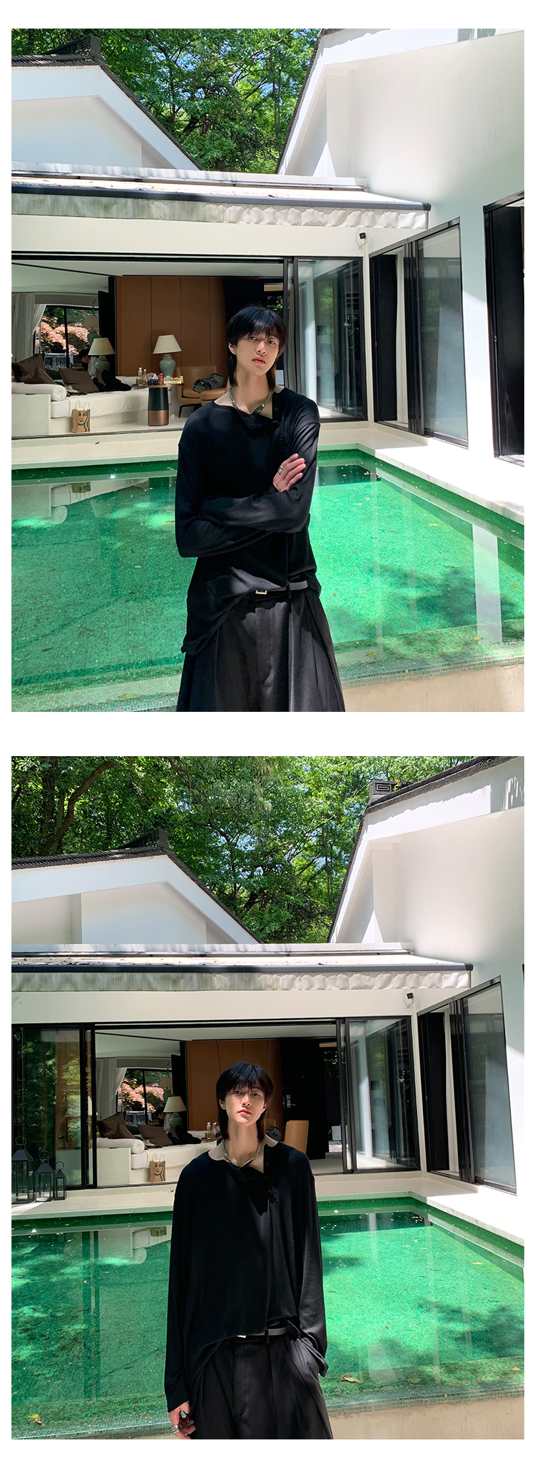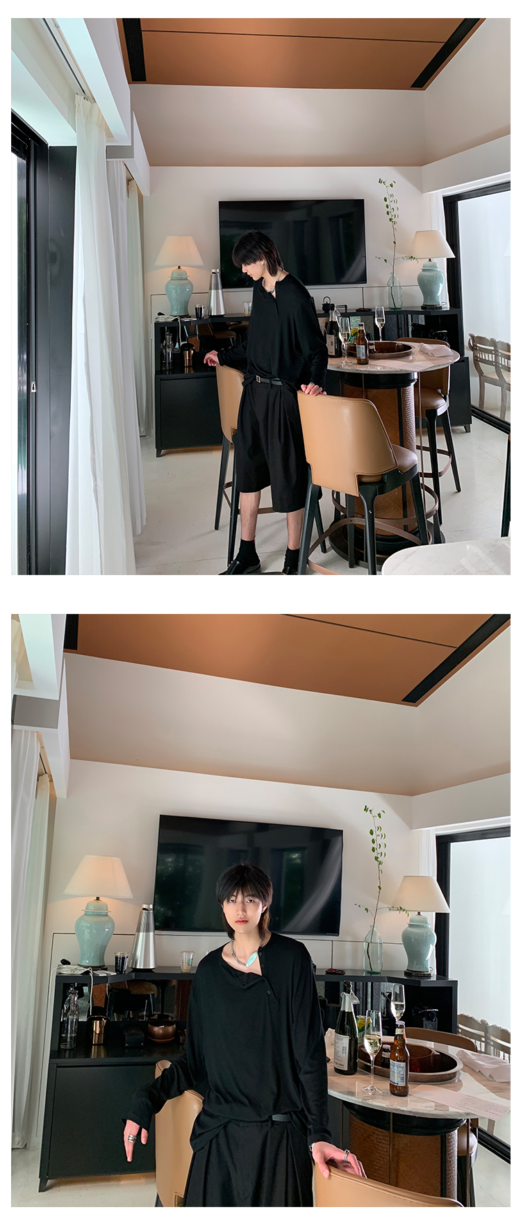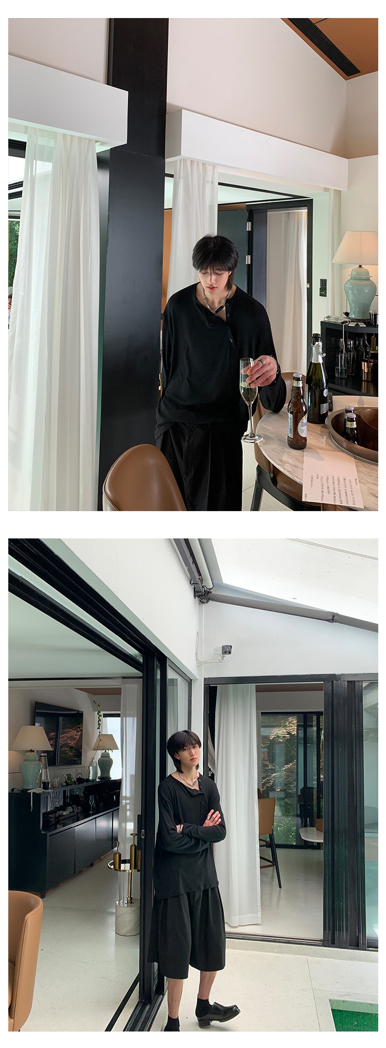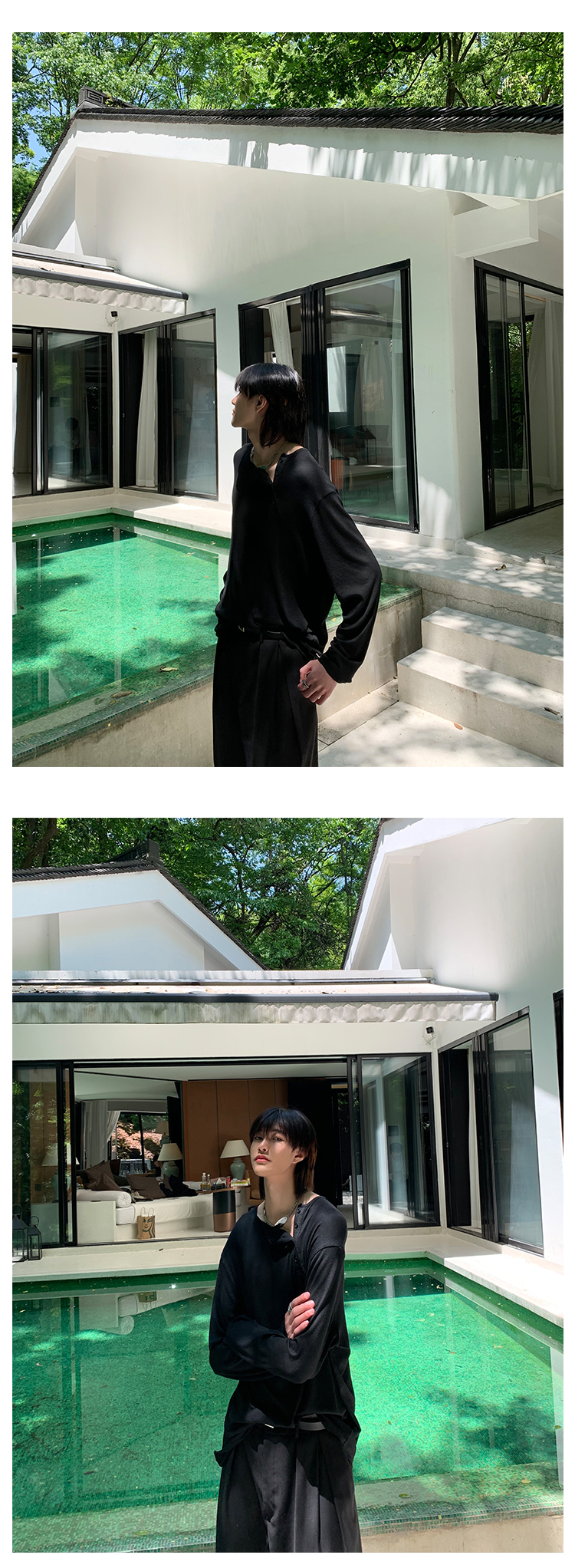 ESC MAN STUDIO/自制oversize寬鬆套頭長袖T恤衫斜開領滿滿高級感